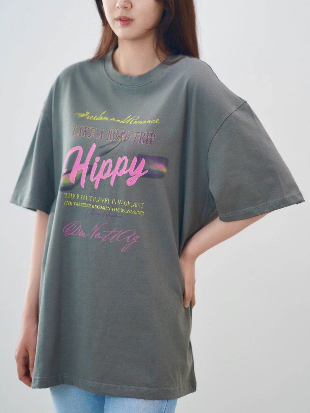 [프리미엄 수입] 빈티지 히피 레터링 티셔츠