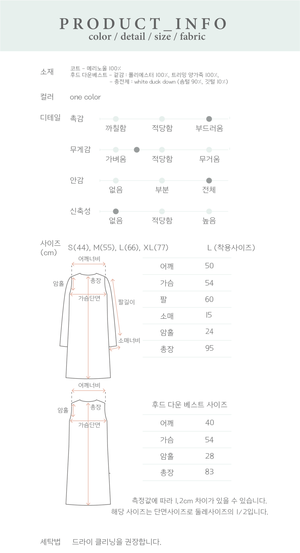 167cm 57kg 전형적 66사이즈 / 착용사이즈 L