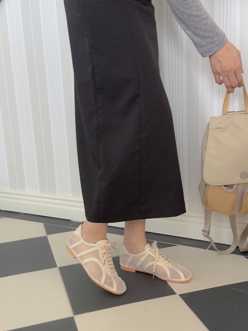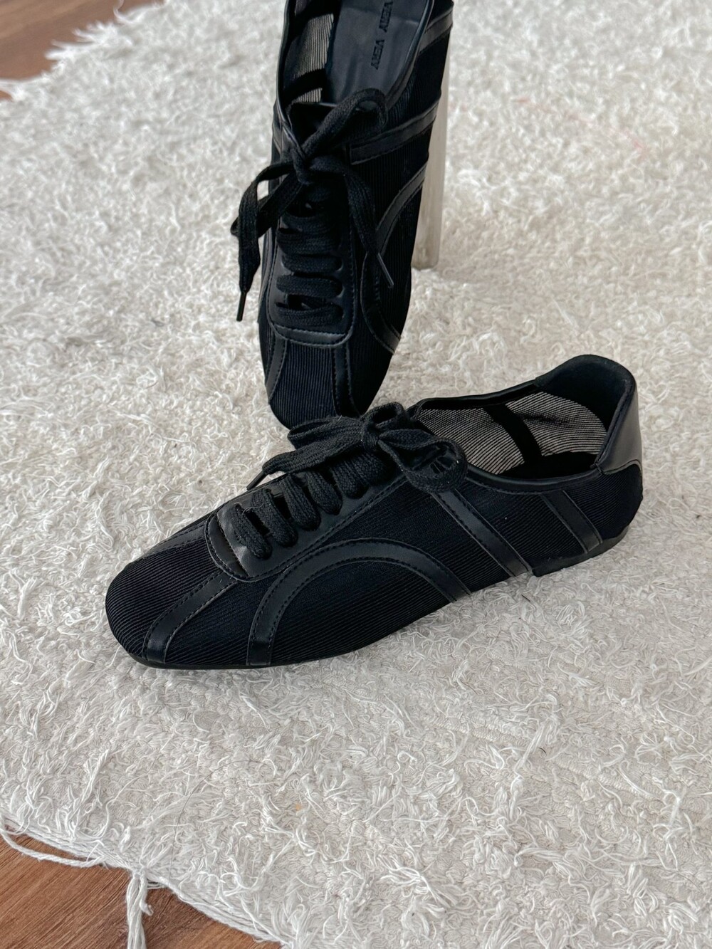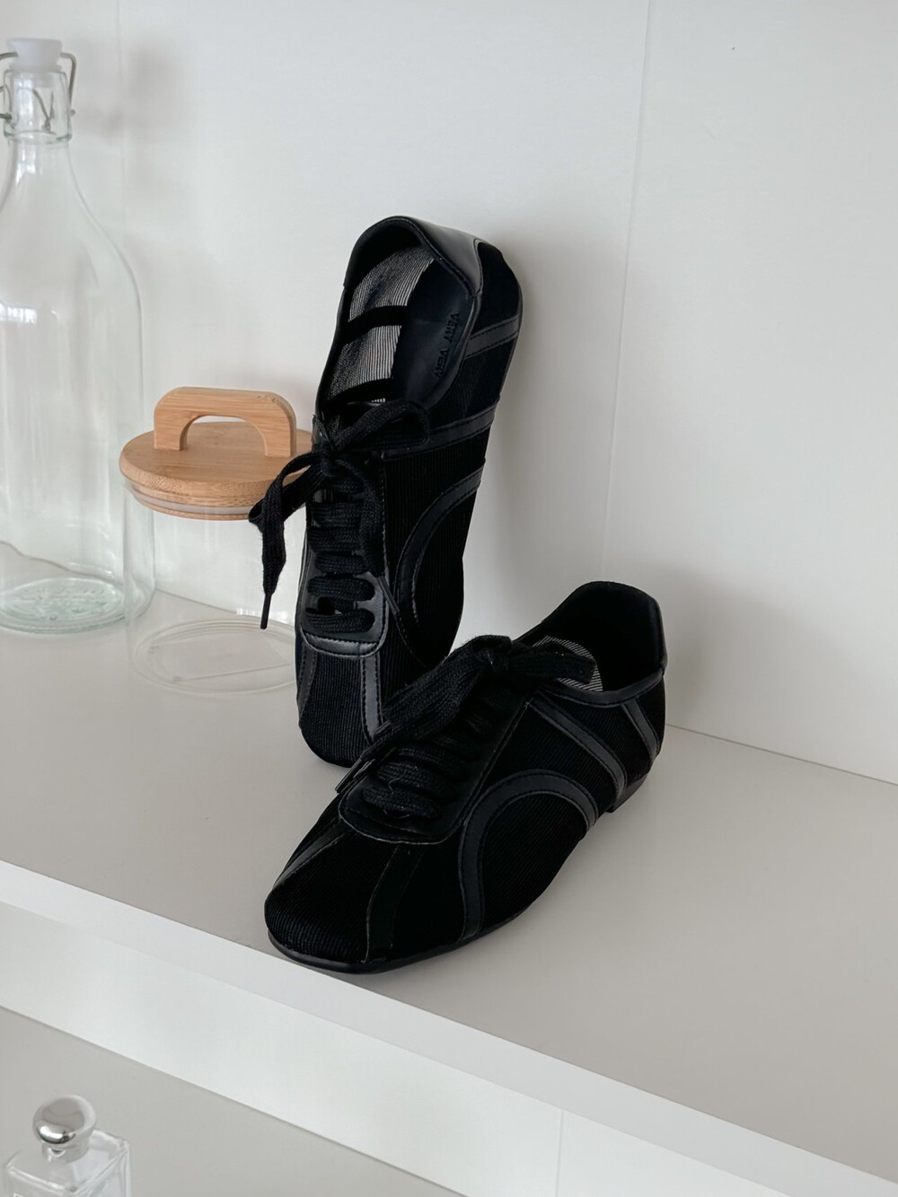 메시 소재와 가죽 라인의 디테일로