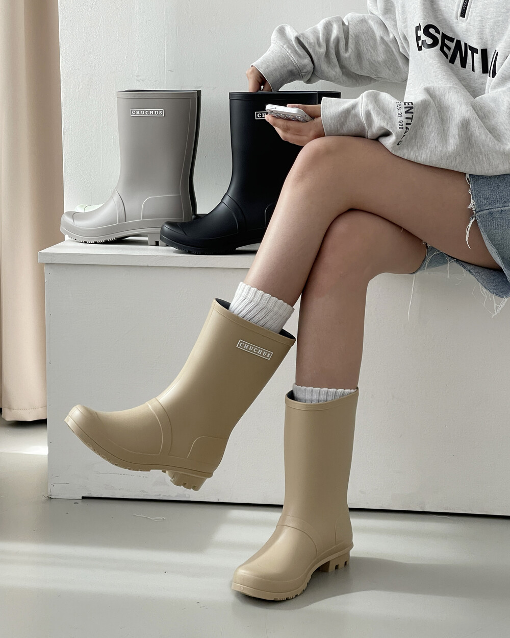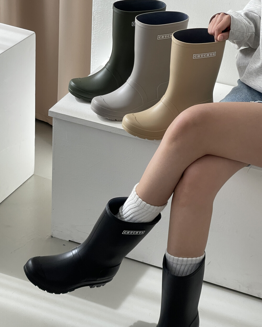 함께할 미디길이의 레인부츠!