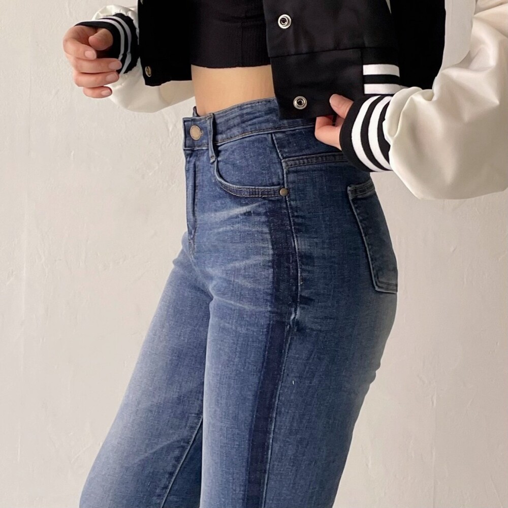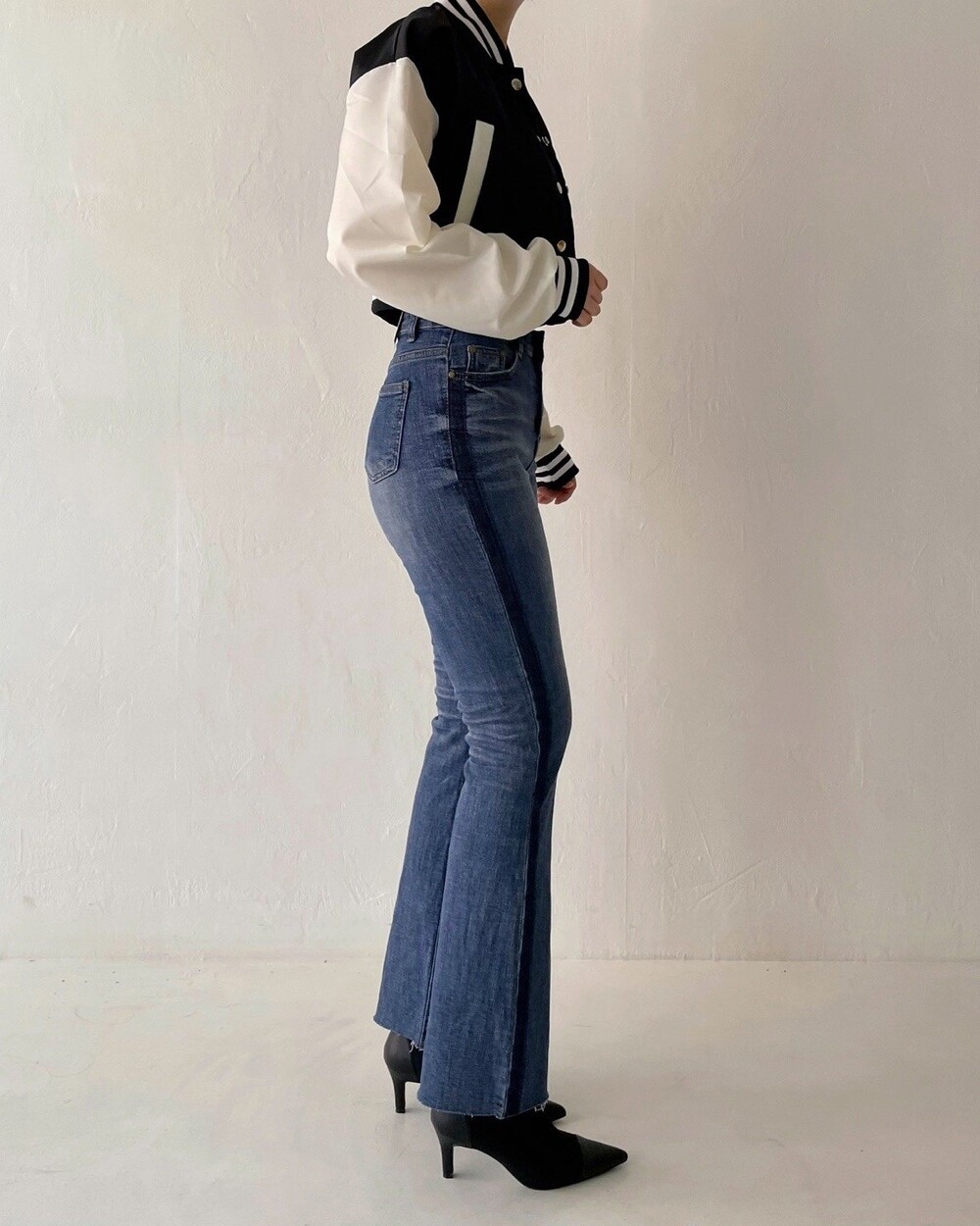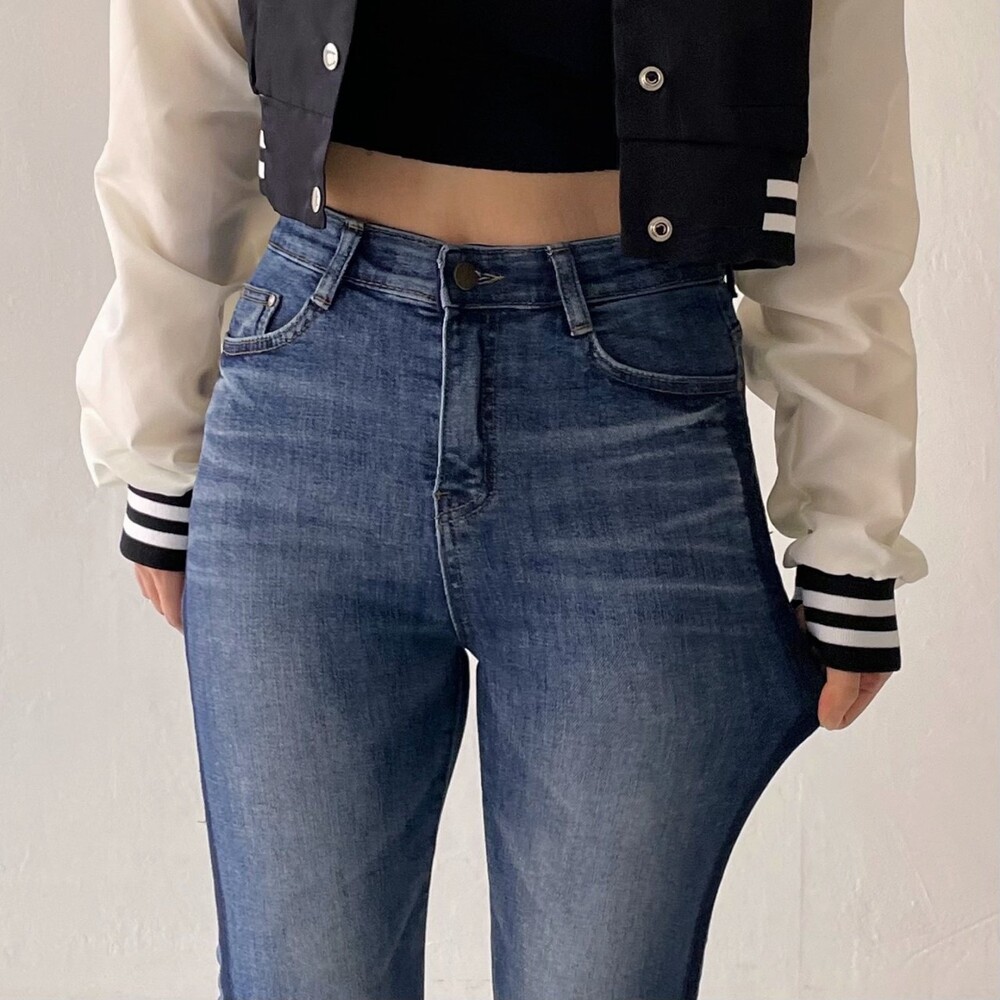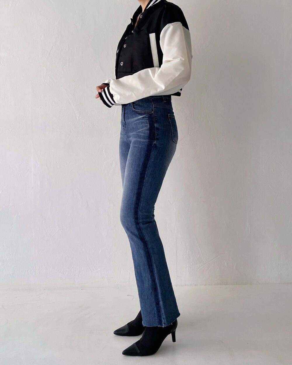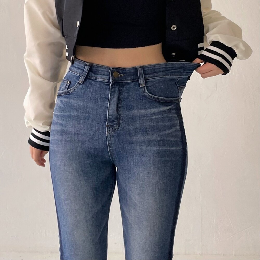 옆라인에 사이드 워싱이 포인트로 들어가있어 더욱 더 슬림해 보이는 효과