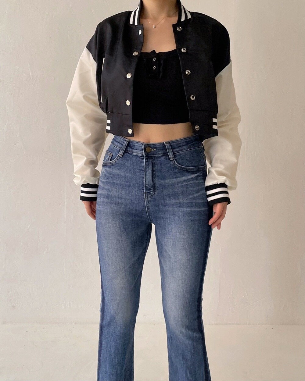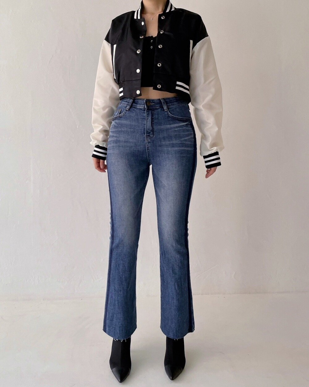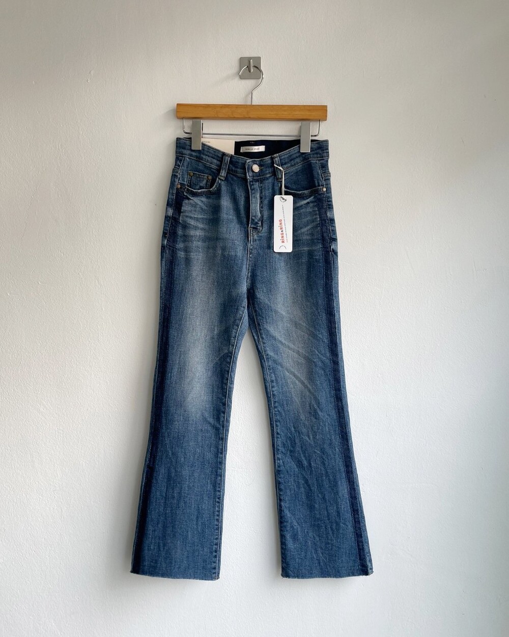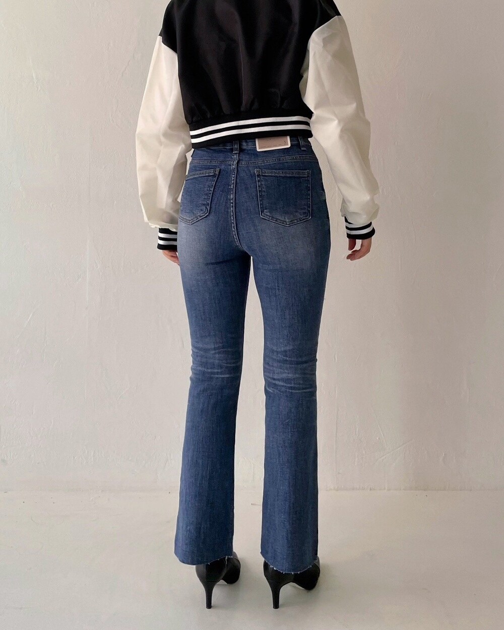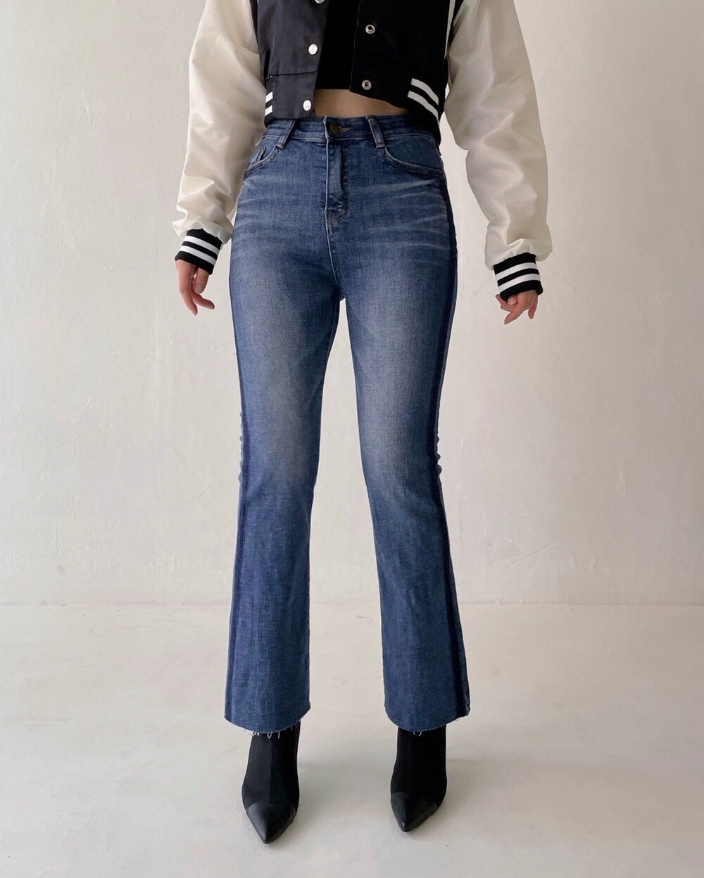 옆라인에 사이드 워싱이 포인트로 들어가있어 더욱 더 슬림해 보이는 효과