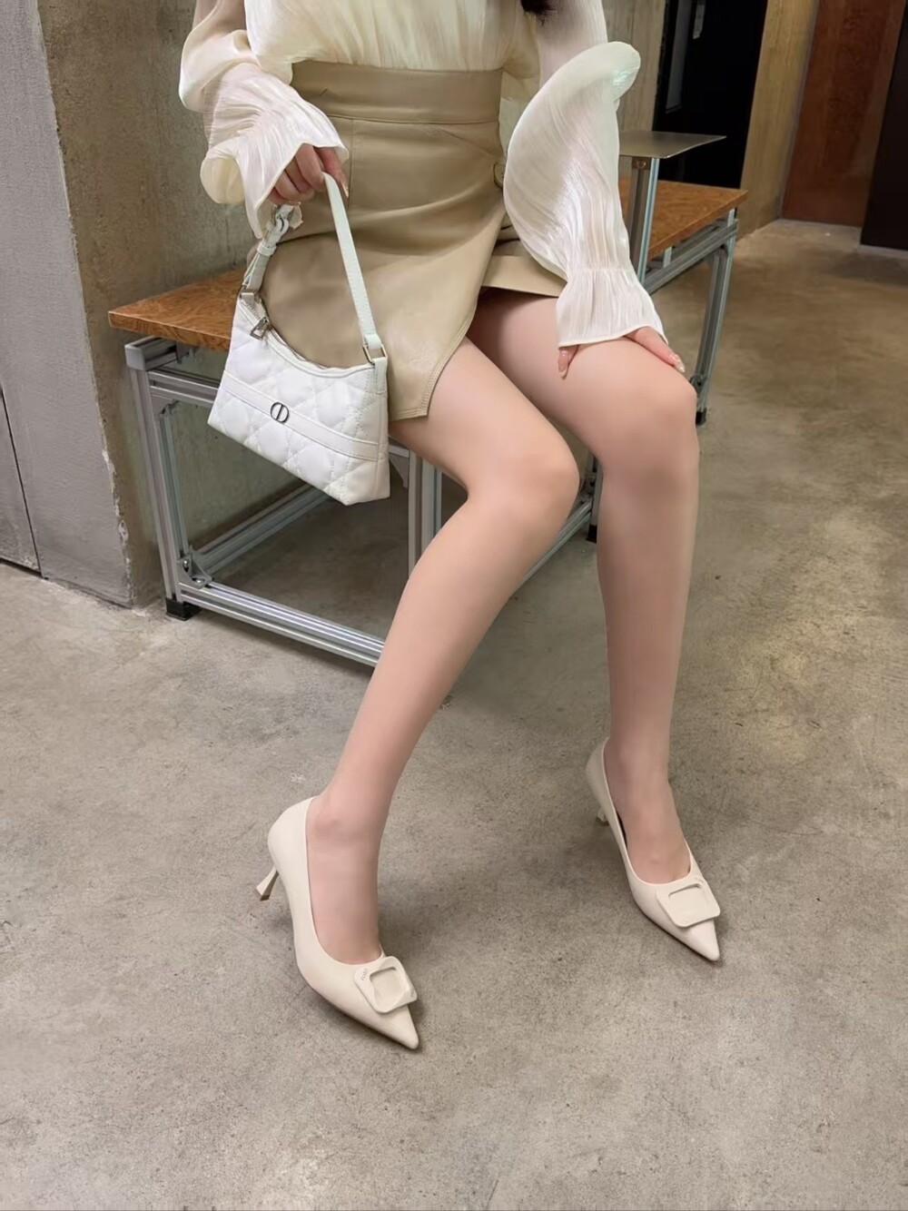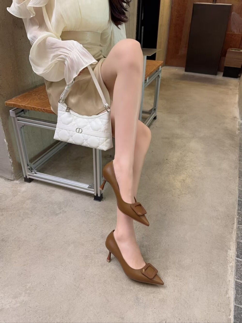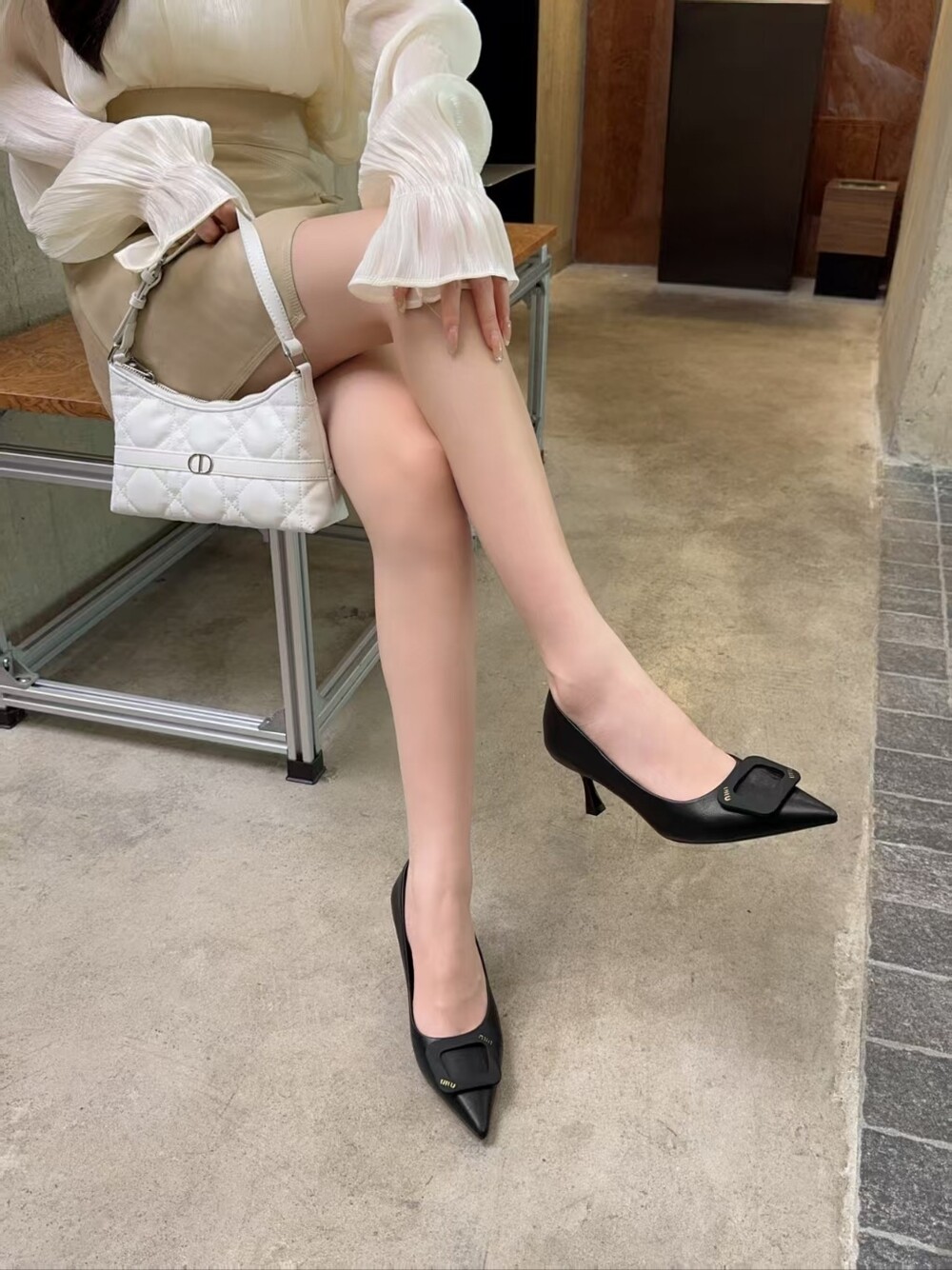 스퀘어 디테일의 펌프스 힐