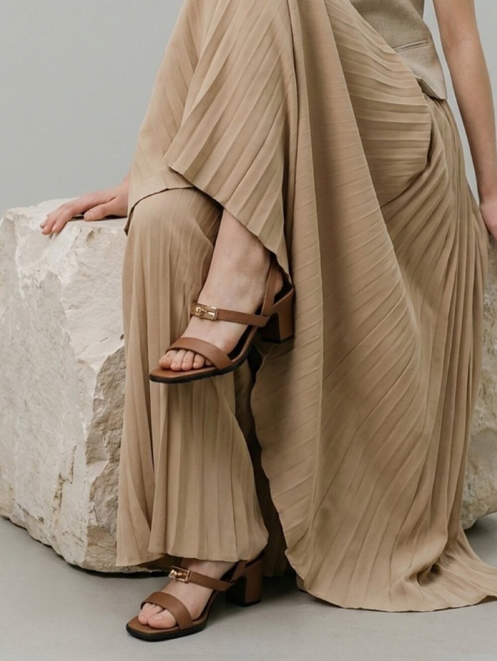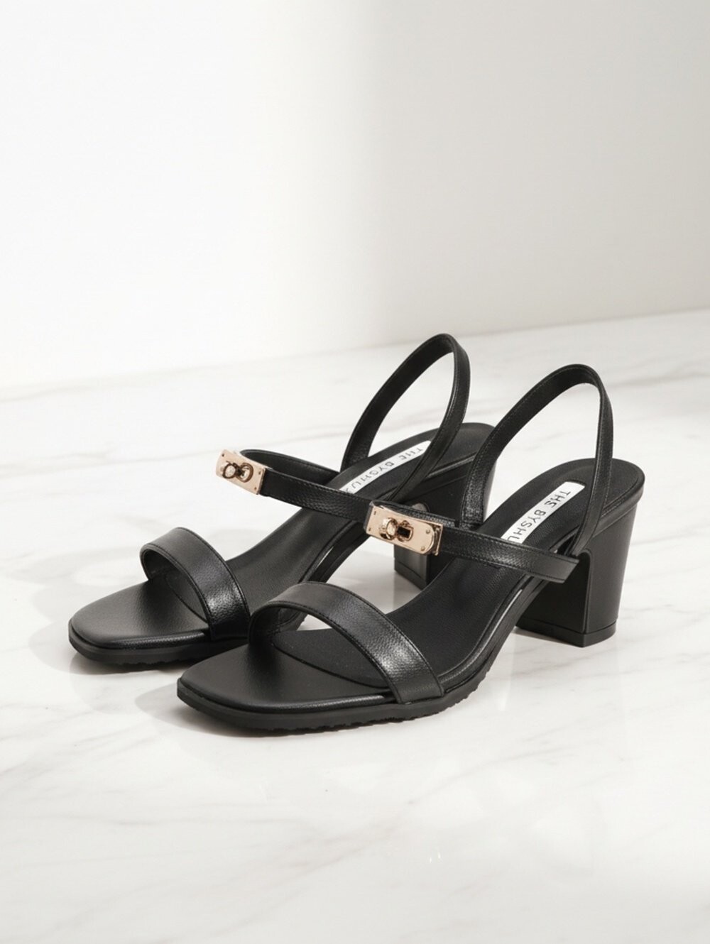 스퀘어 디테일의 샌들 슬링백