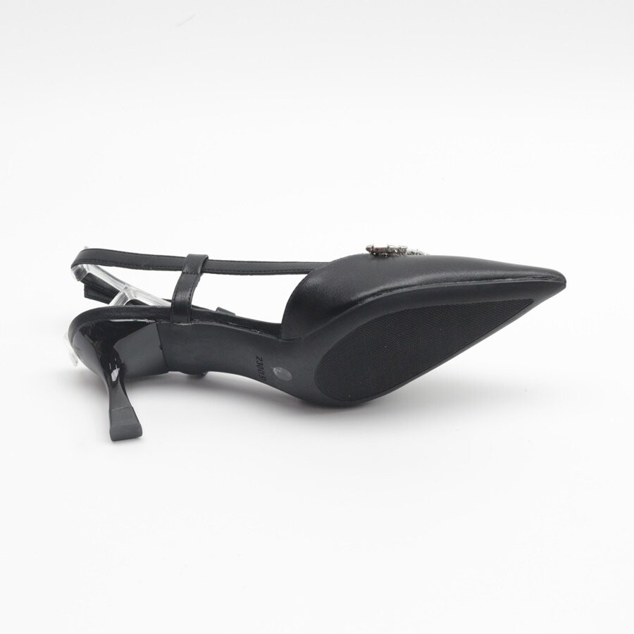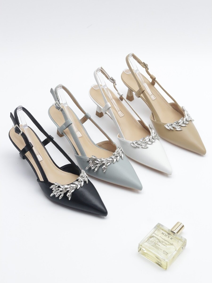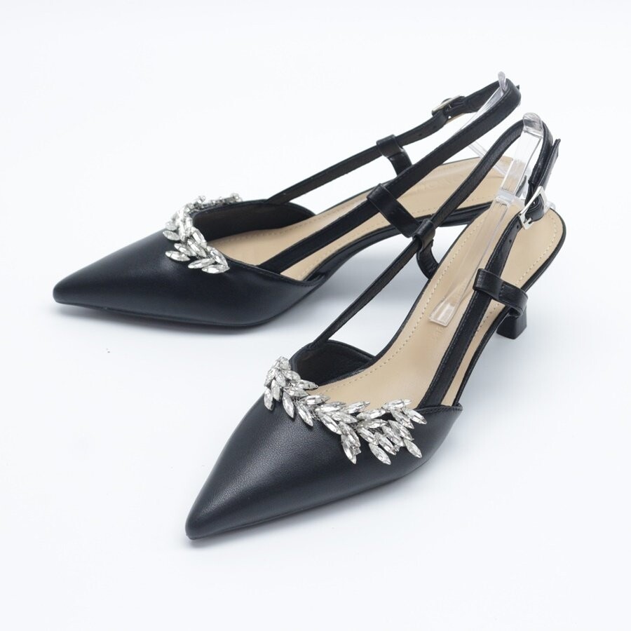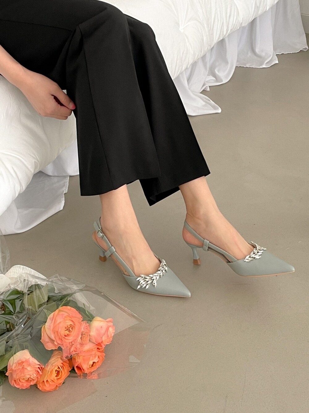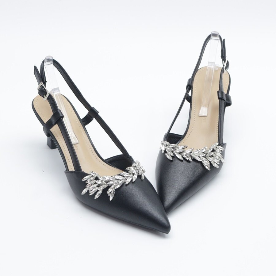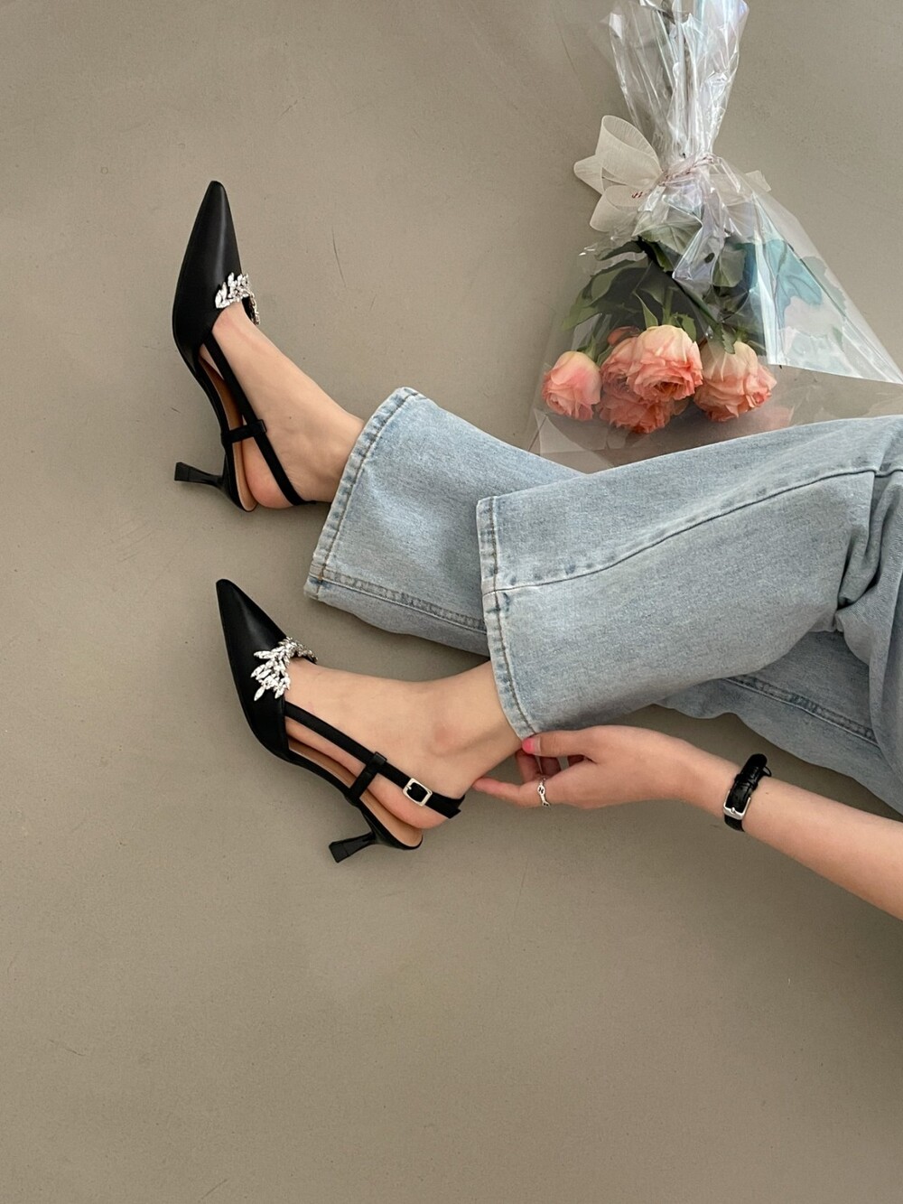 럭셔리 큐빅 가죽 스틸레토 미들 슬링백