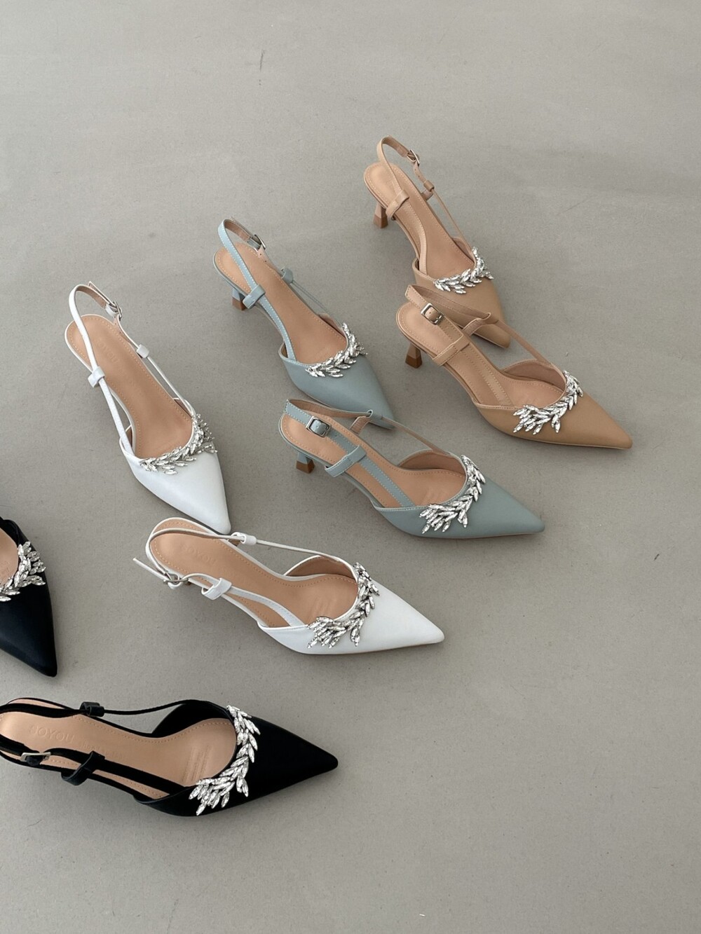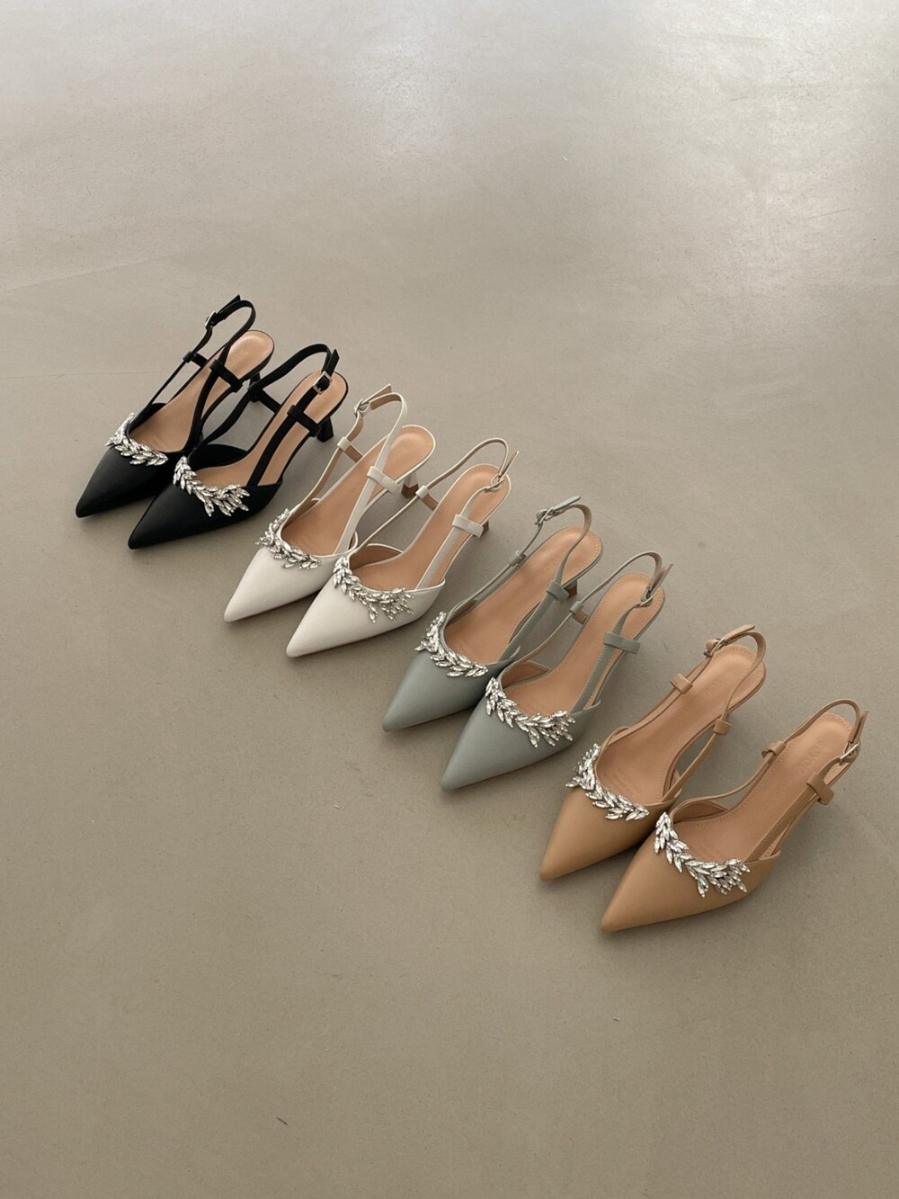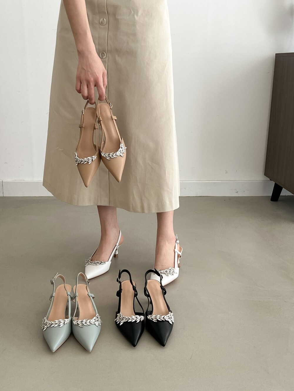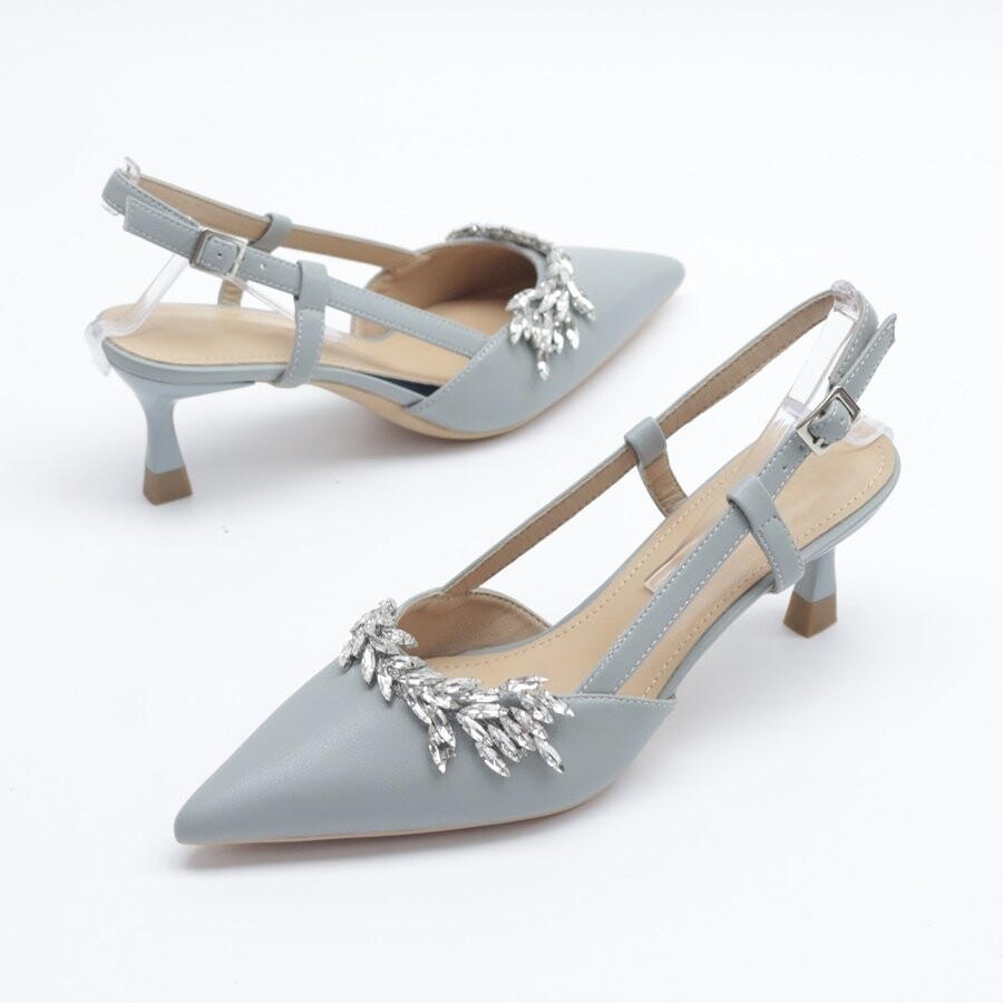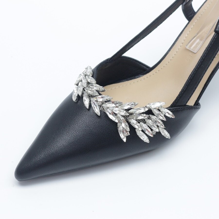 럭셔리 큐빅 가죽 스틸레토 미들 슬링백