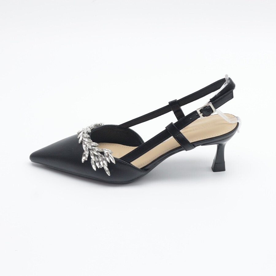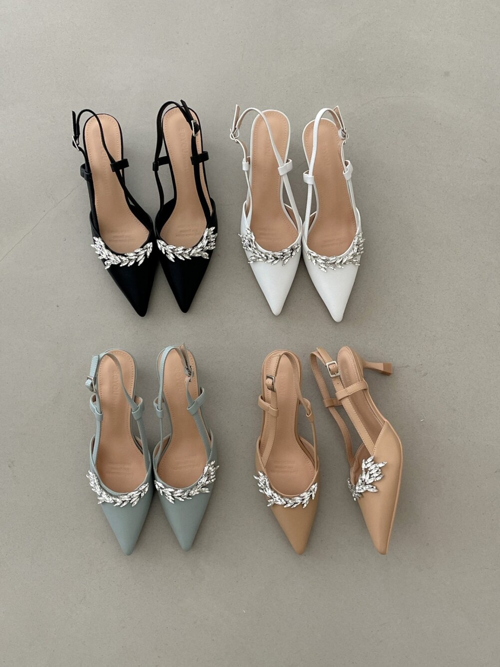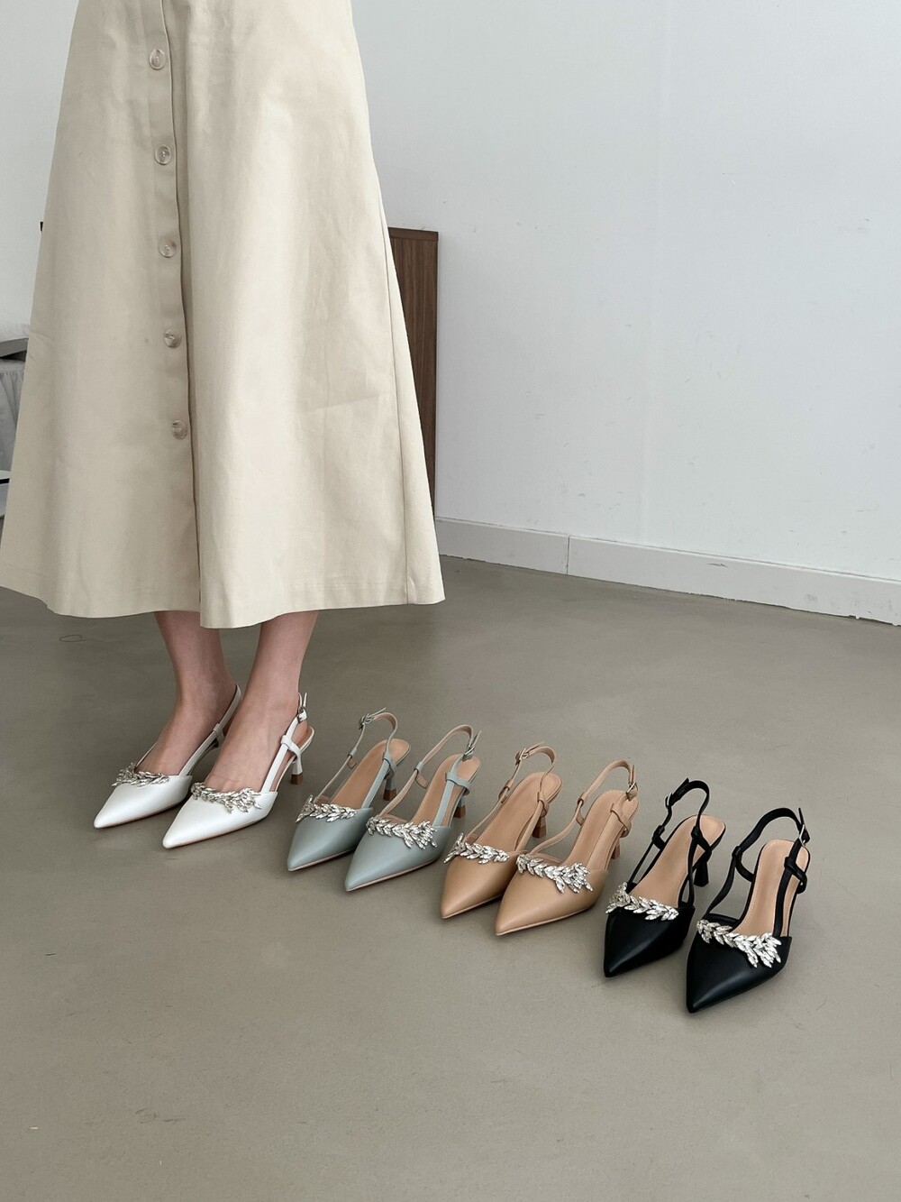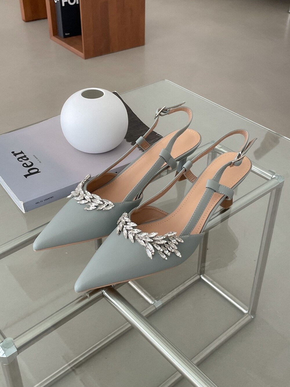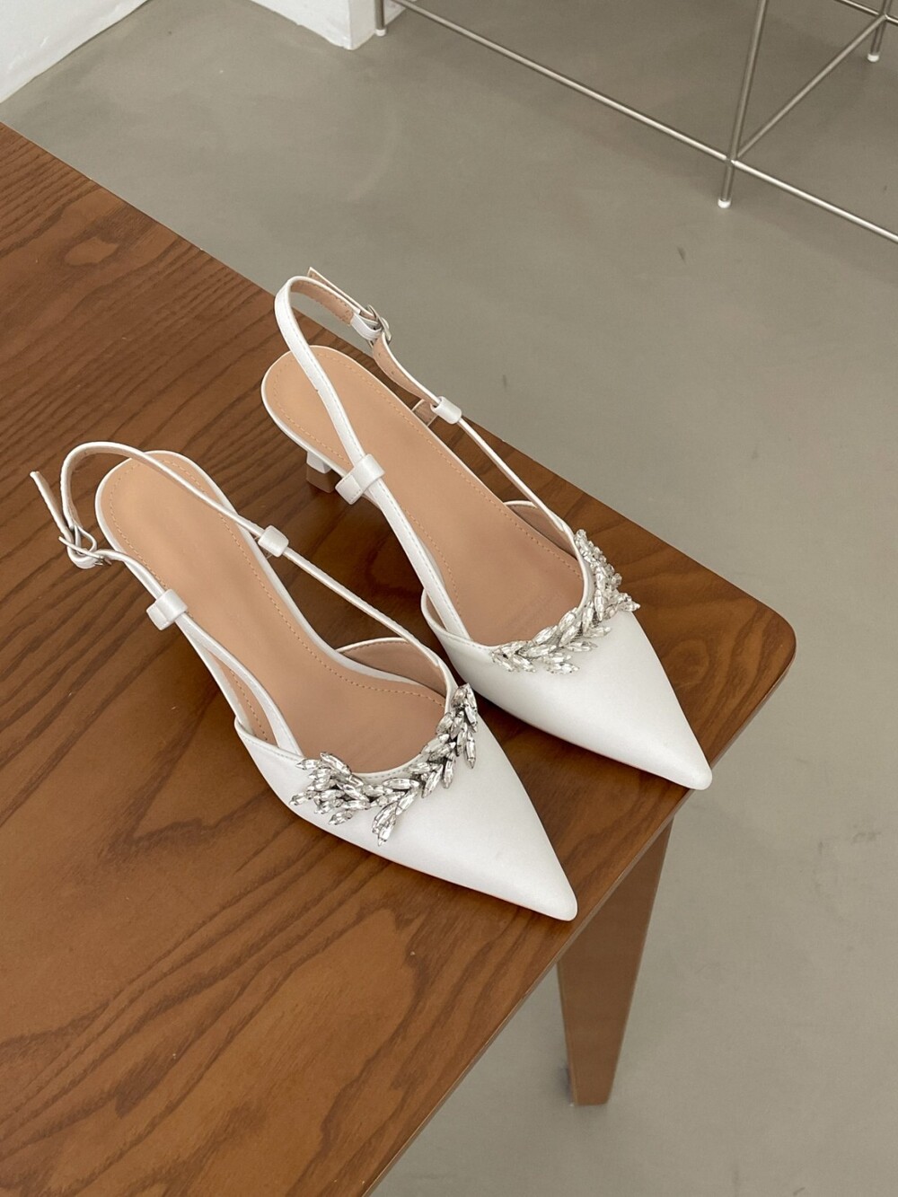 럭셔리 큐빅 가죽 스틸레토 미들 슬링백