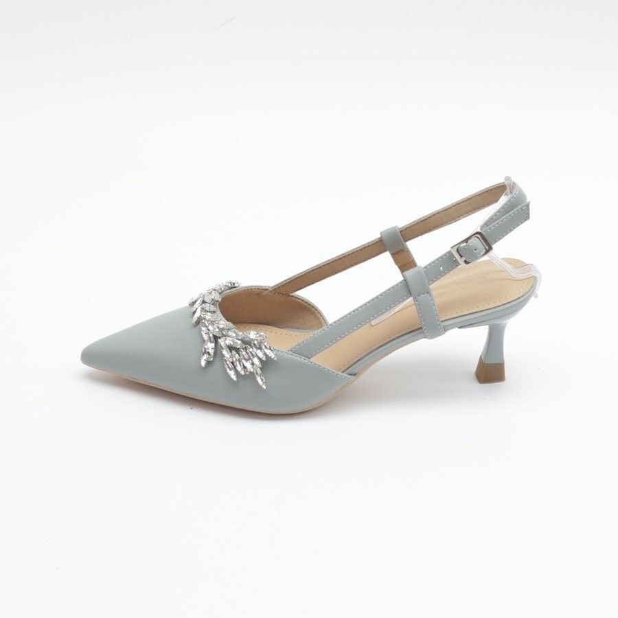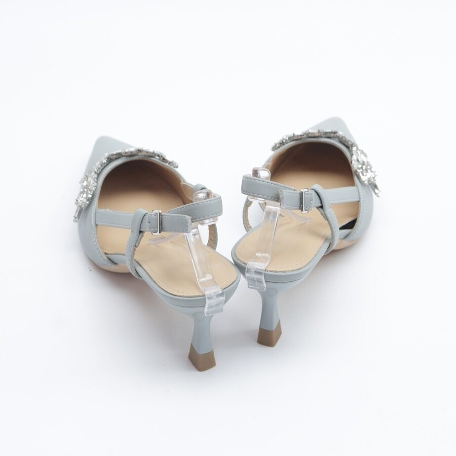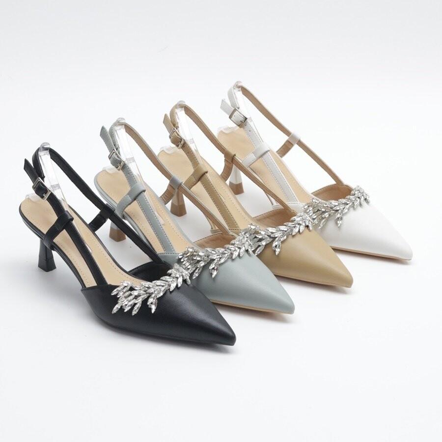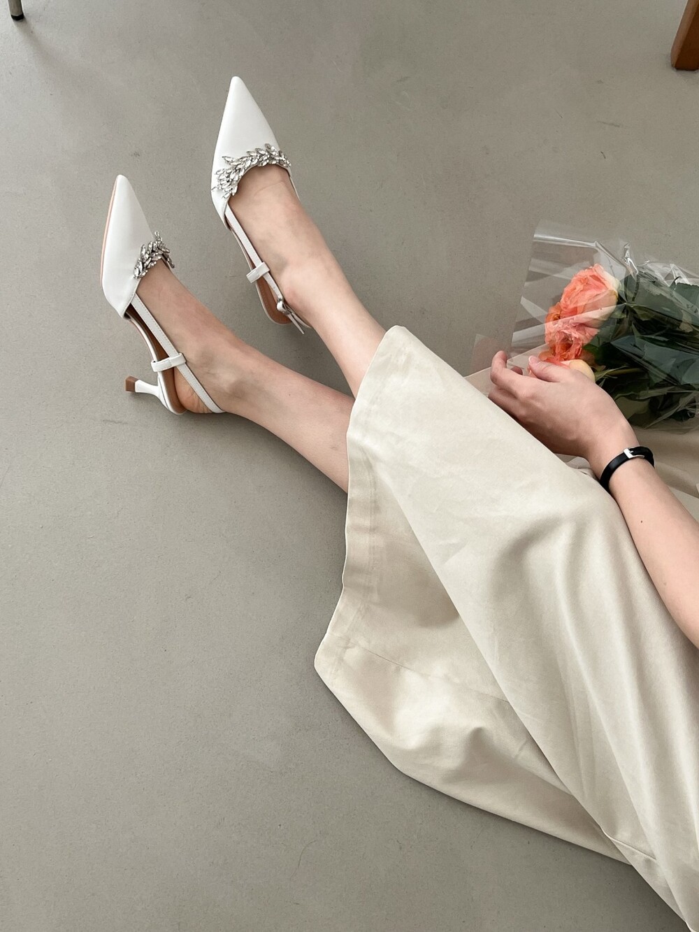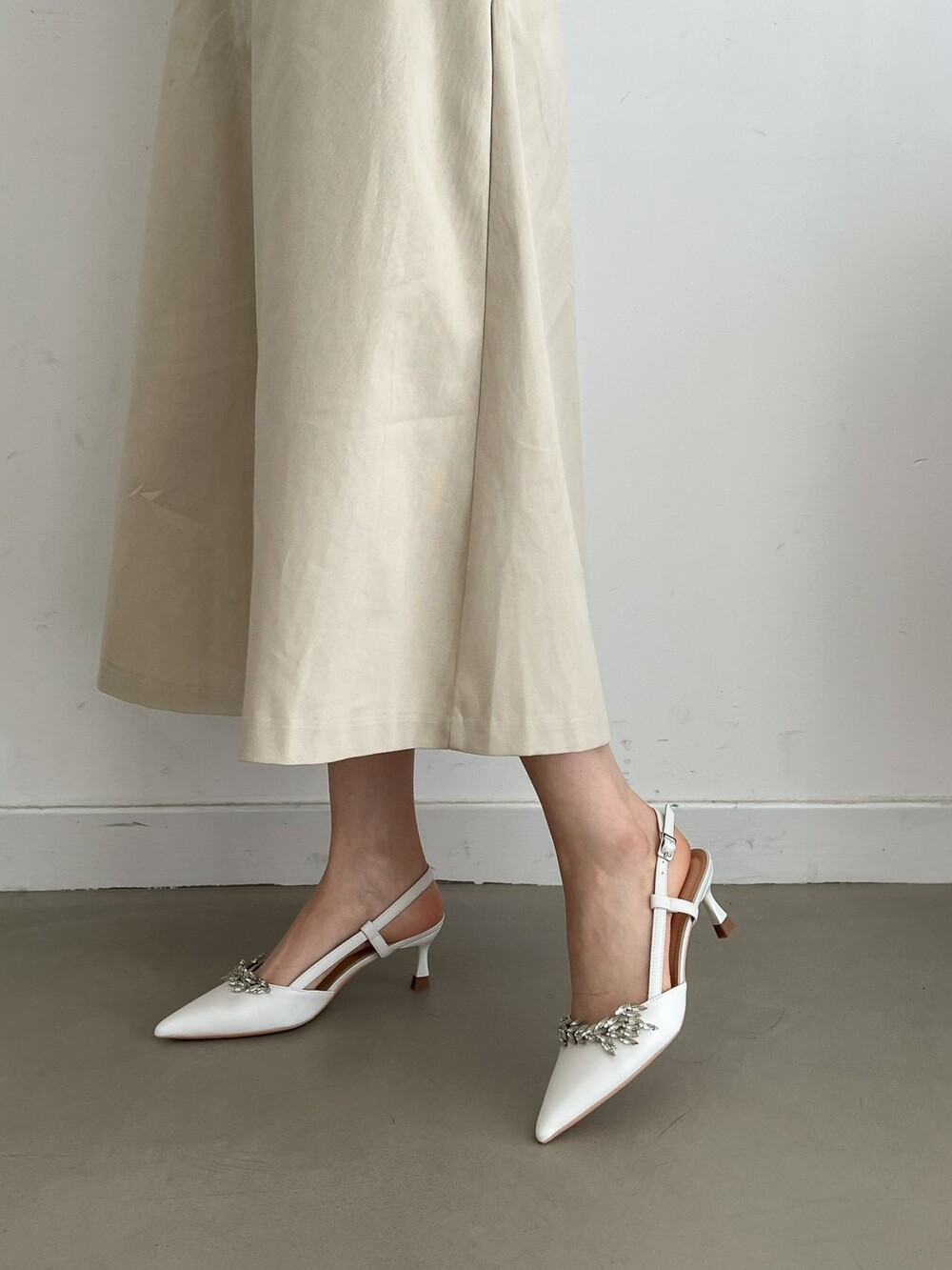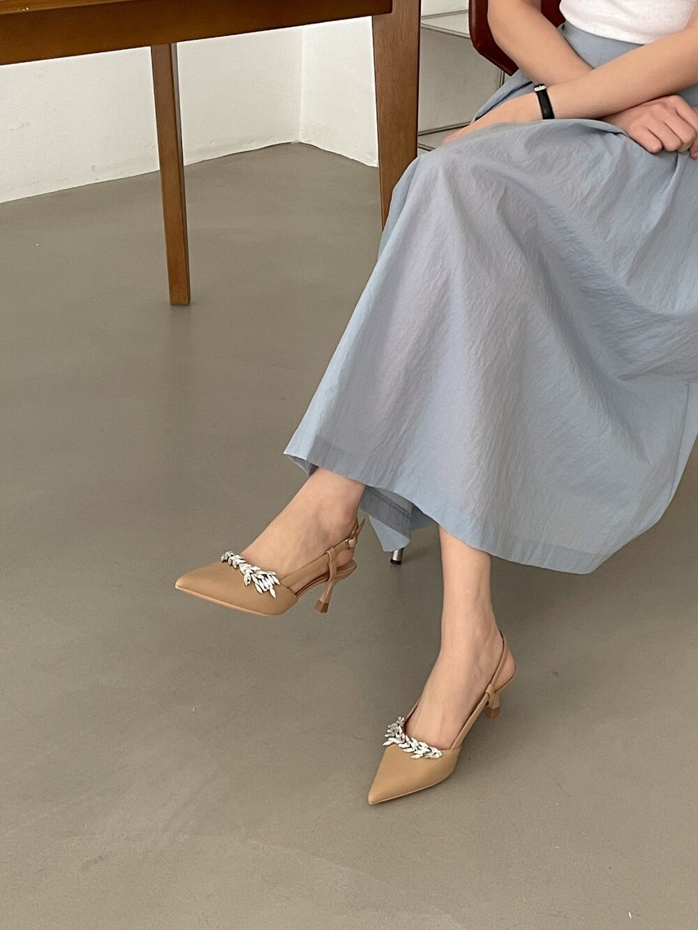 럭셔리 큐빅 가죽 스틸레토 미들 슬링백