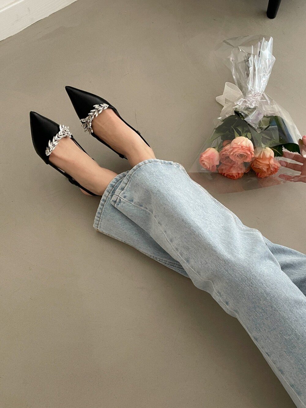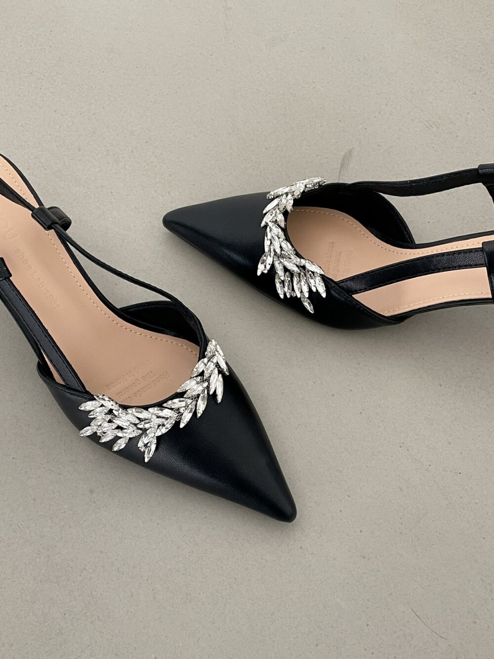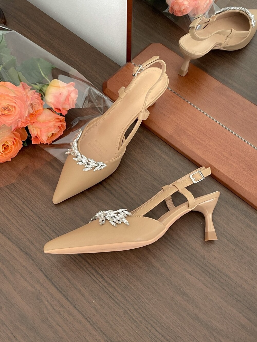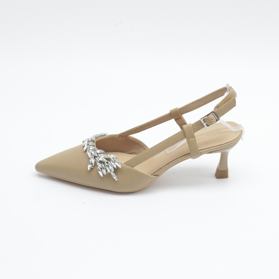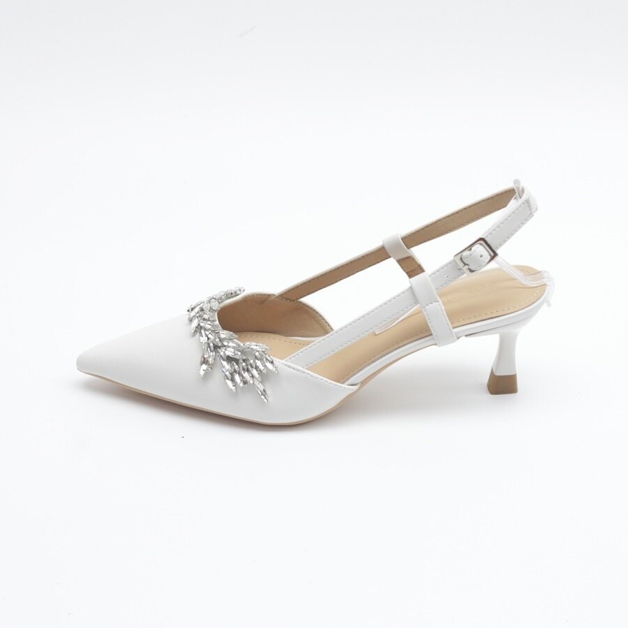 럭셔리 큐빅 가죽 스틸레토 미들 슬링백
