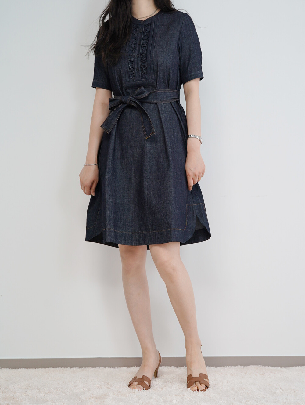 우아하고 시원한 분위기의 A라인 청 원피스 입니다.