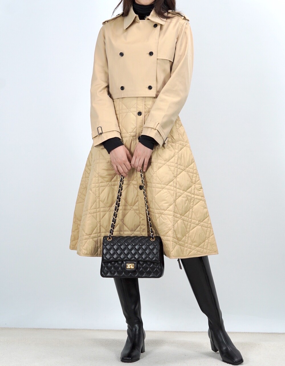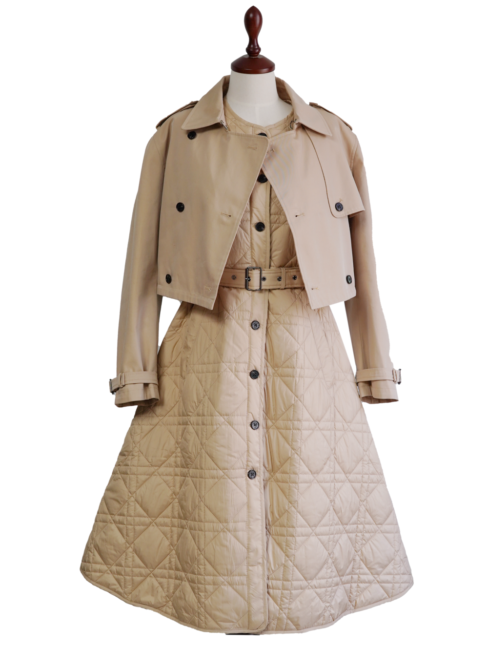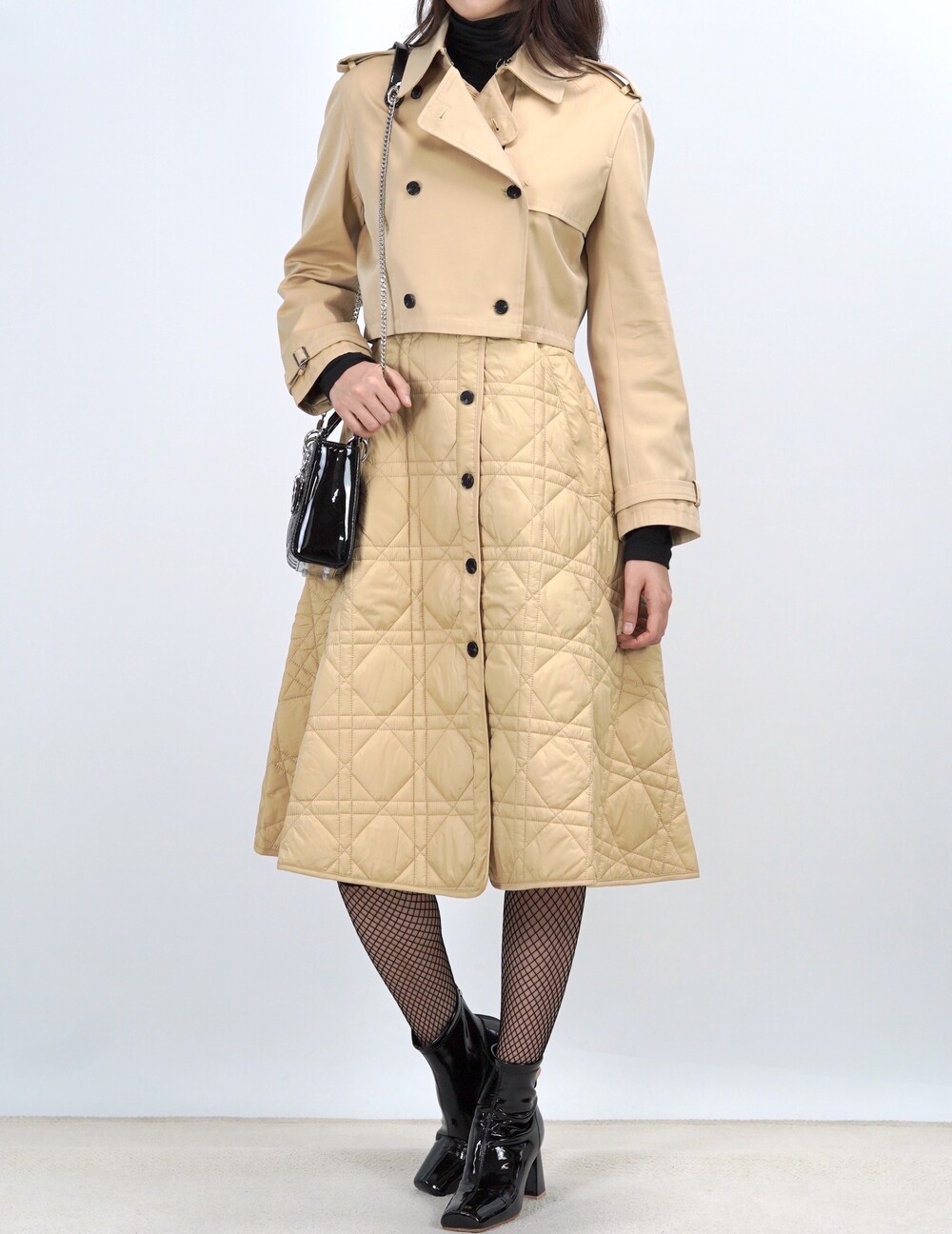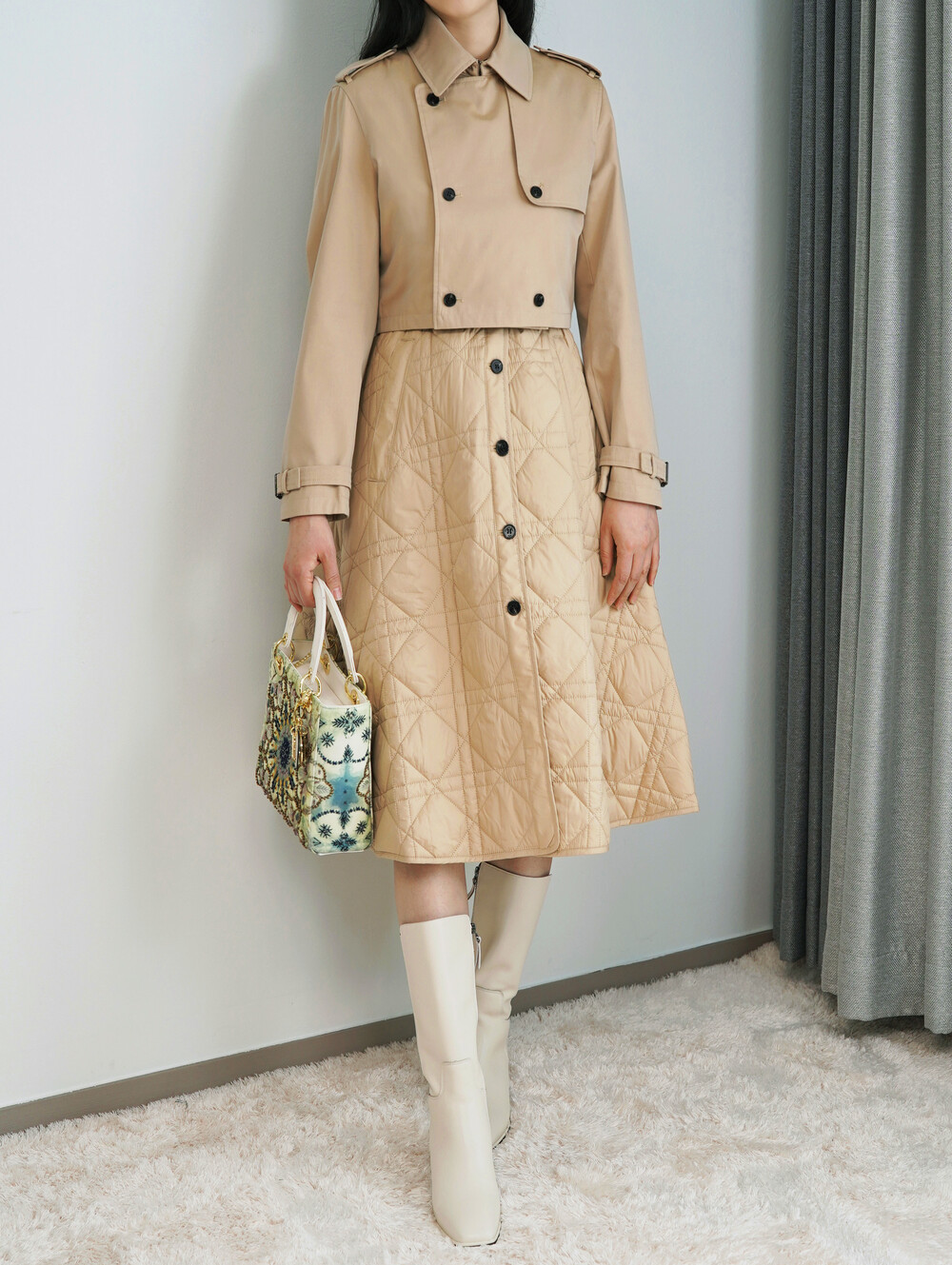 개버딘 크롭 트렌치 코트 + 까나쥬 퀼팅 A 드레스