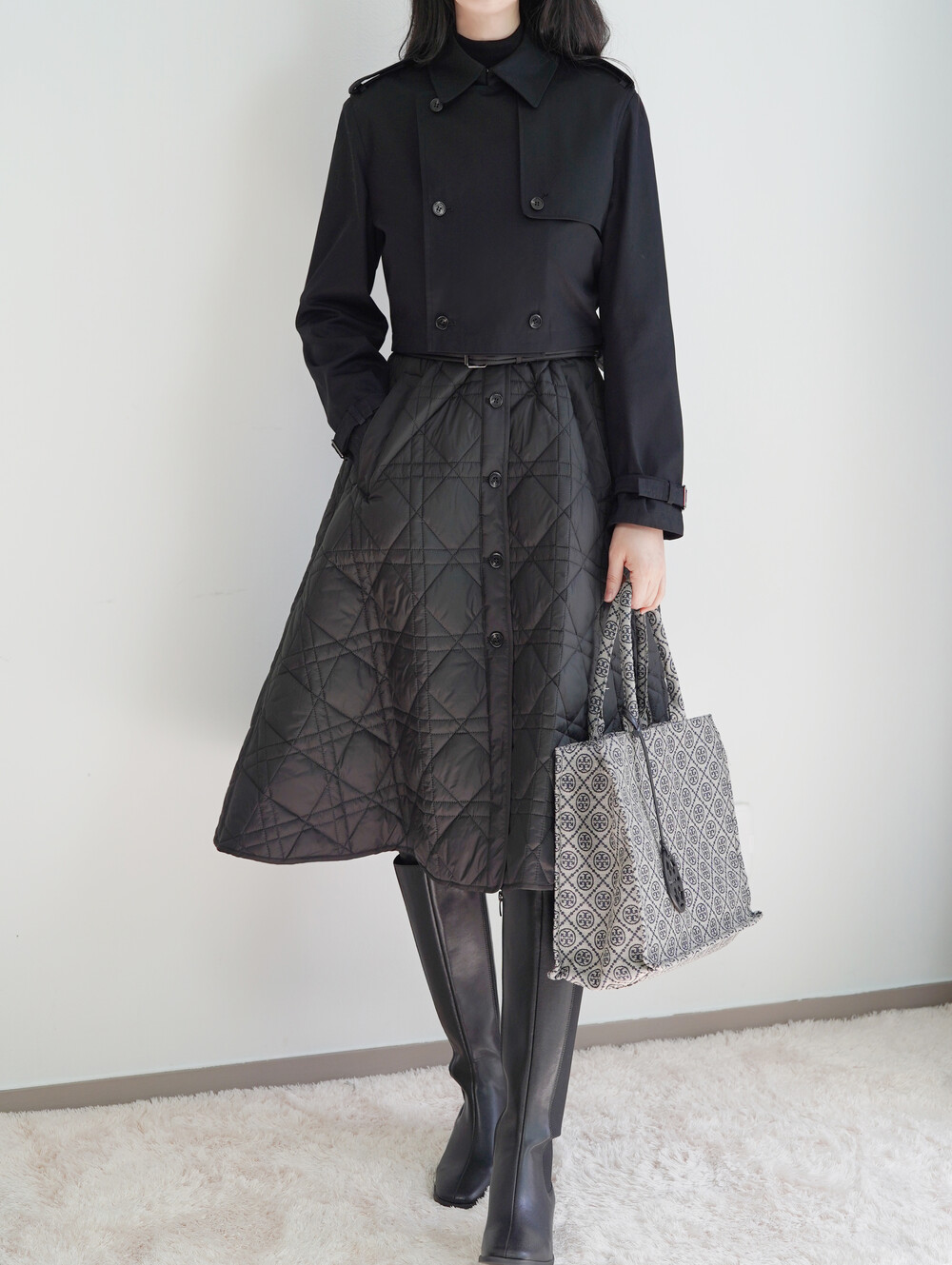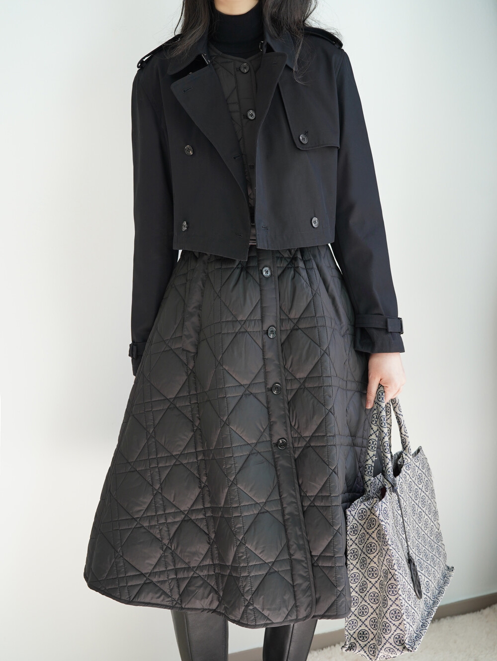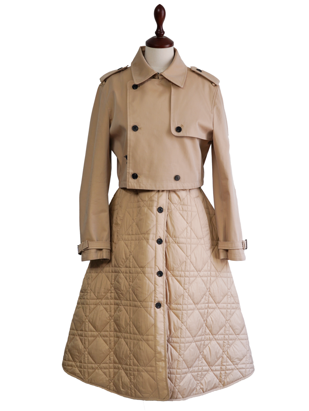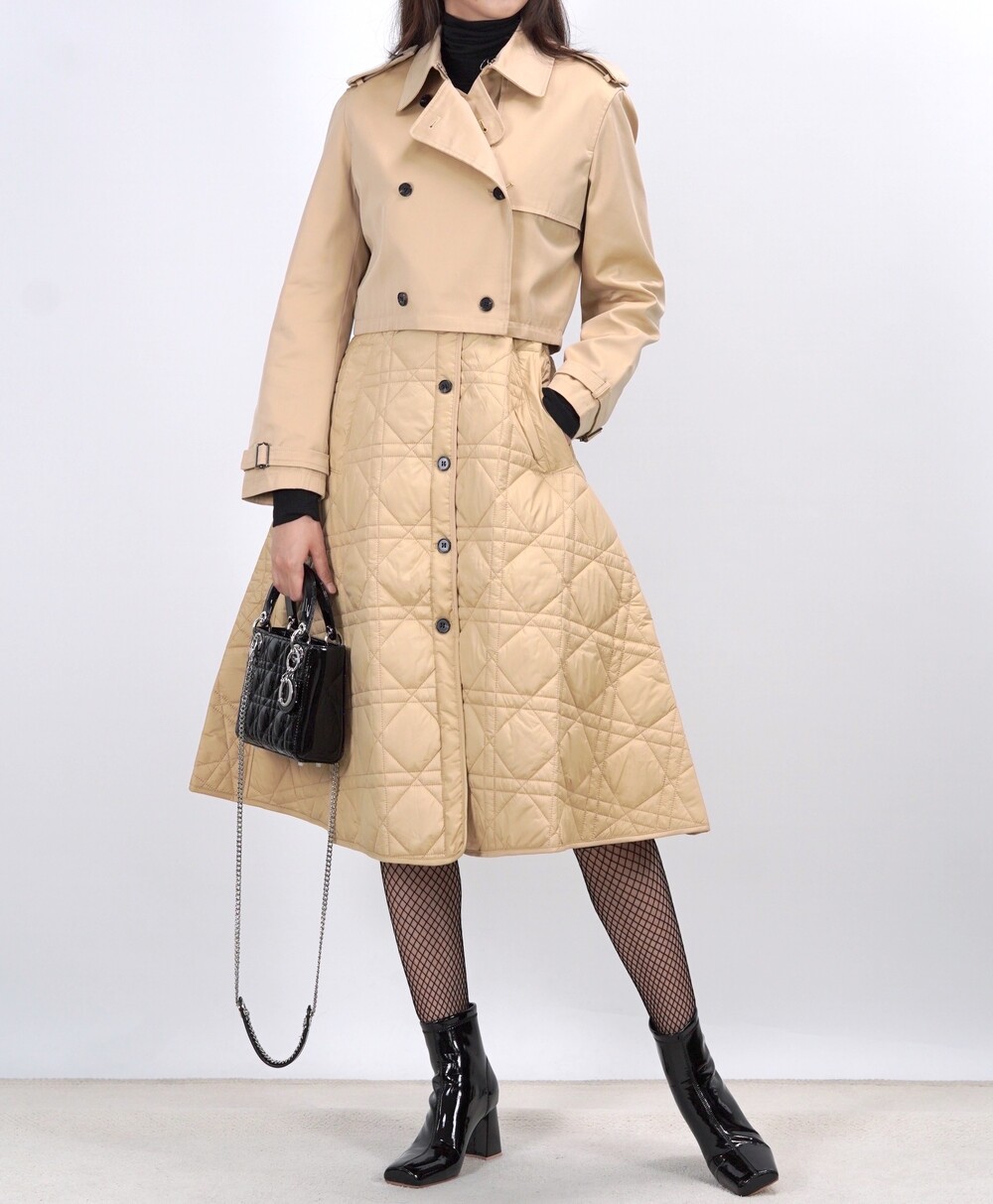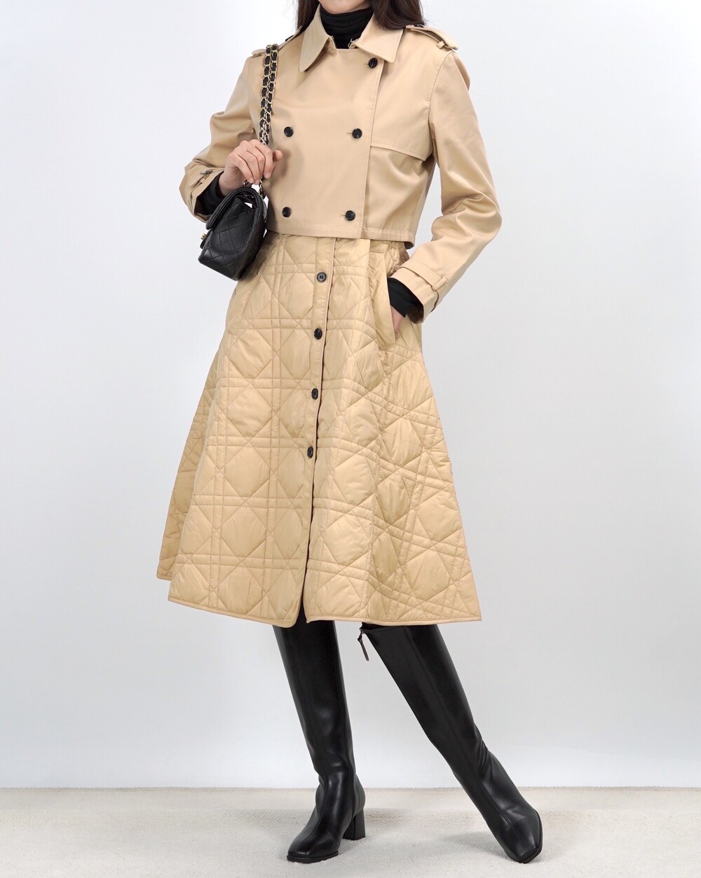개버딘 크롭 트렌치 코트 + 까나쥬 퀼팅 A 드레스