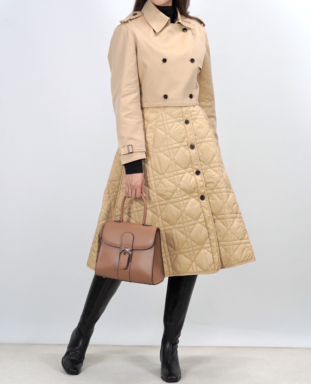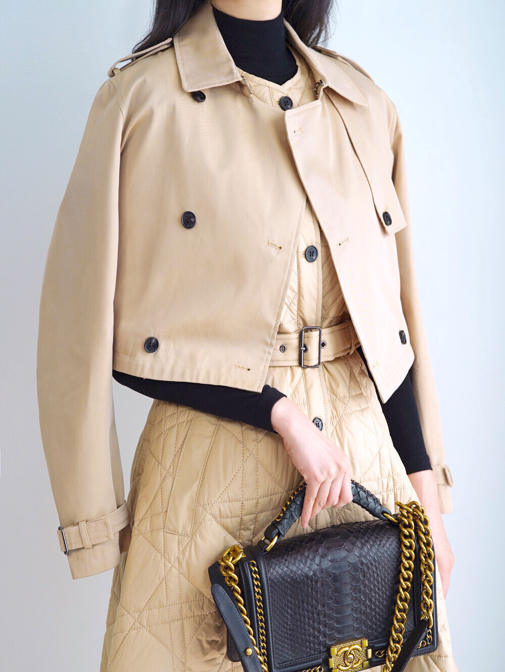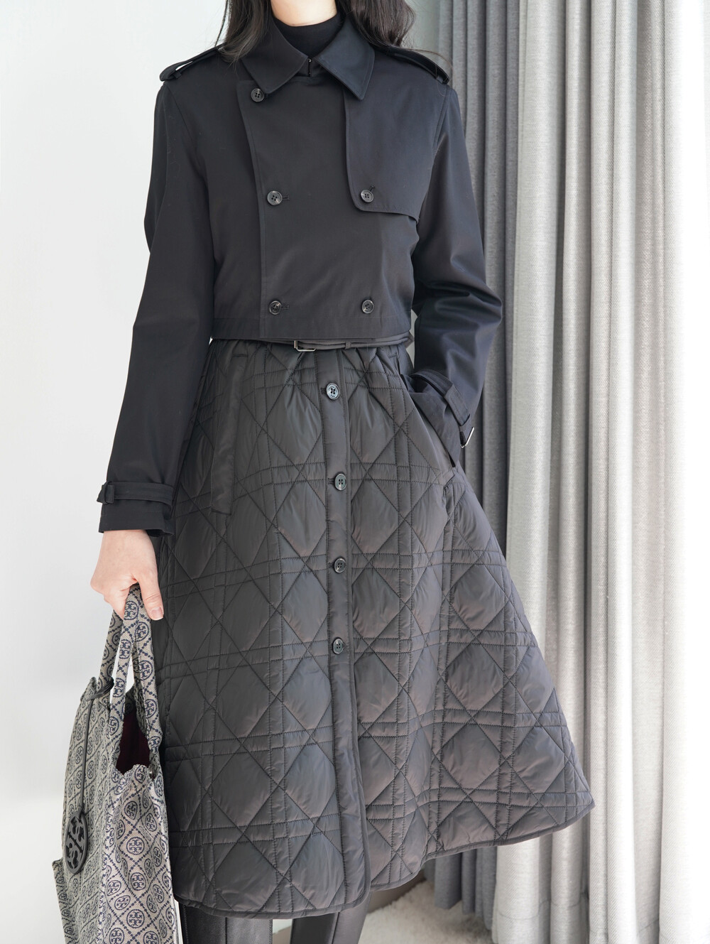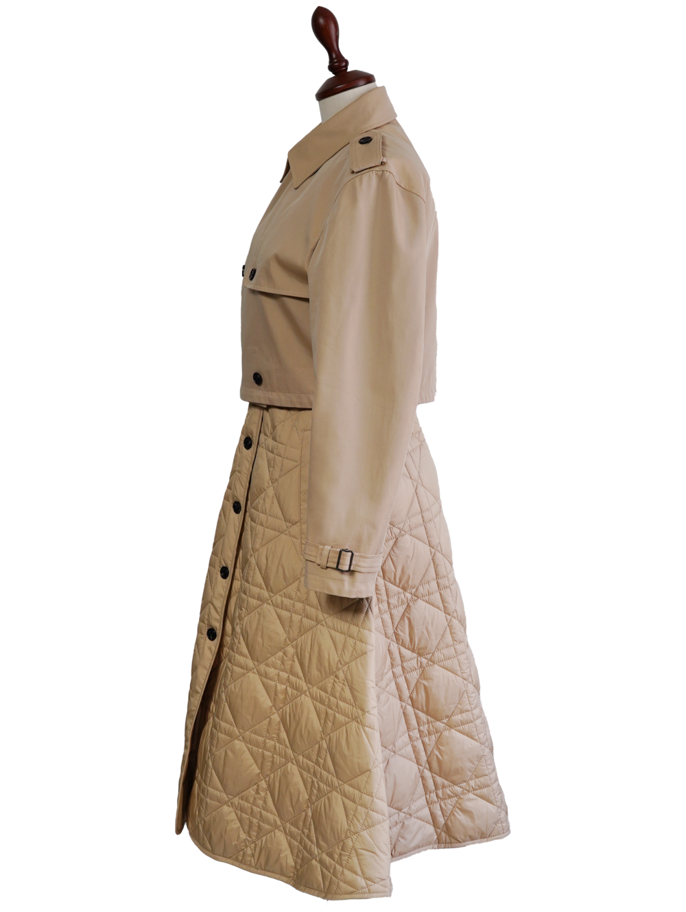 개버딘 크롭 트렌치 코트 + 까나쥬 퀼팅 A 드레스