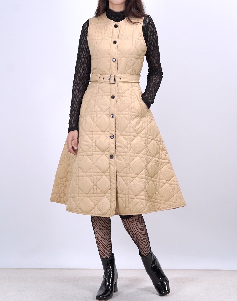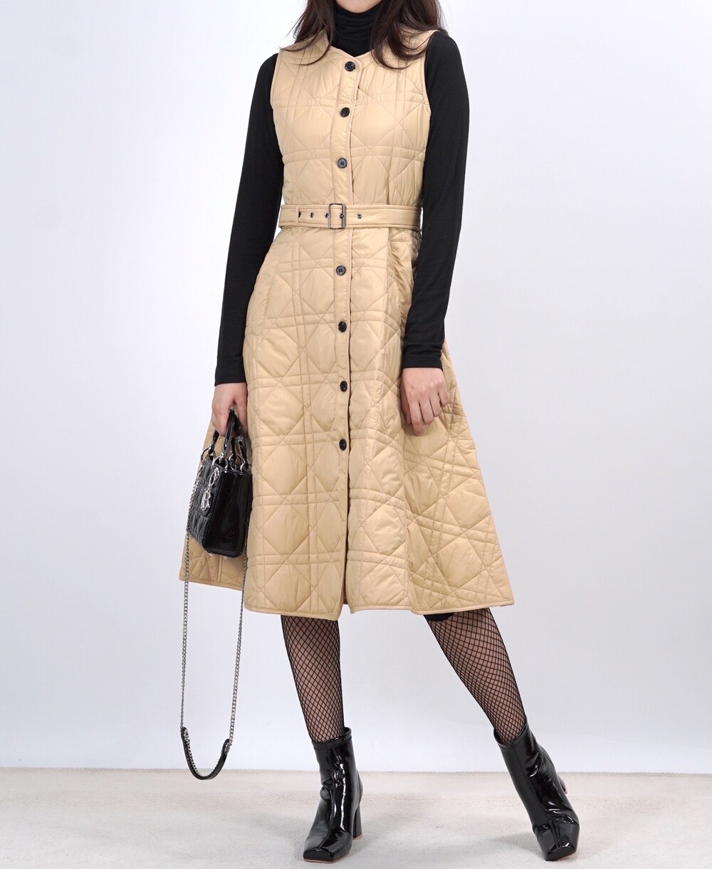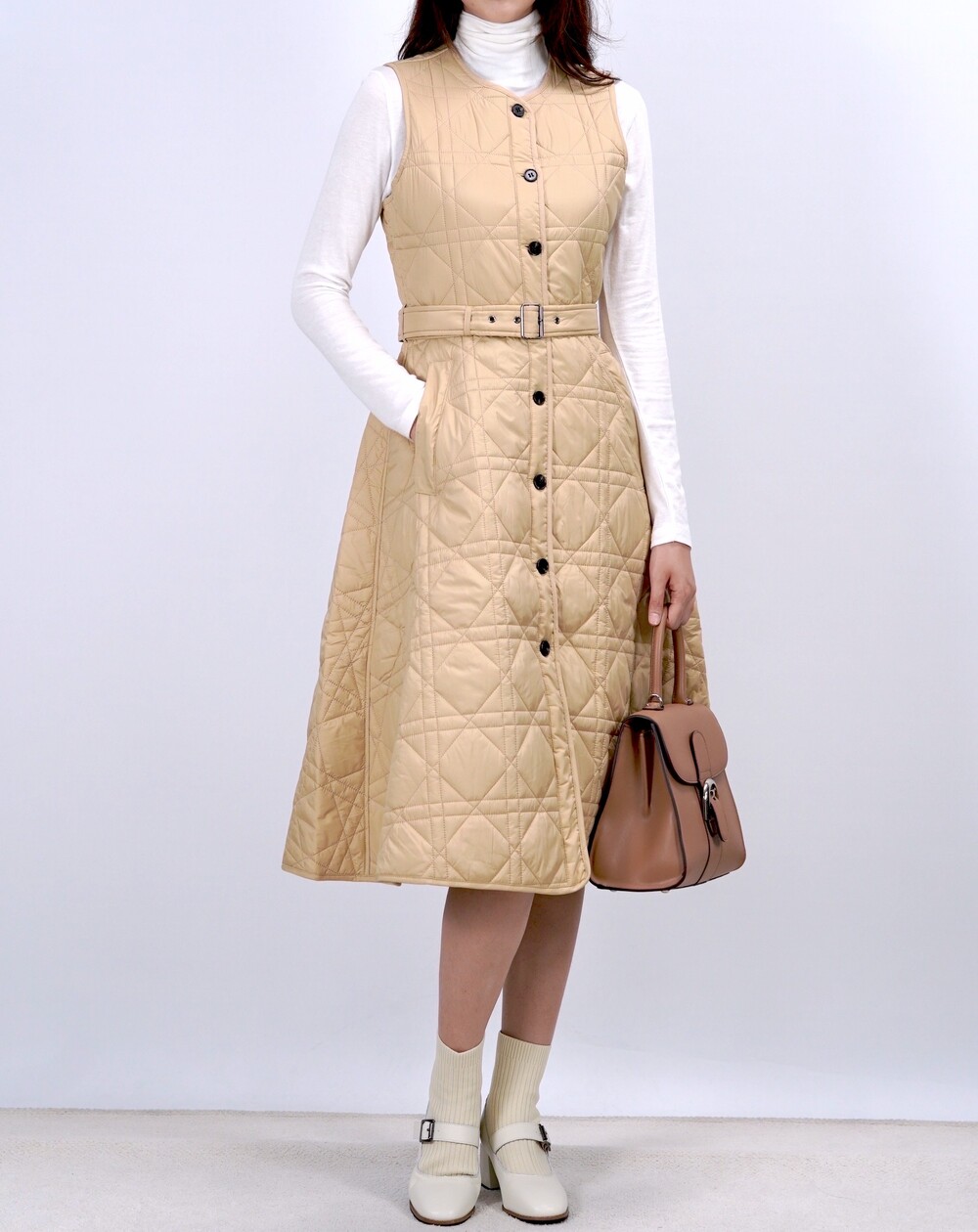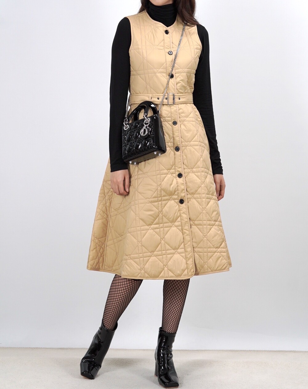 정교하게 까나쥬 패턴으로 퀼팅된 원피스