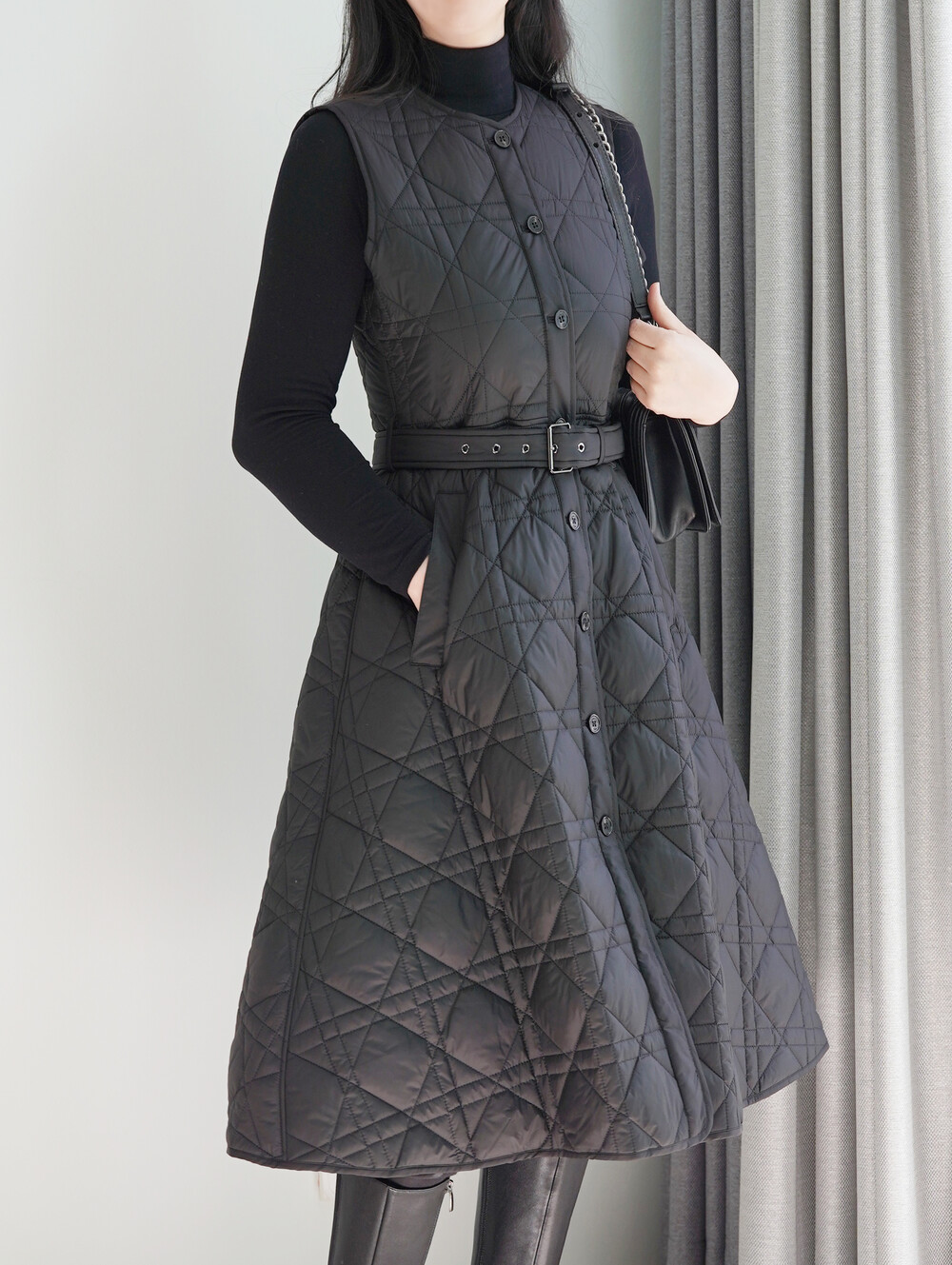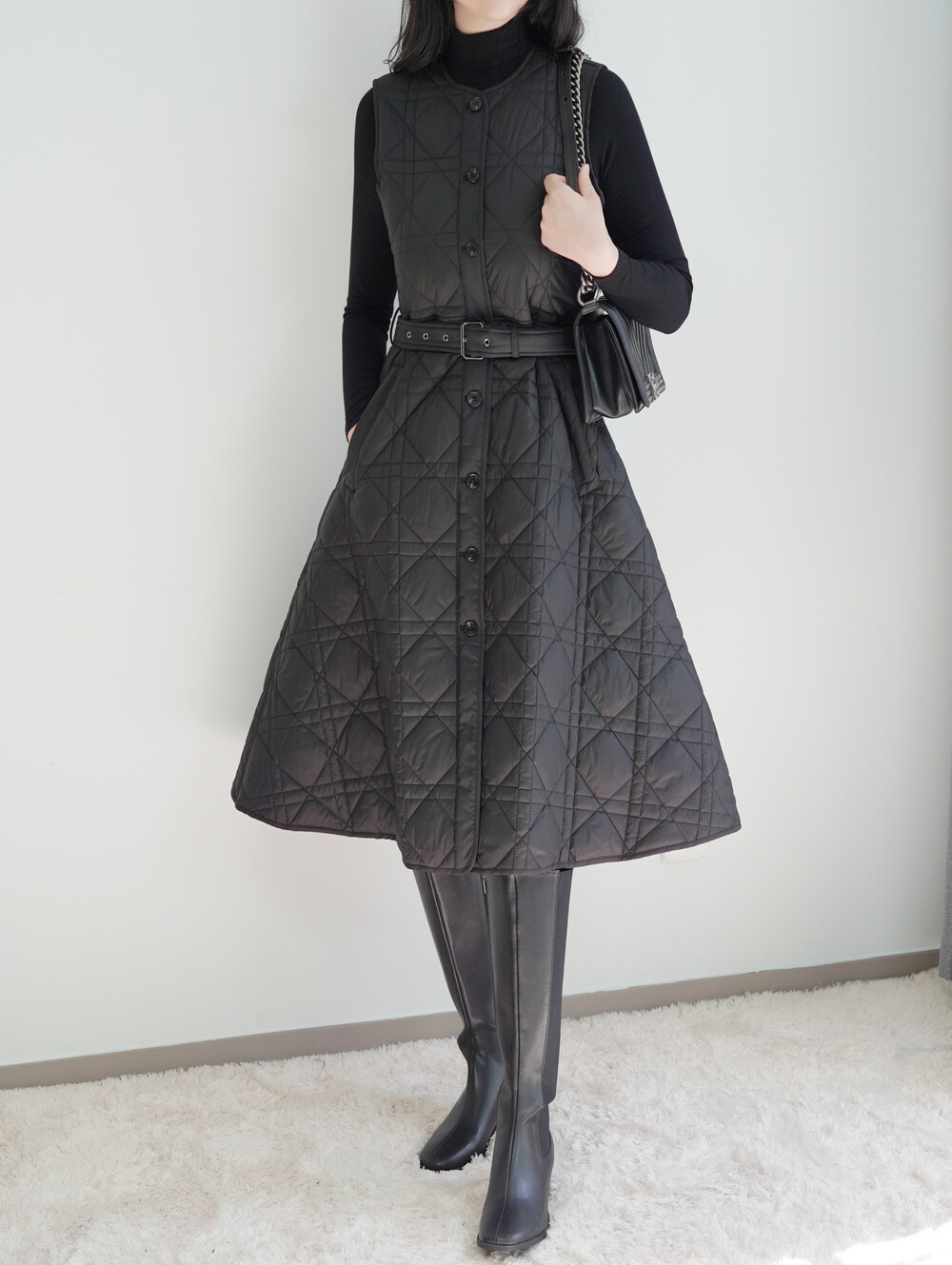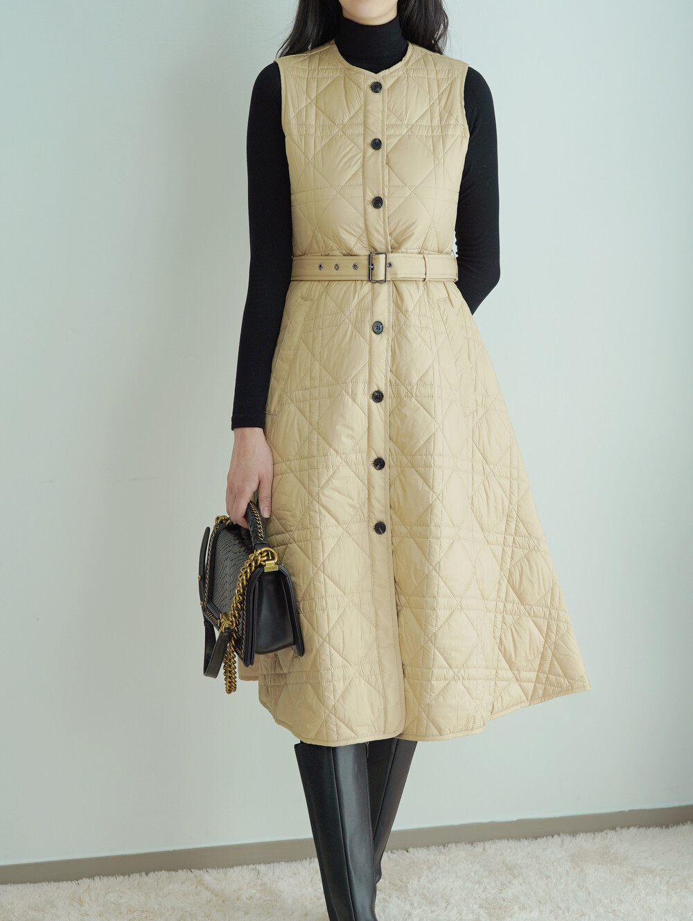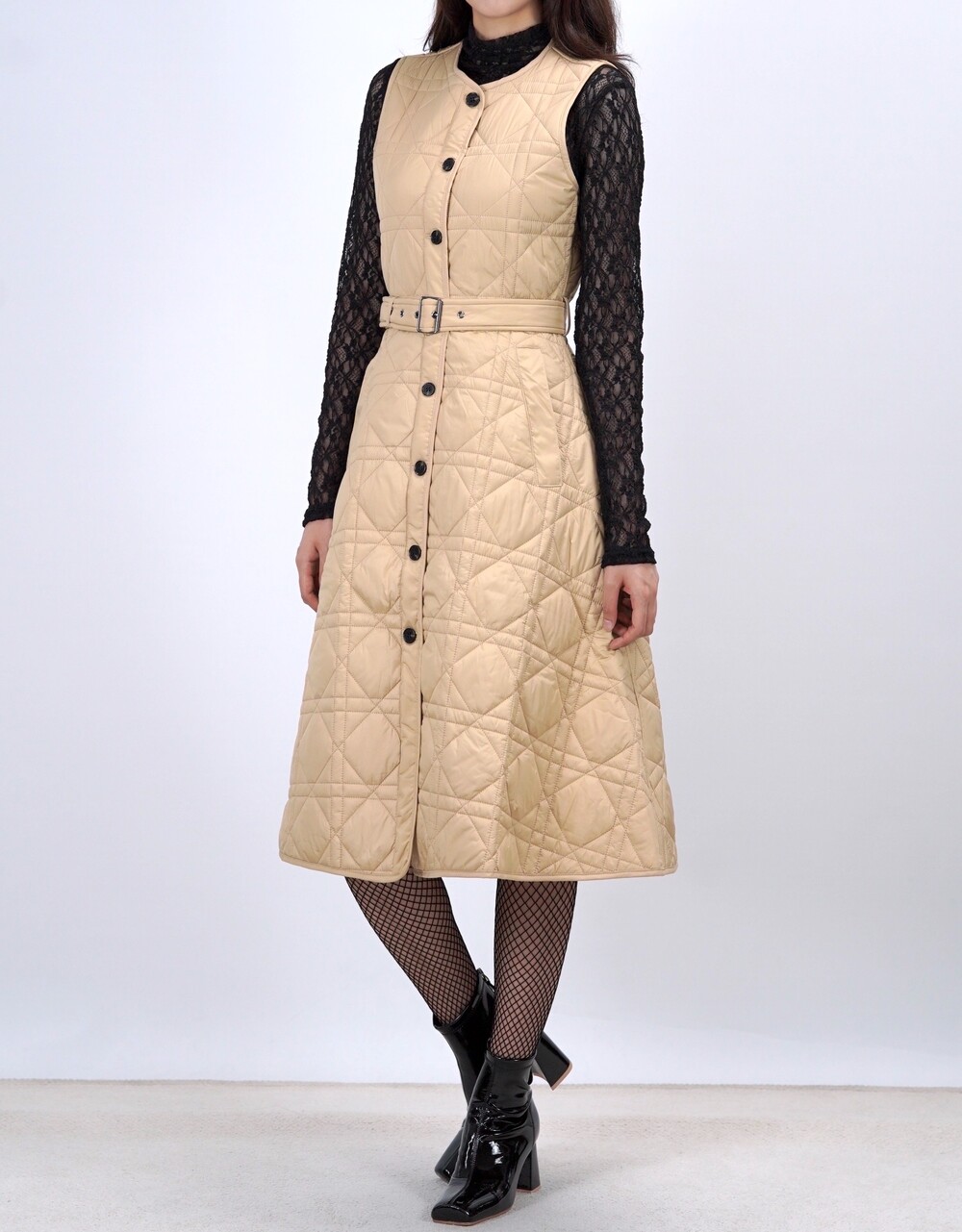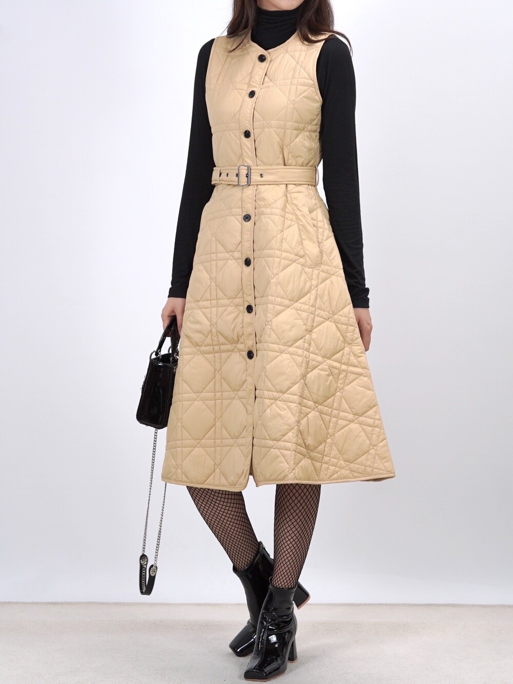 정교하게 까나쥬 패턴으로 퀼팅된 원피스