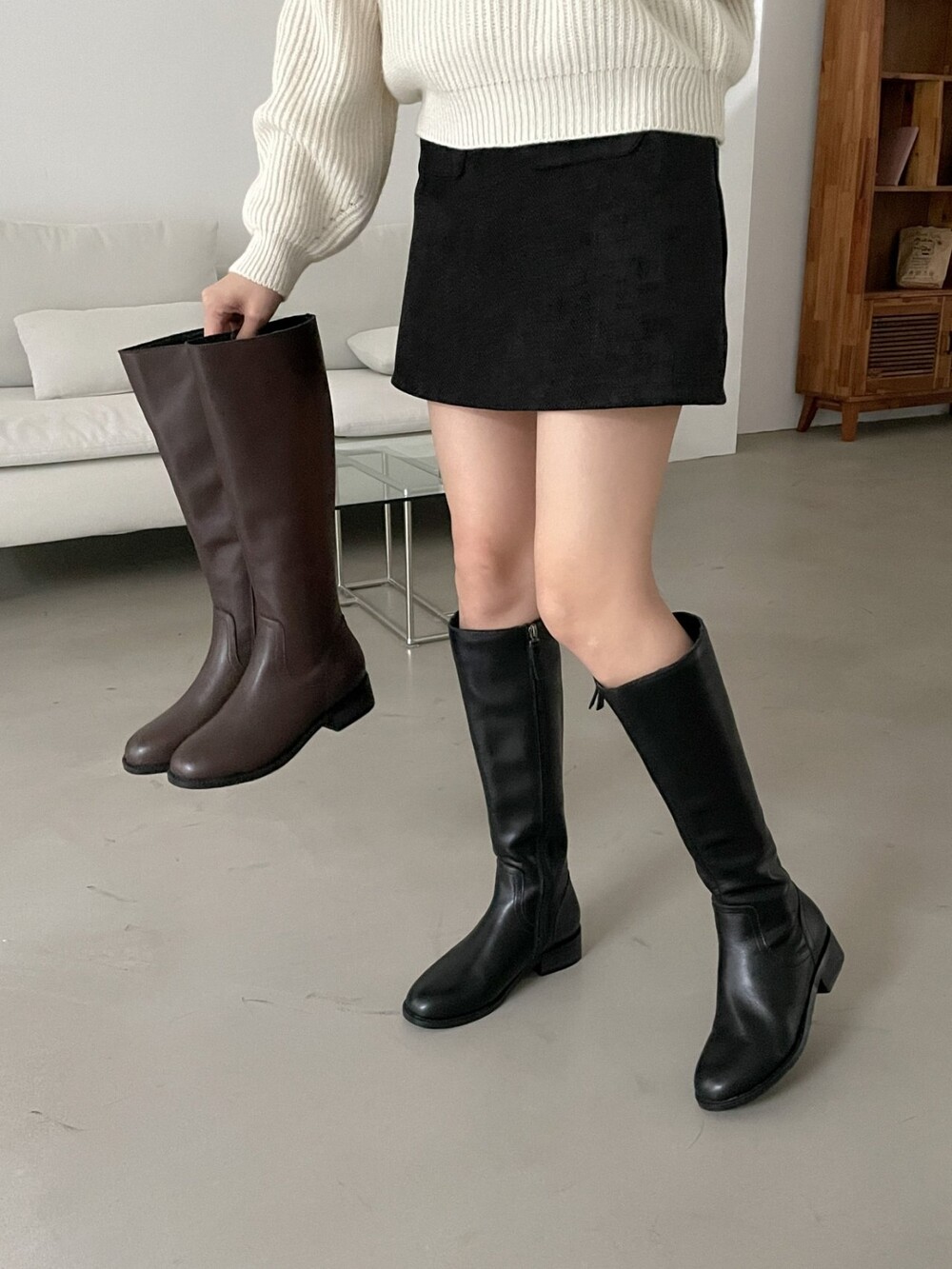 [기획 천연가죽] 프렌치 로우 솔 롱 부츠