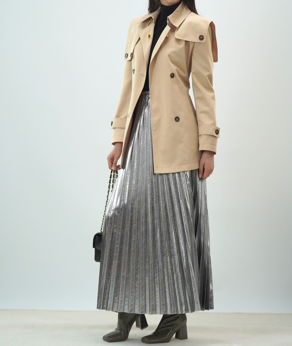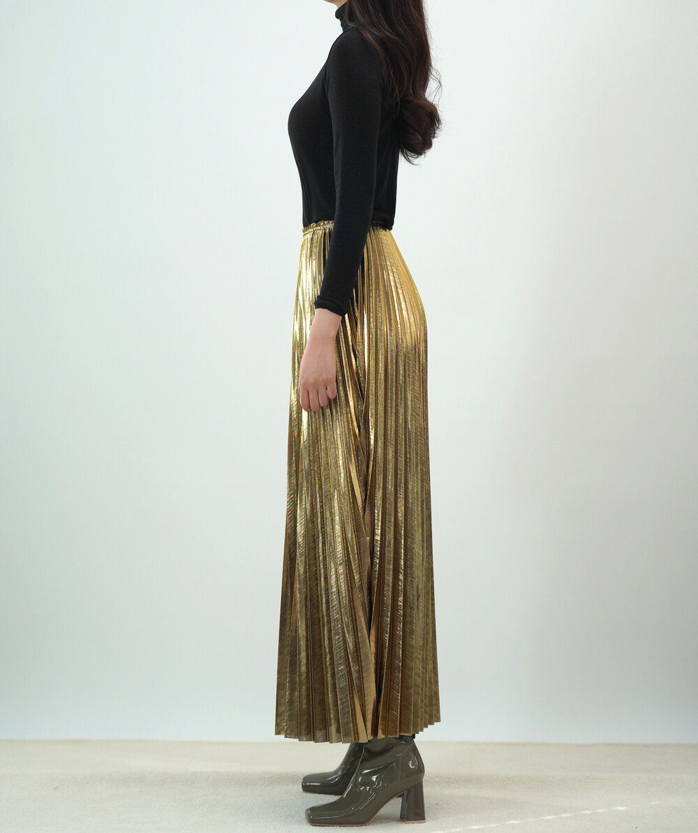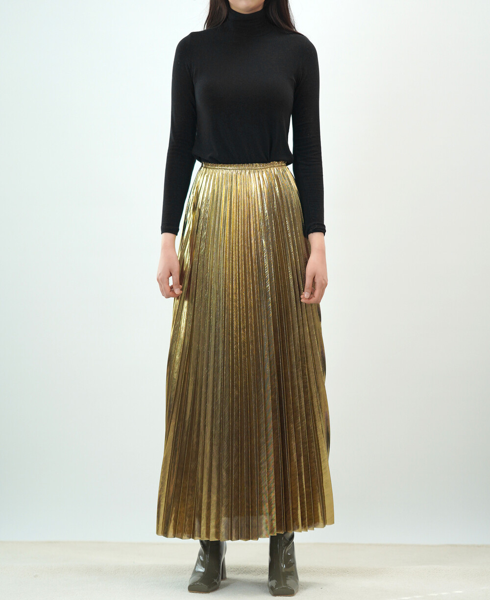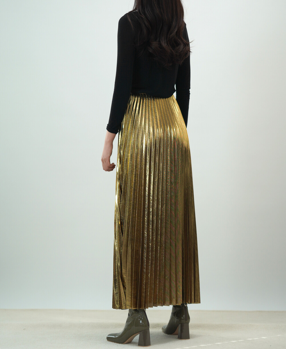 샤이닝 메탈 플리츠 스커트의 매력입니다.
