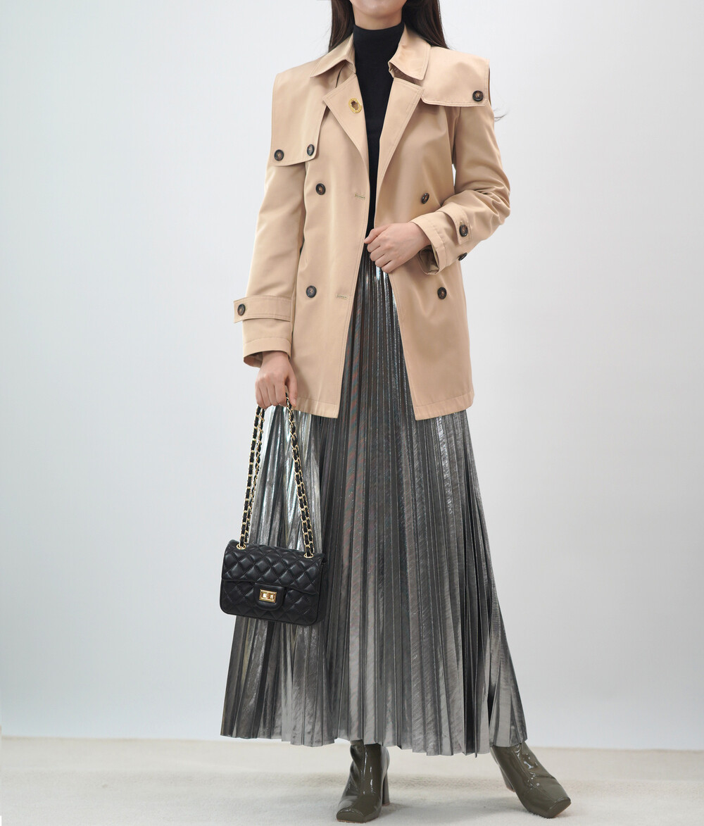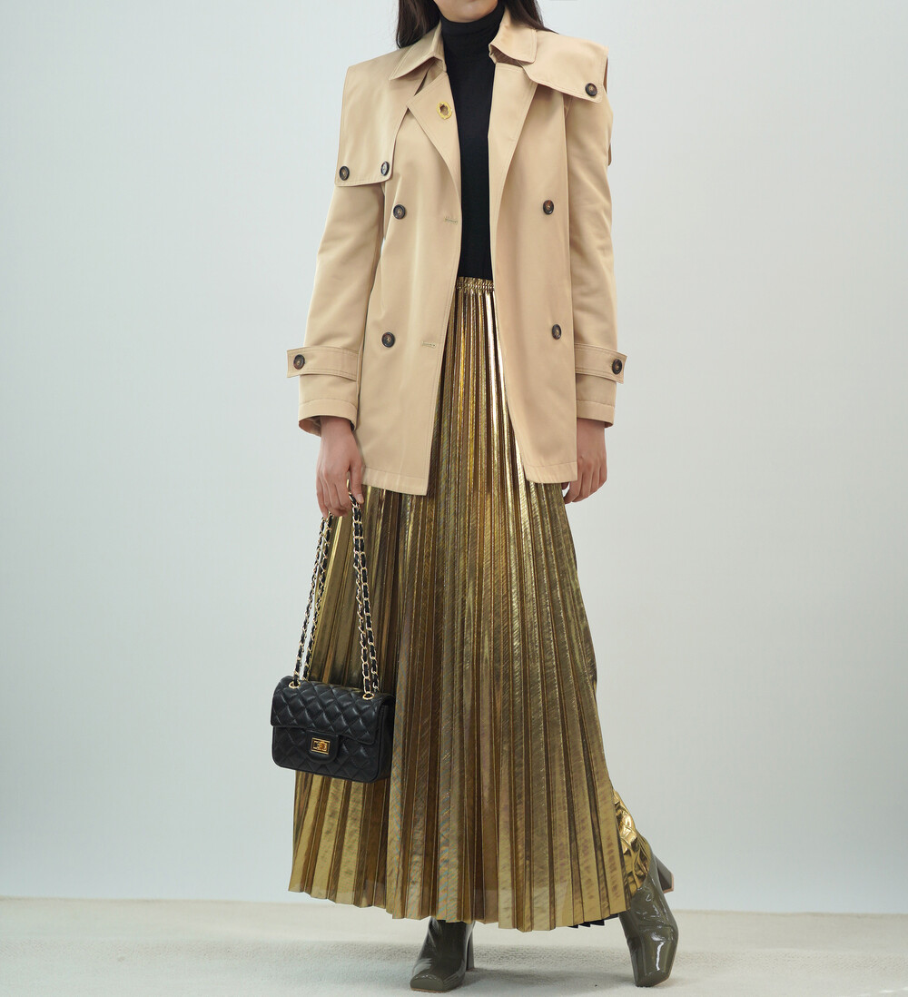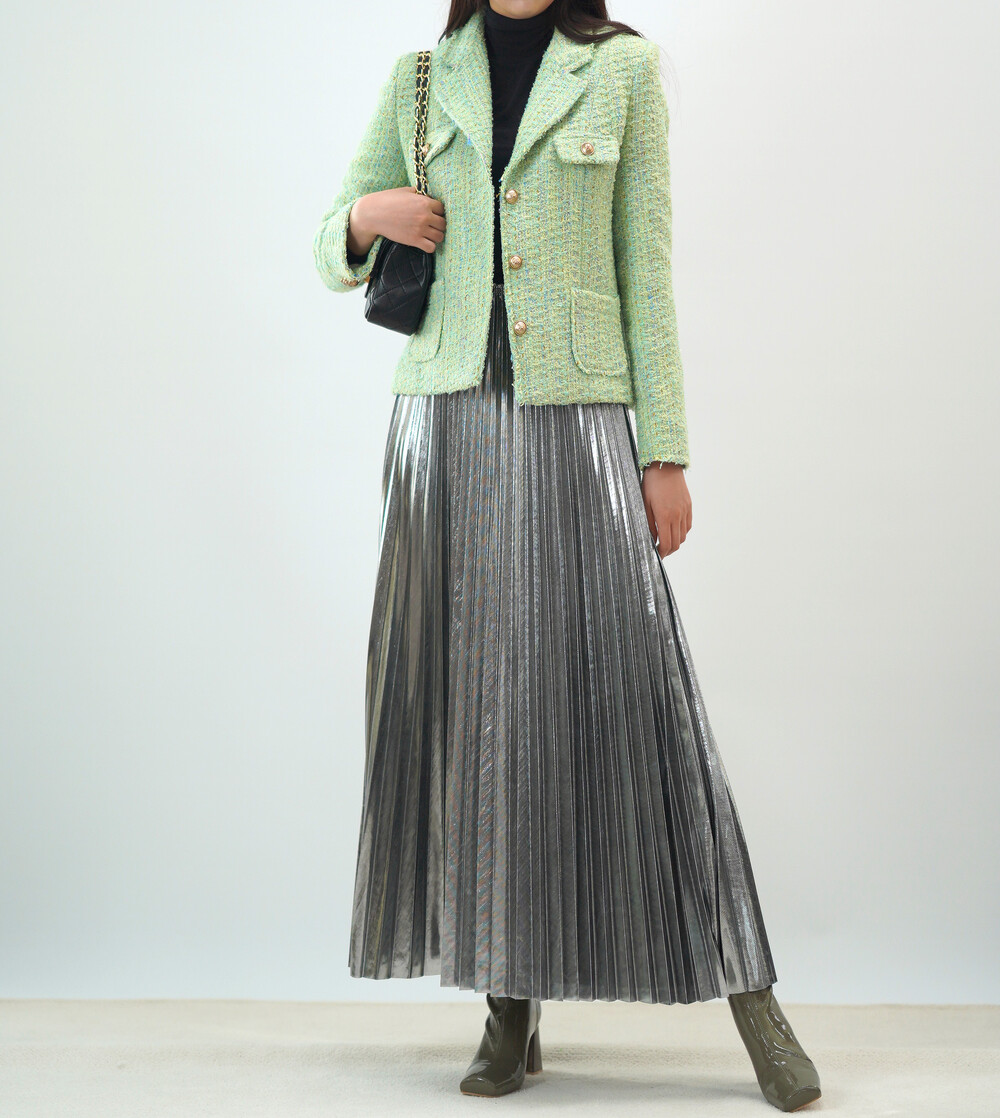 샤이닝 메탈 플리츠 스커트의 매력입니다.
