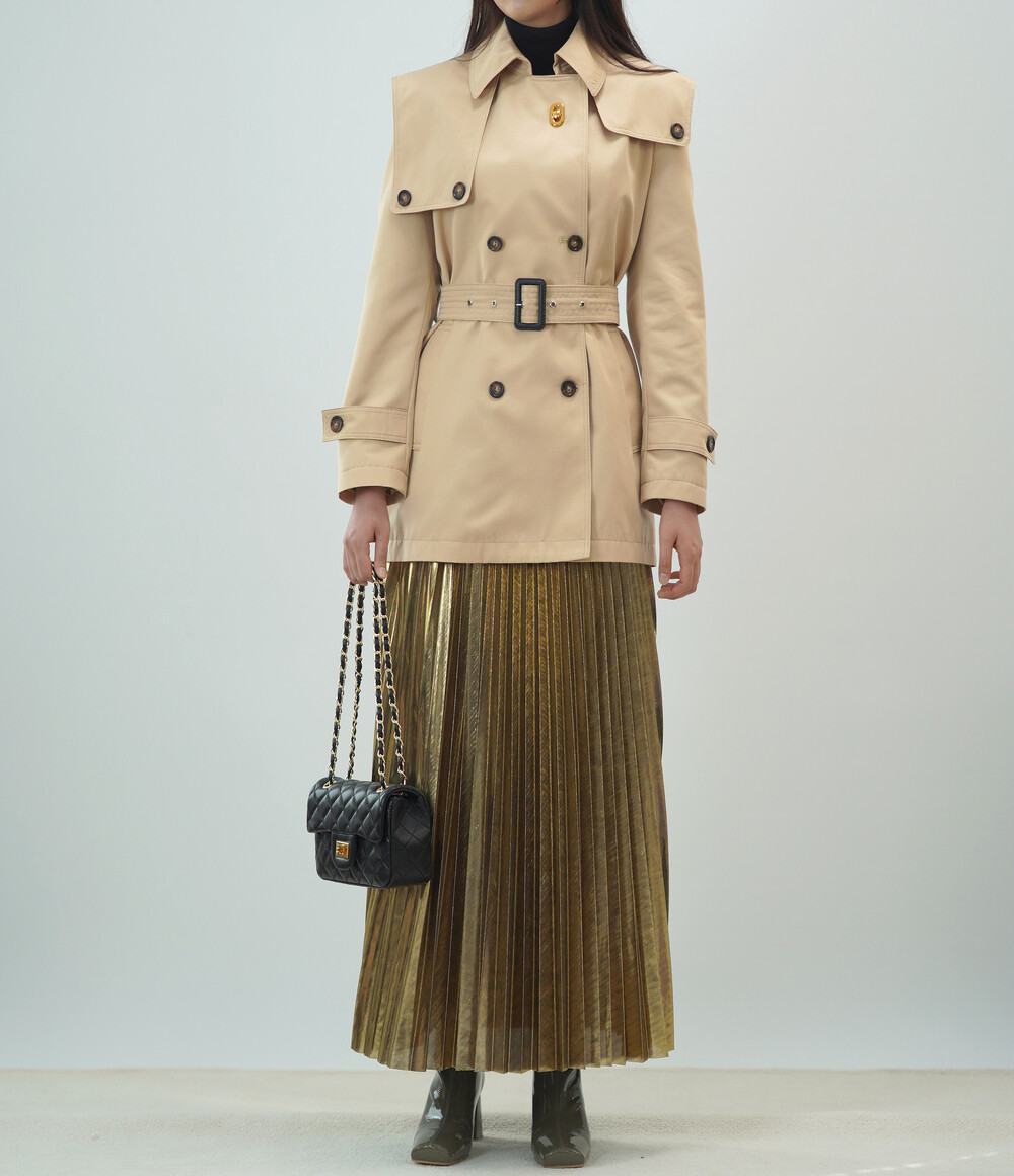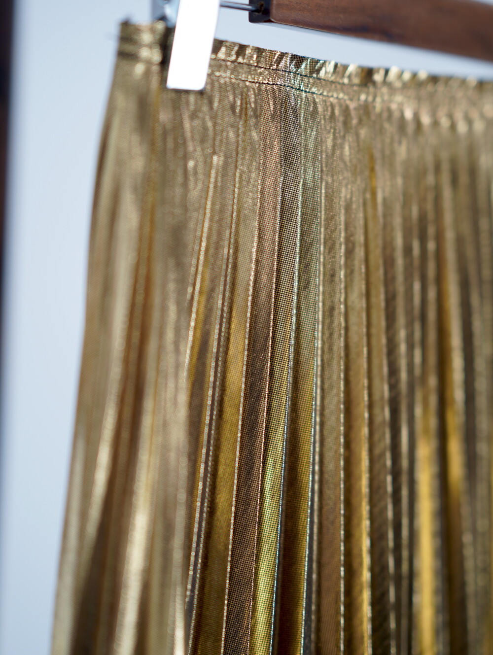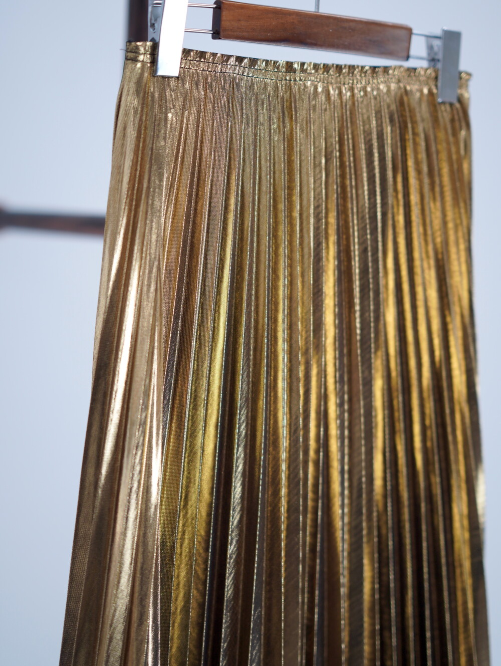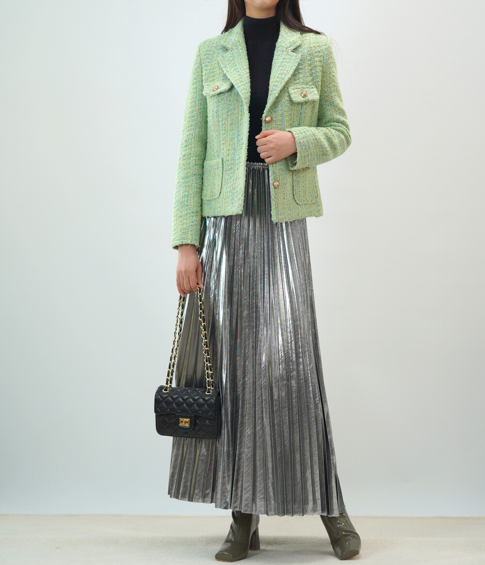 샤이닝 메탈 플리츠 스커트의 매력입니다.