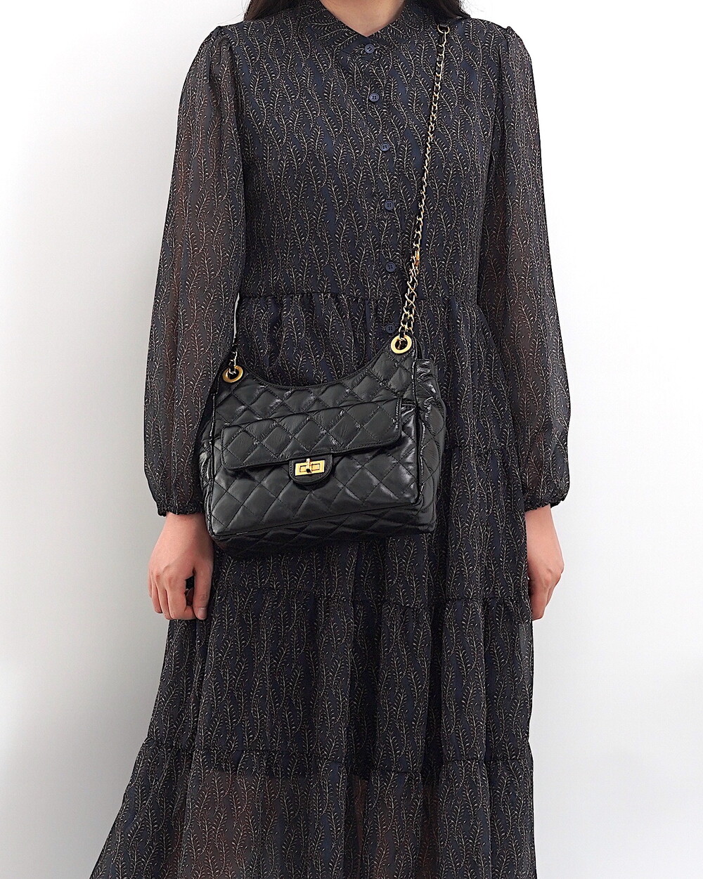 금장 체인과 가죽으로 혼합 제작된 스트랩은