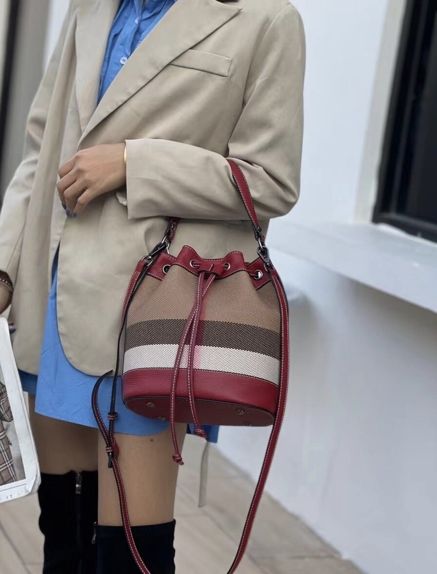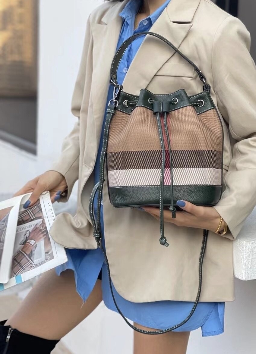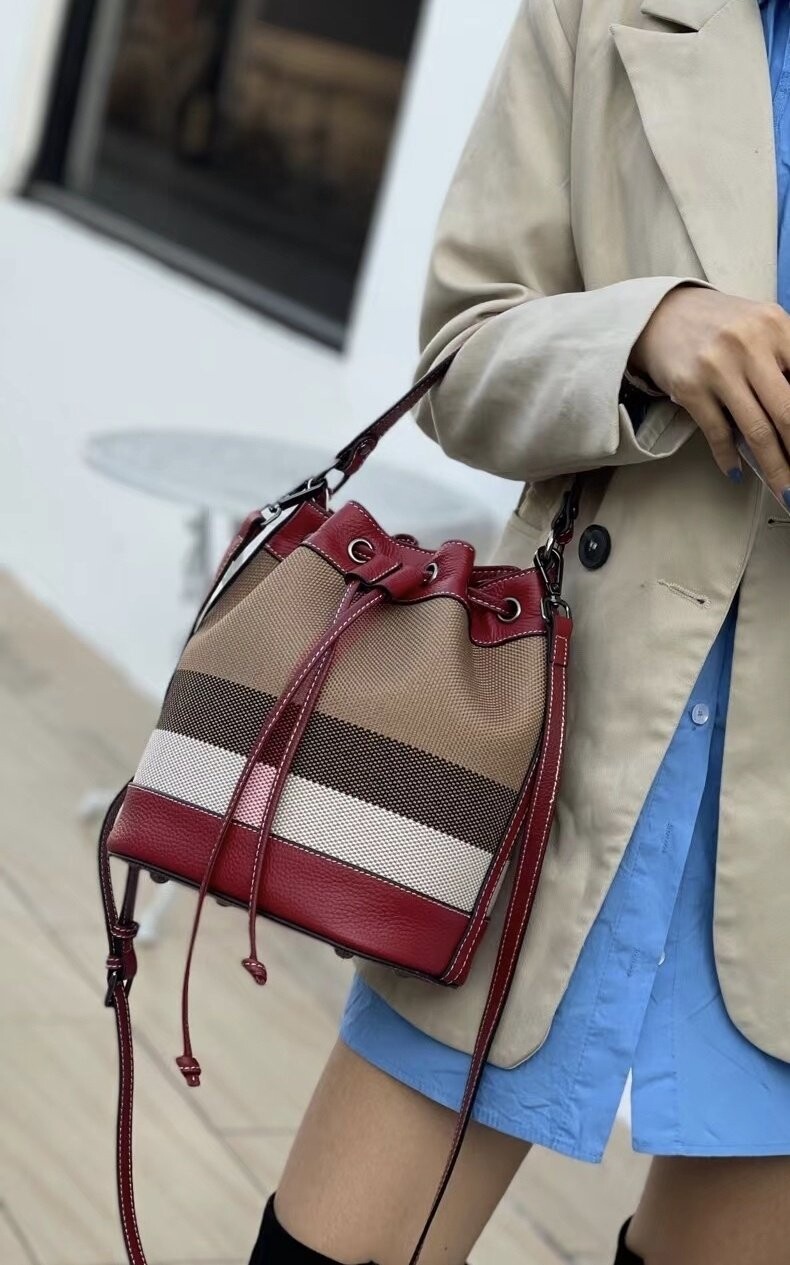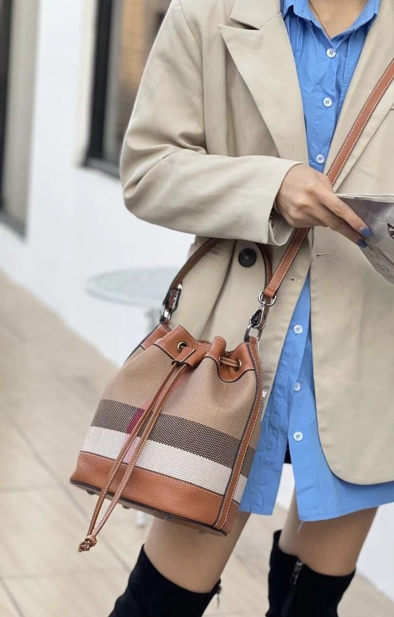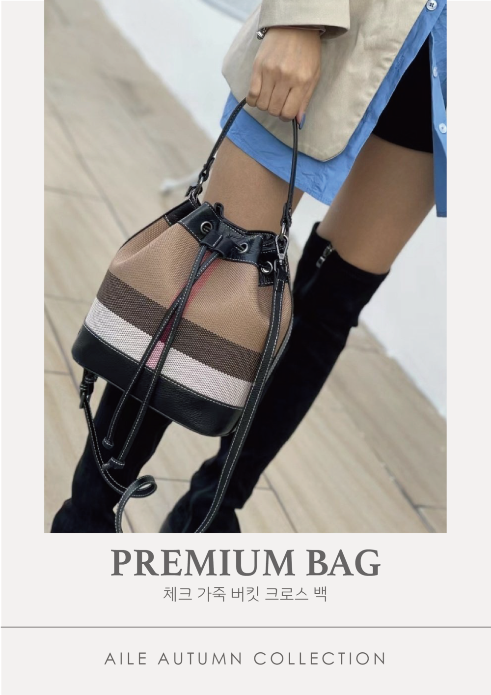 [기획 천연가죽] 체크 버킷 크로스백