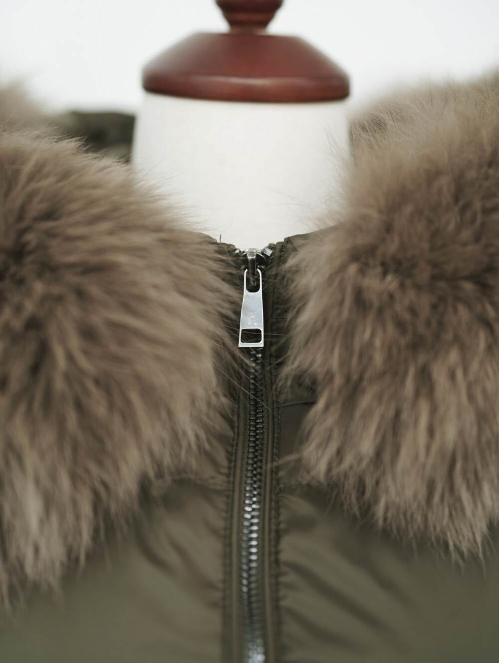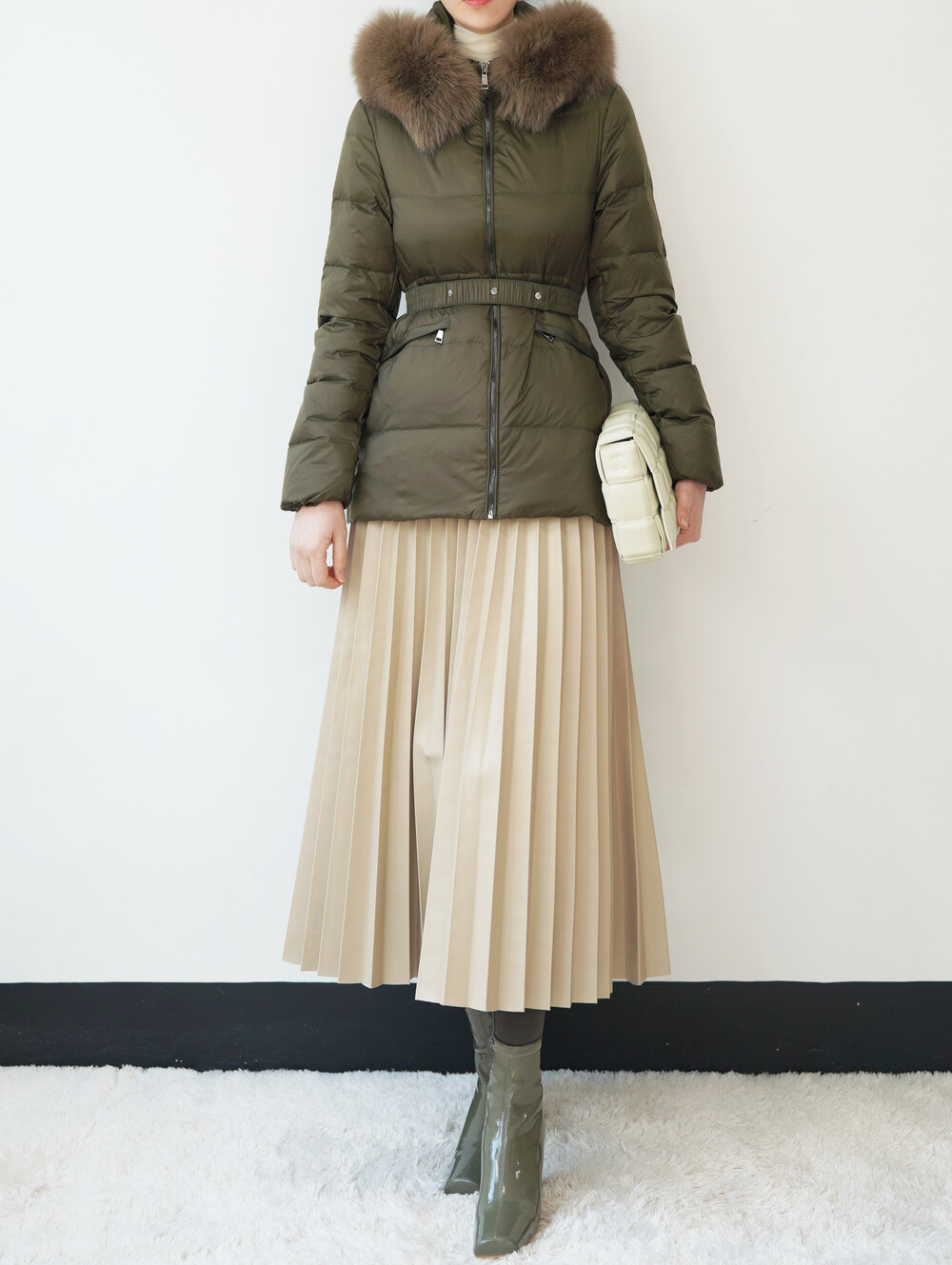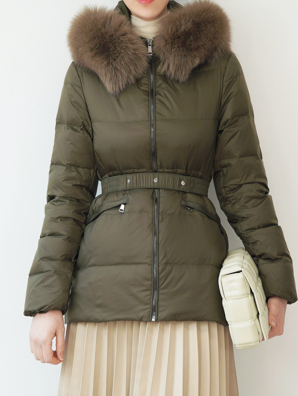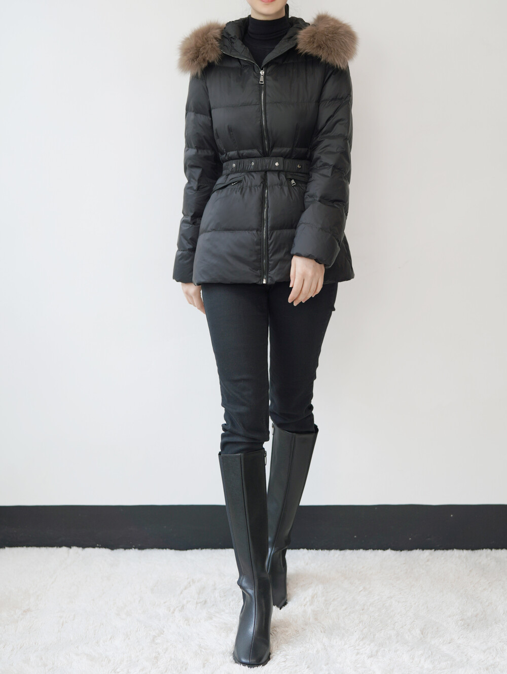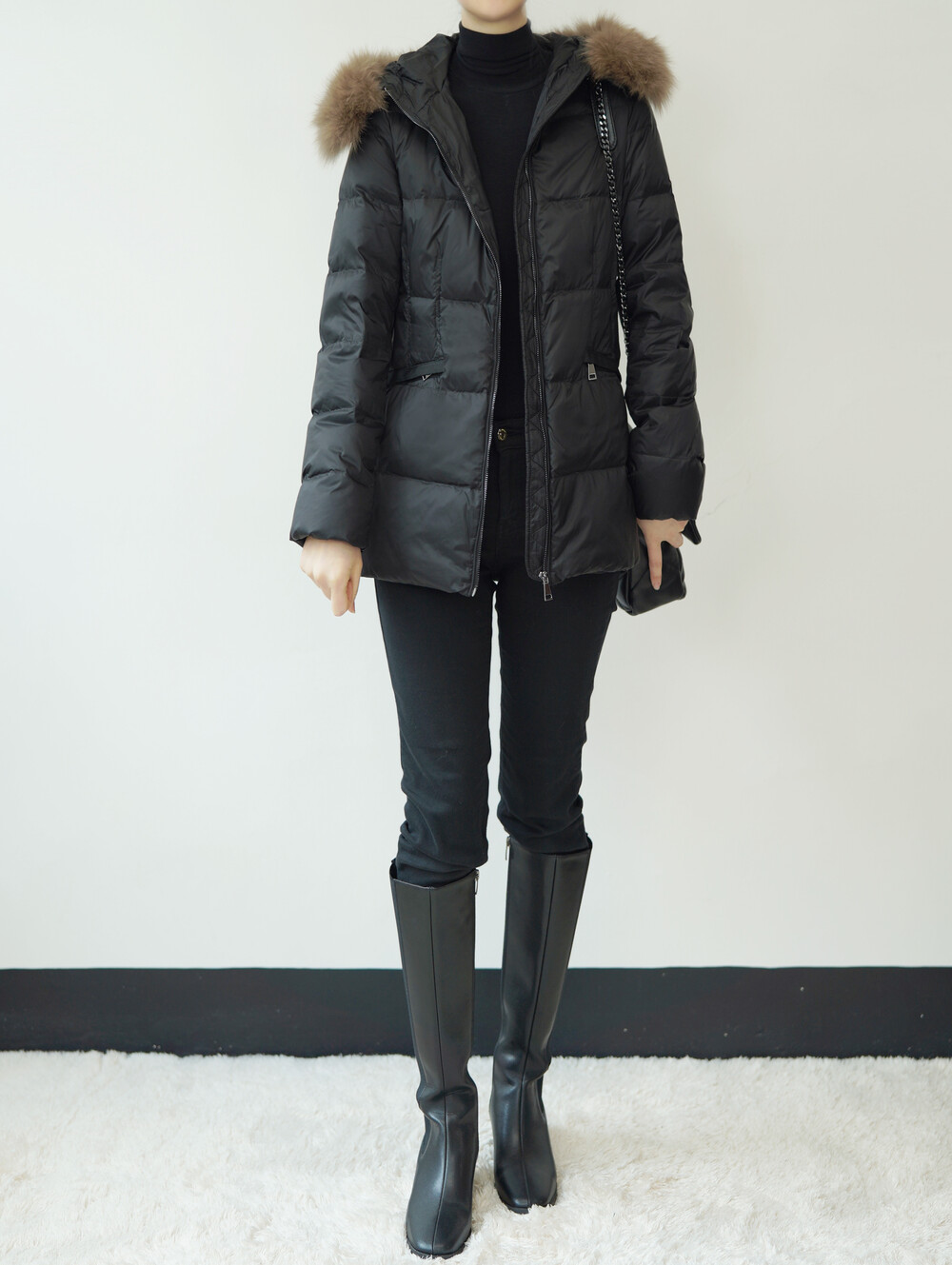 폭스퍼가 달린 숏 패딩입니다.