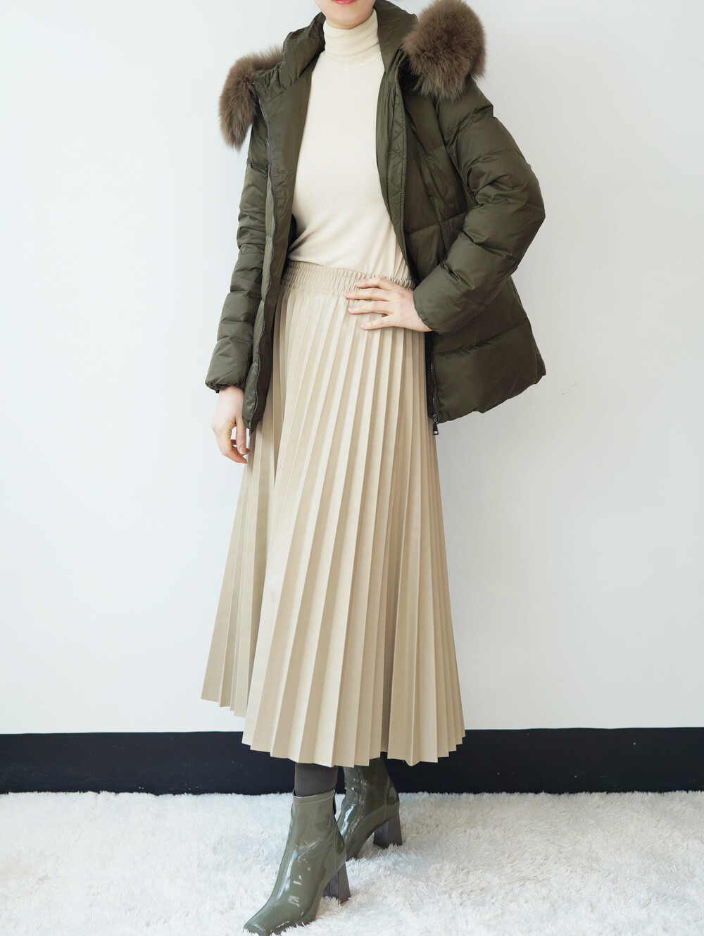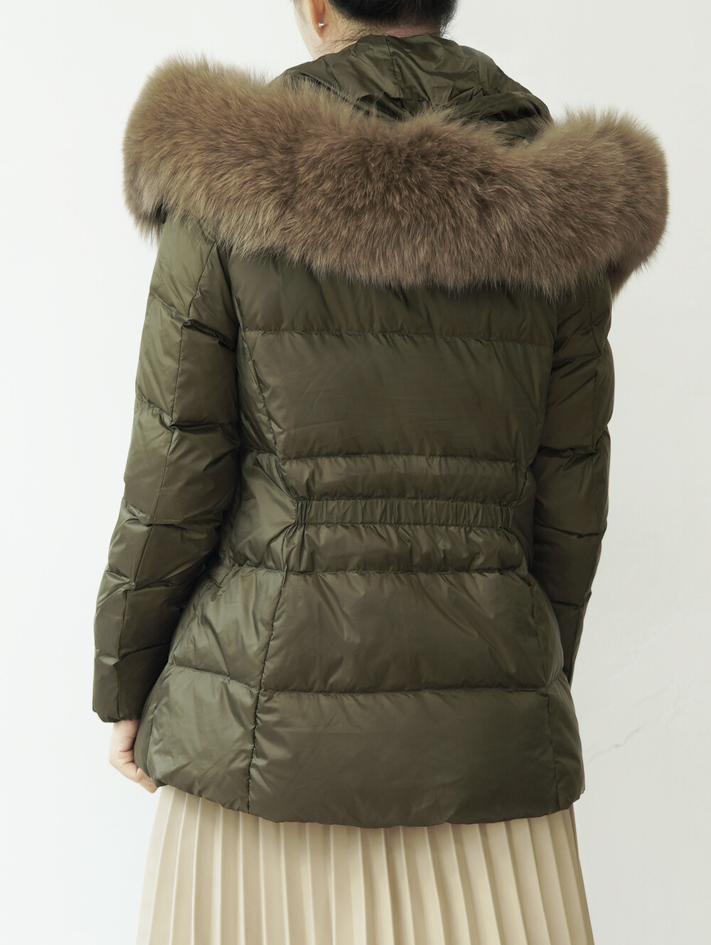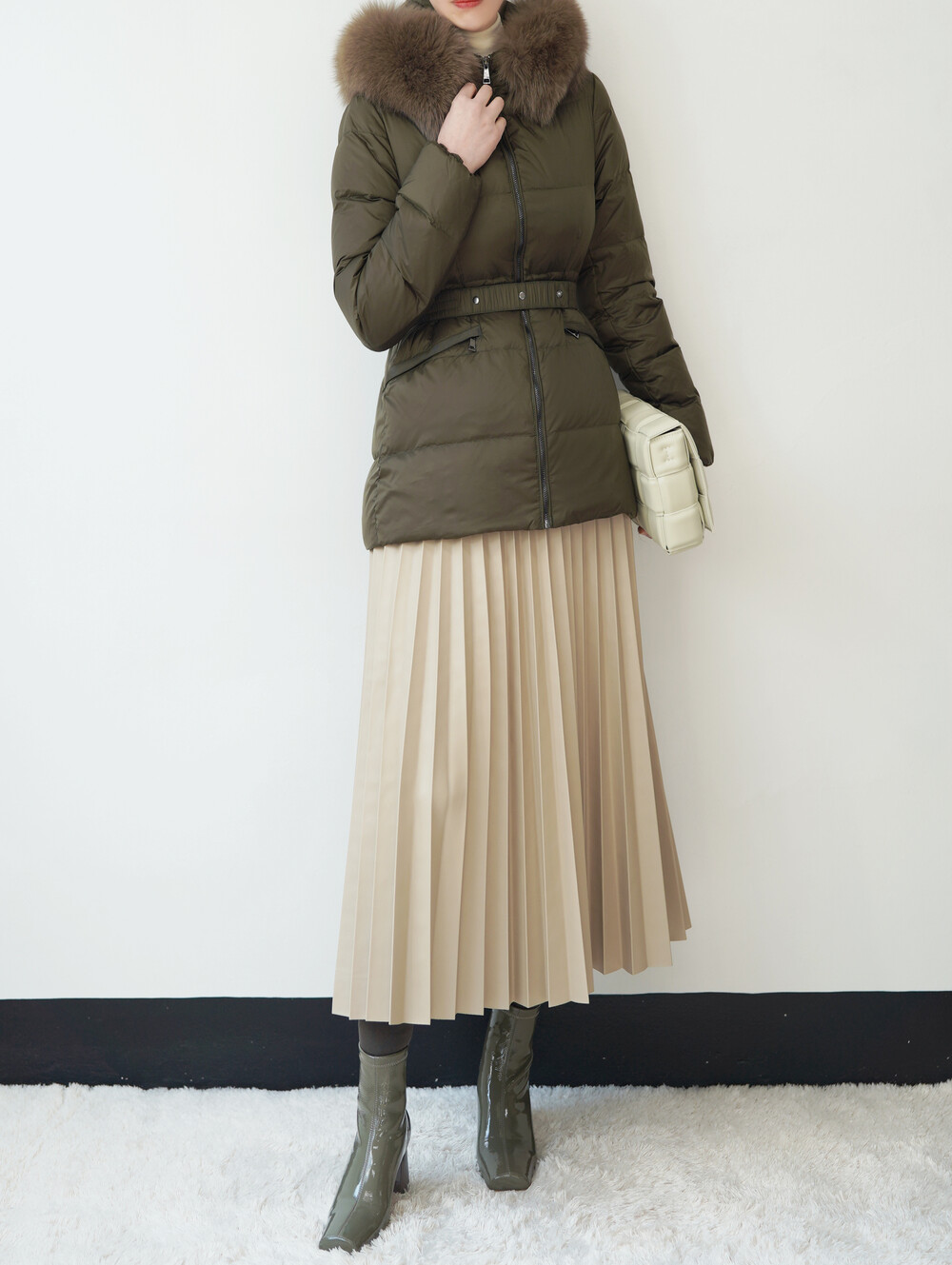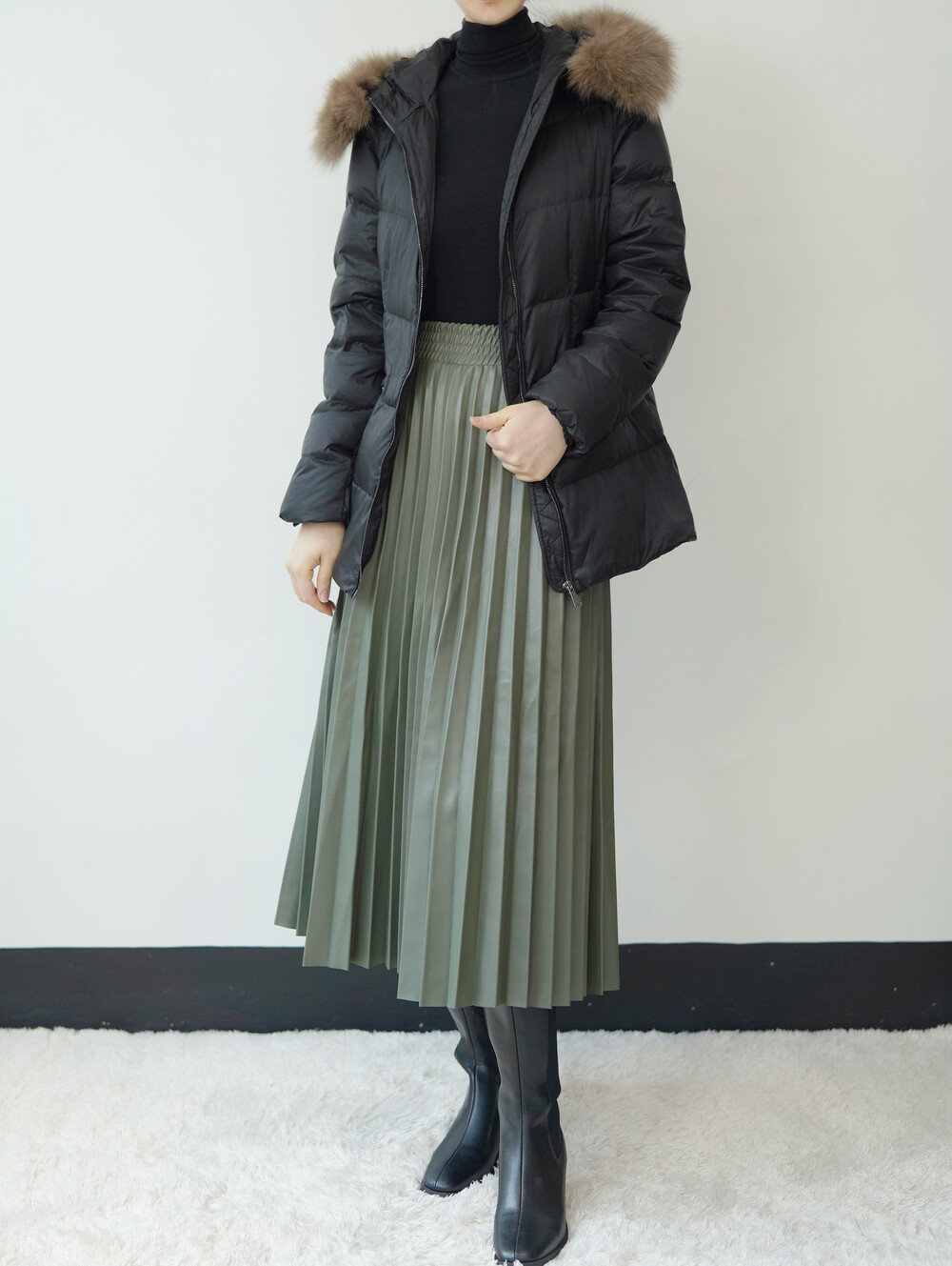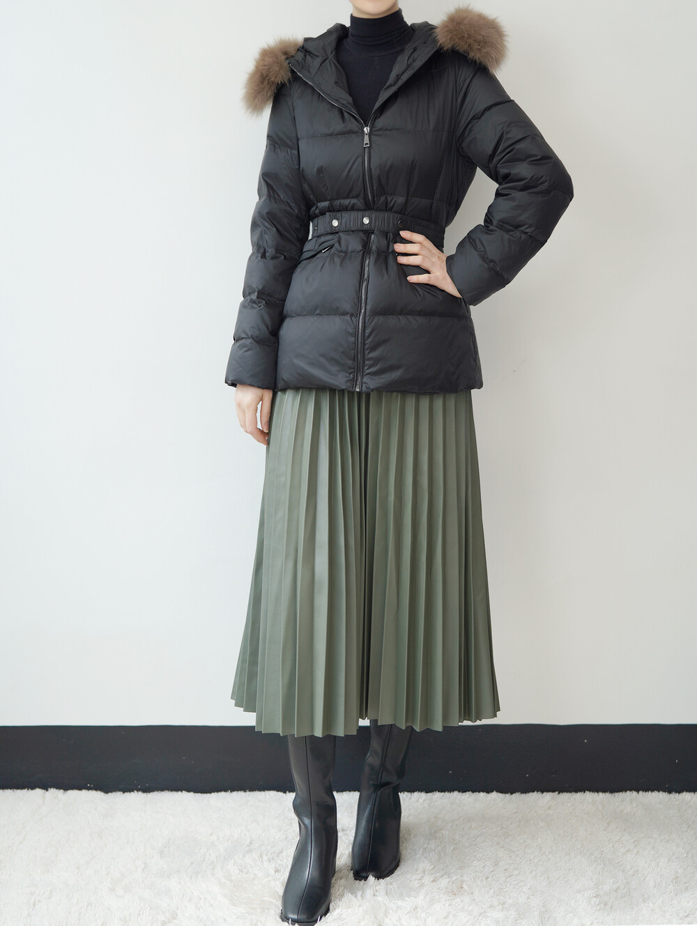 폭스퍼가 달린 숏 패딩입니다.
