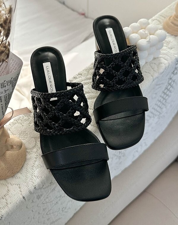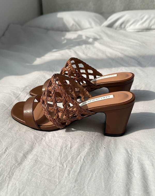 [천연가죽 기획] 로만 네트 힐 슬리퍼