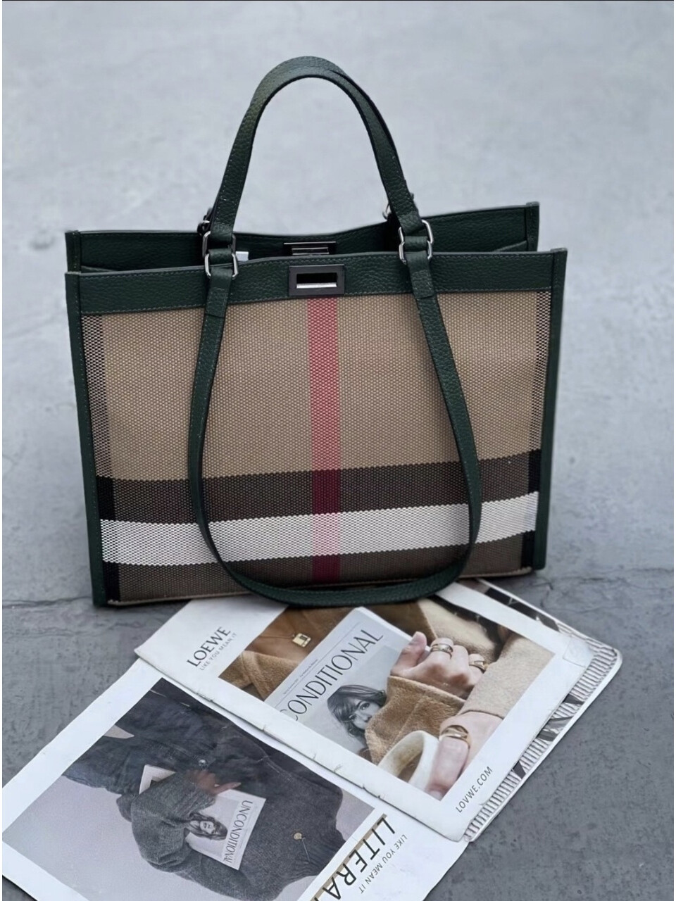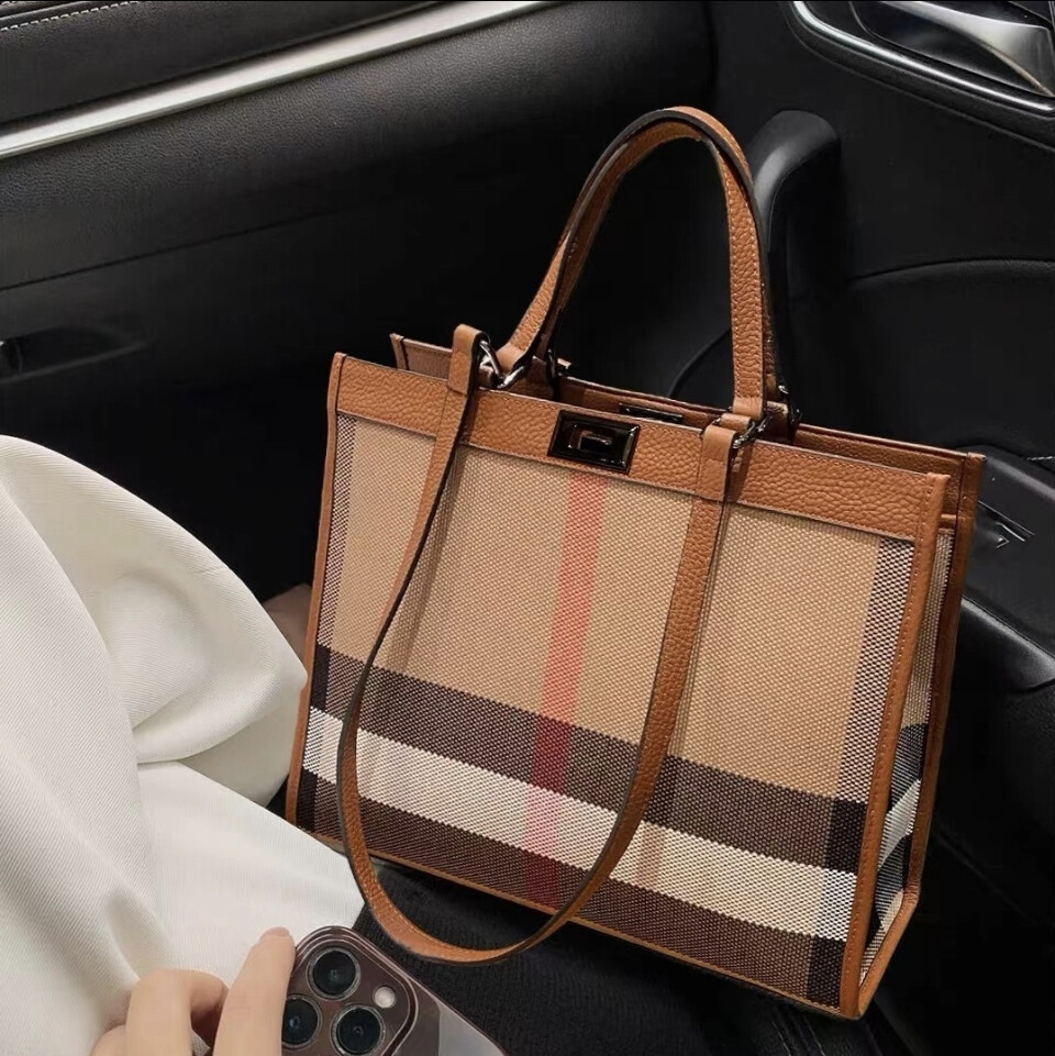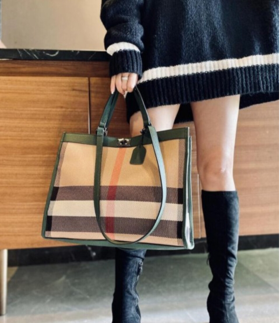 헤르만 클래식 체크 라지 토트백