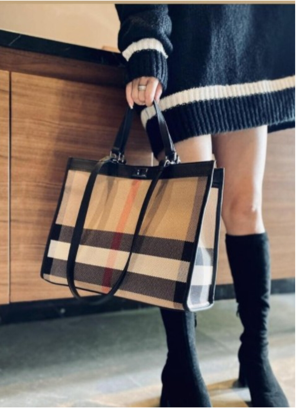 제작된 체크 토트백이에요:)