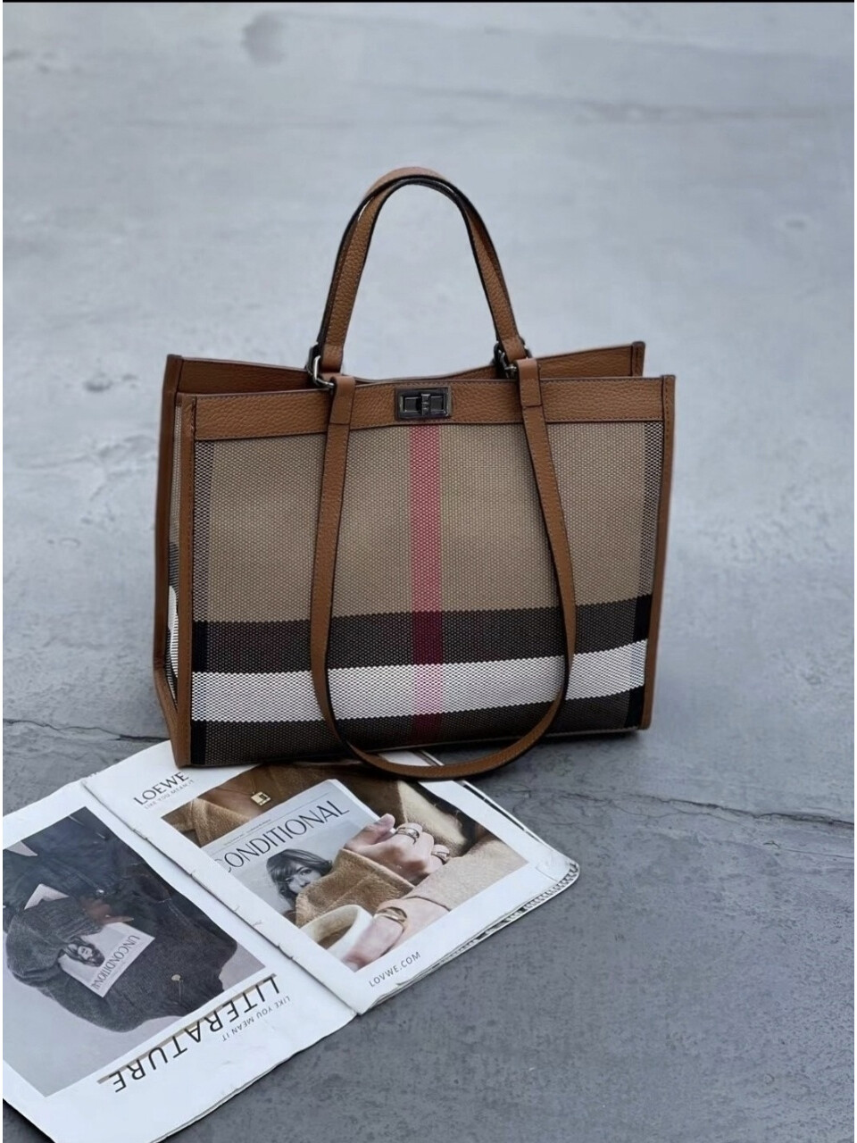 [천연가죽 기획] 헤르만 클래식 체크 라지 토트백