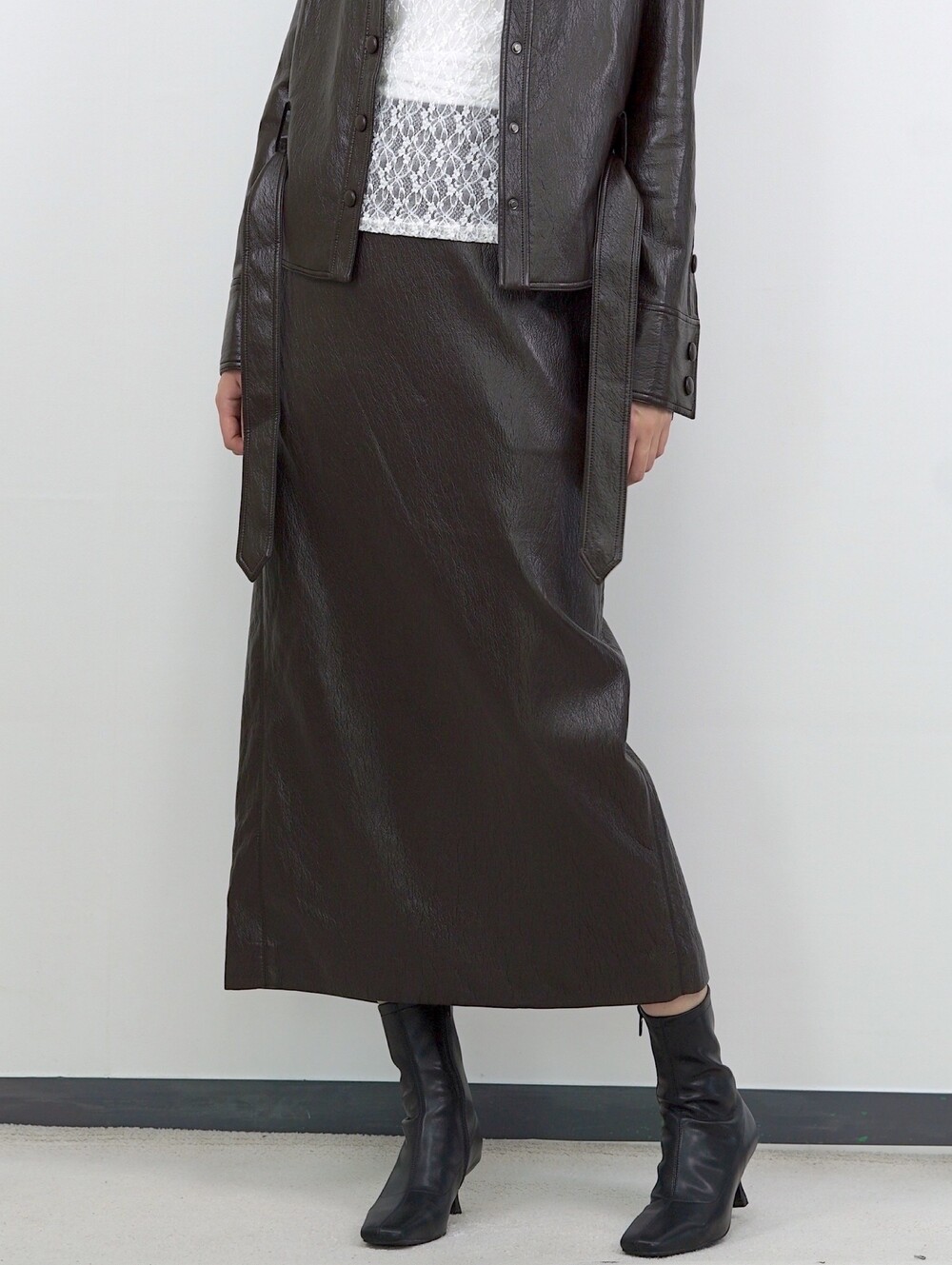 맨하튼 에코 레더 셋업 H 롱스커트