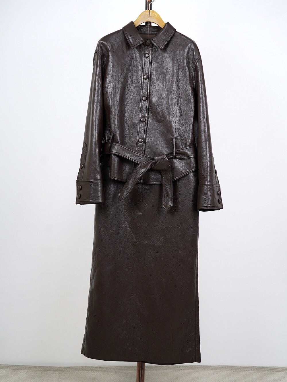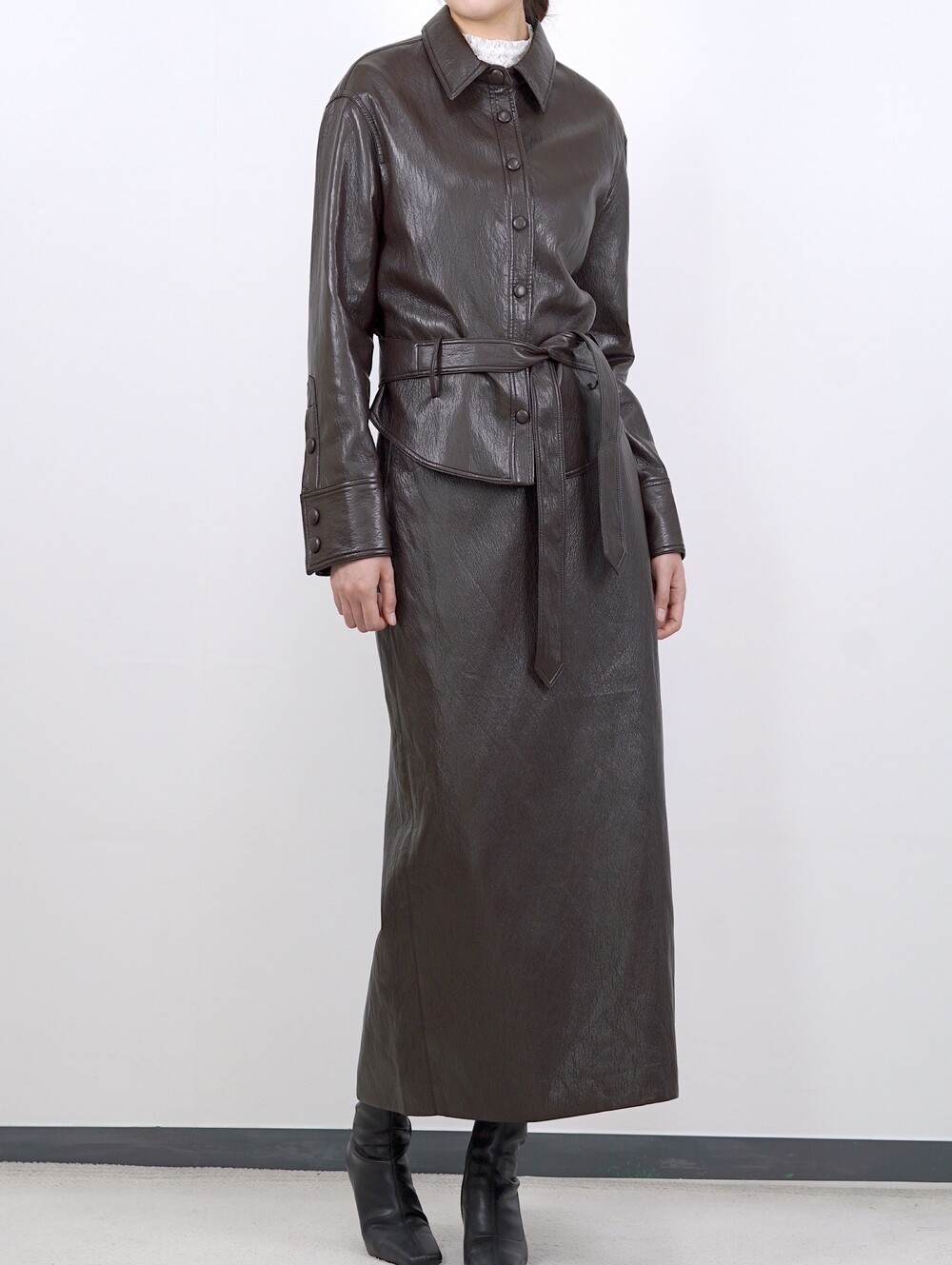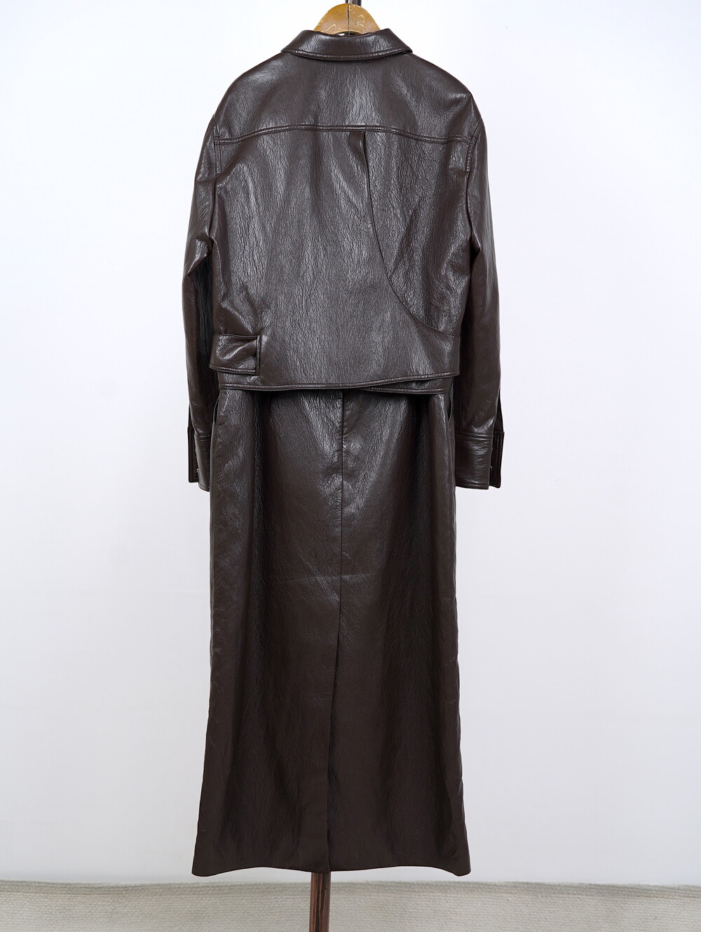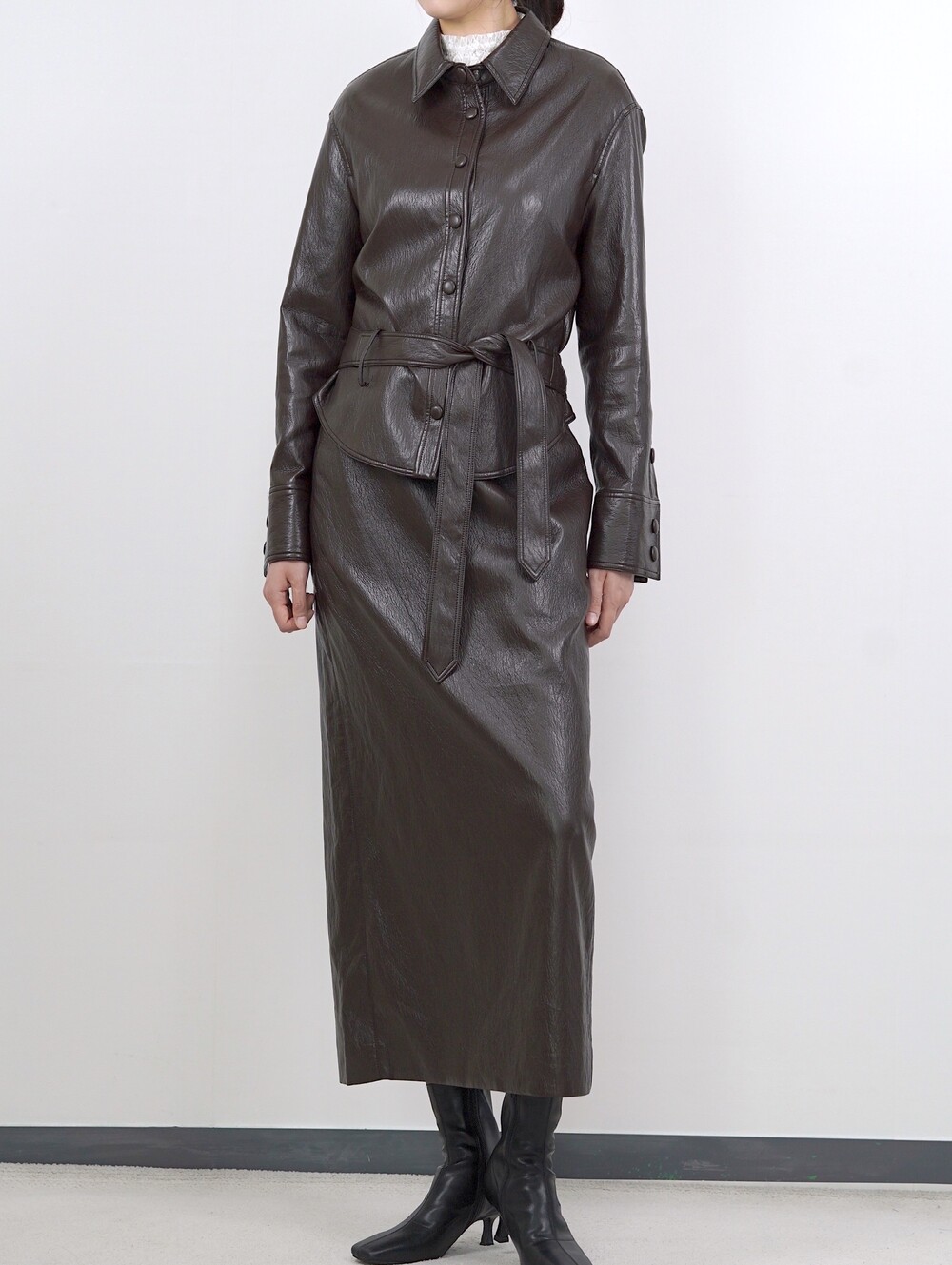 [수입 프리미엄] 맨하튼 에코 레더 셋업 H 롱스커트