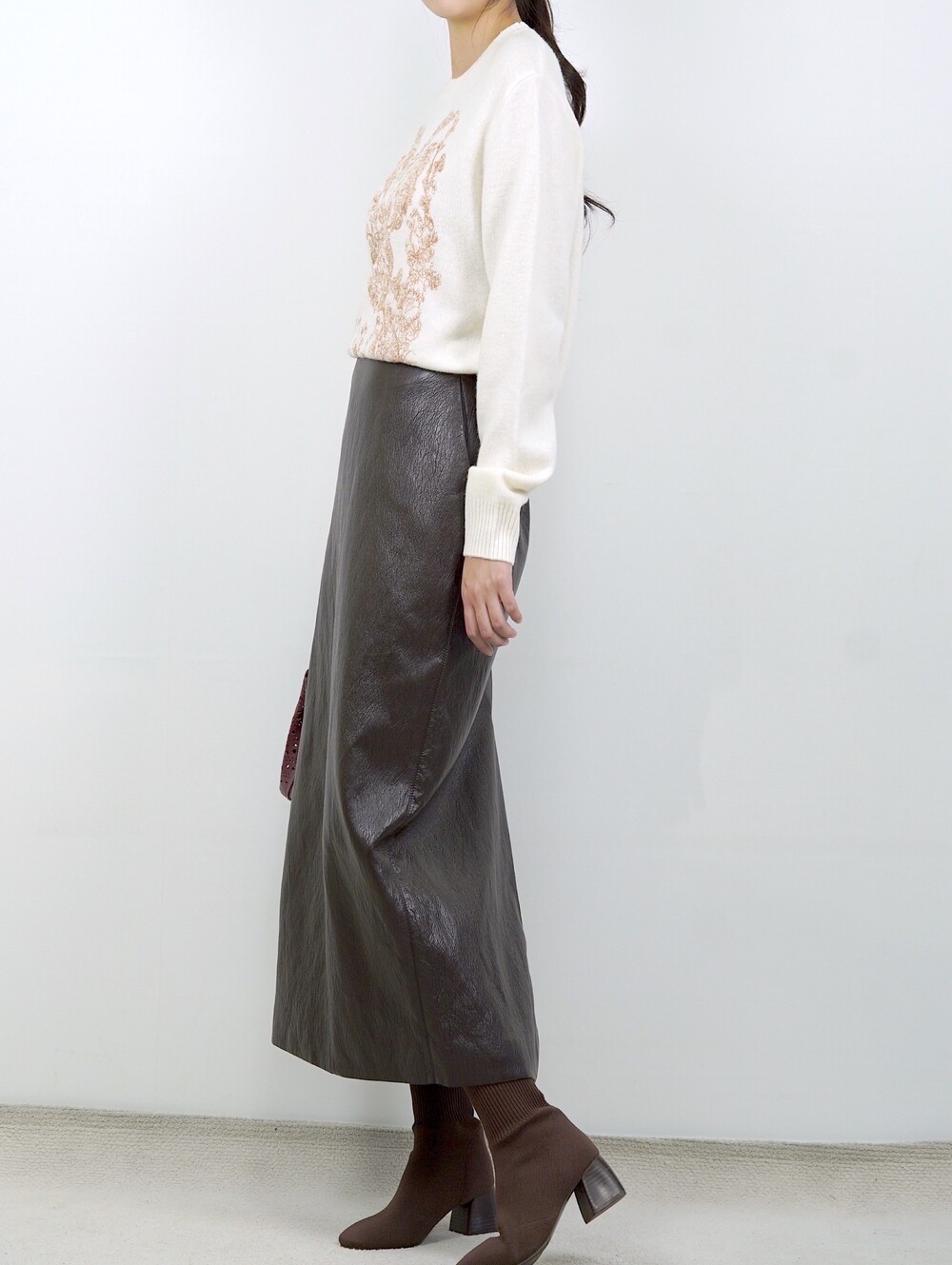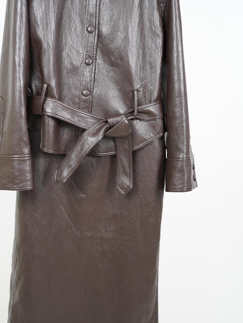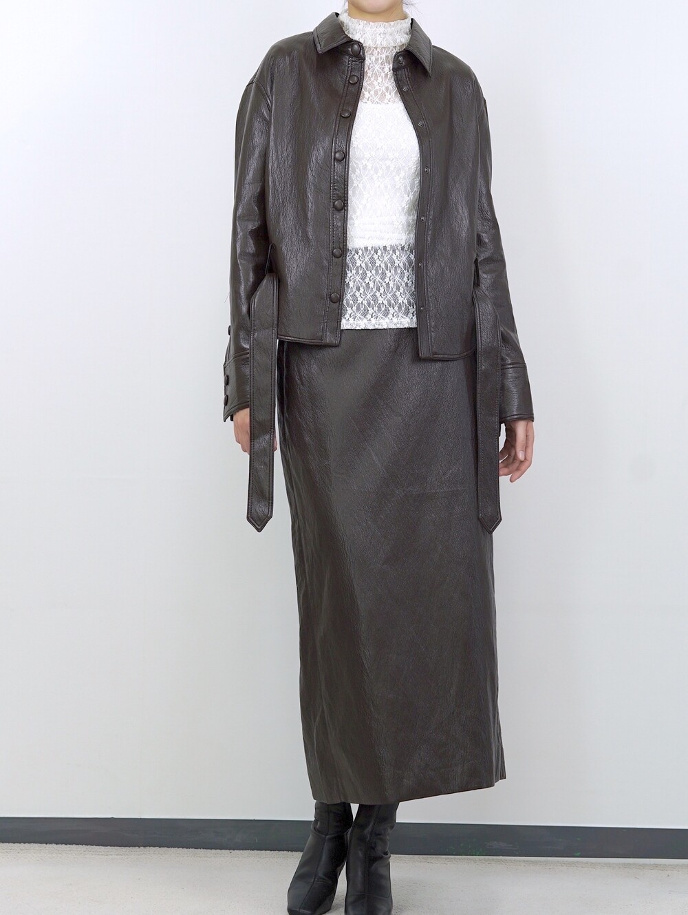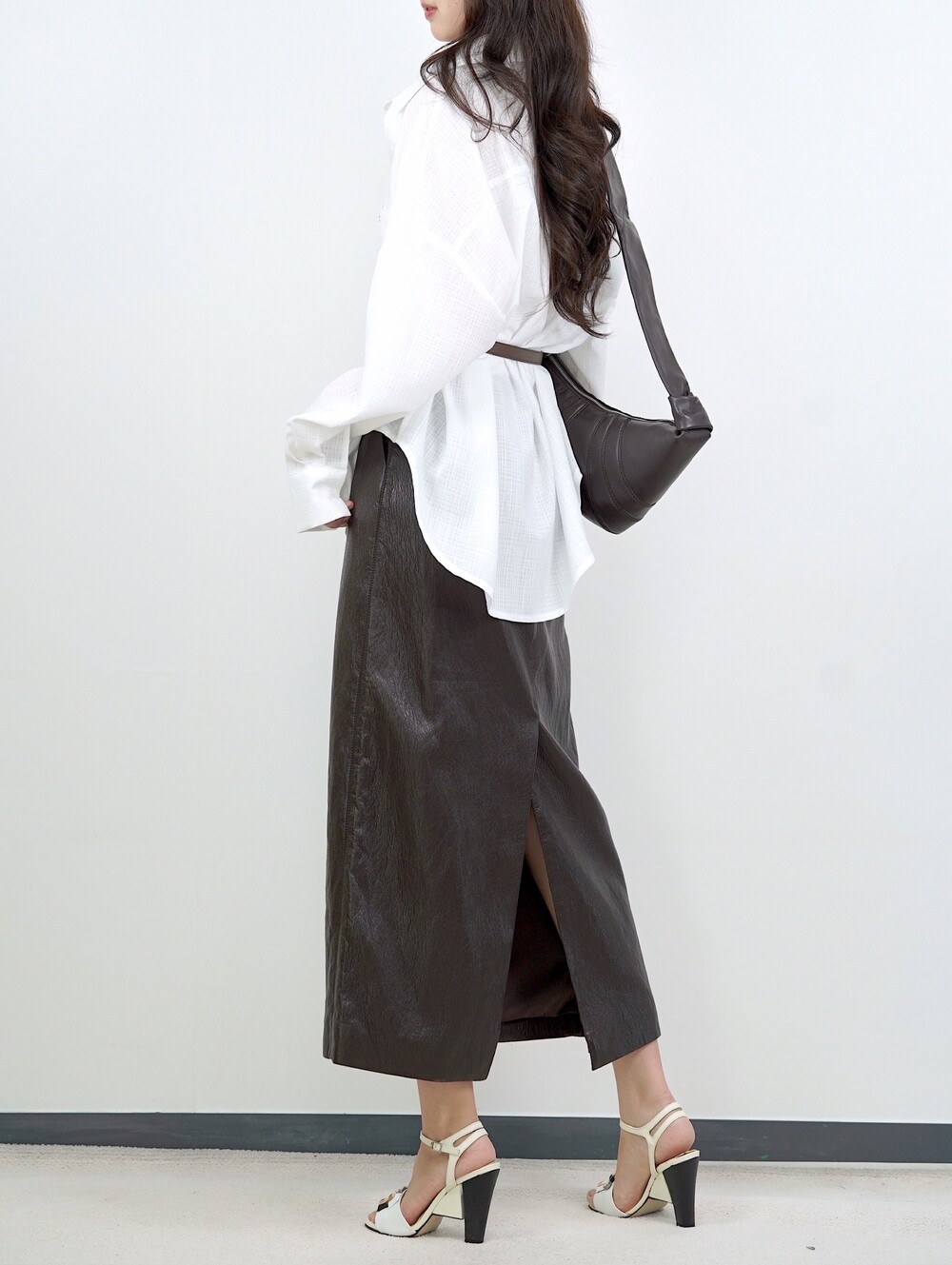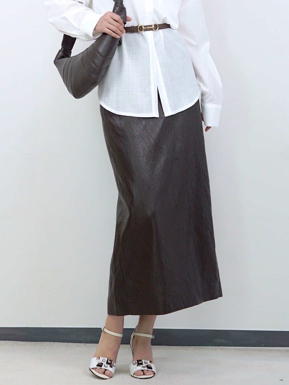 [수입 프리미엄] 맨하튼 에코 레더 셋업 H 롱스커트