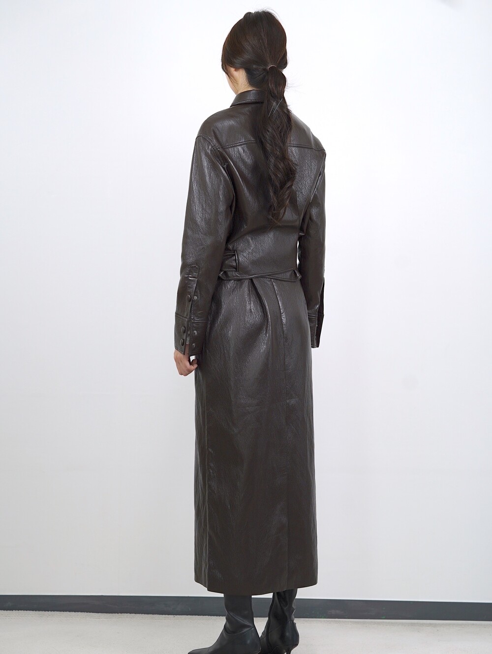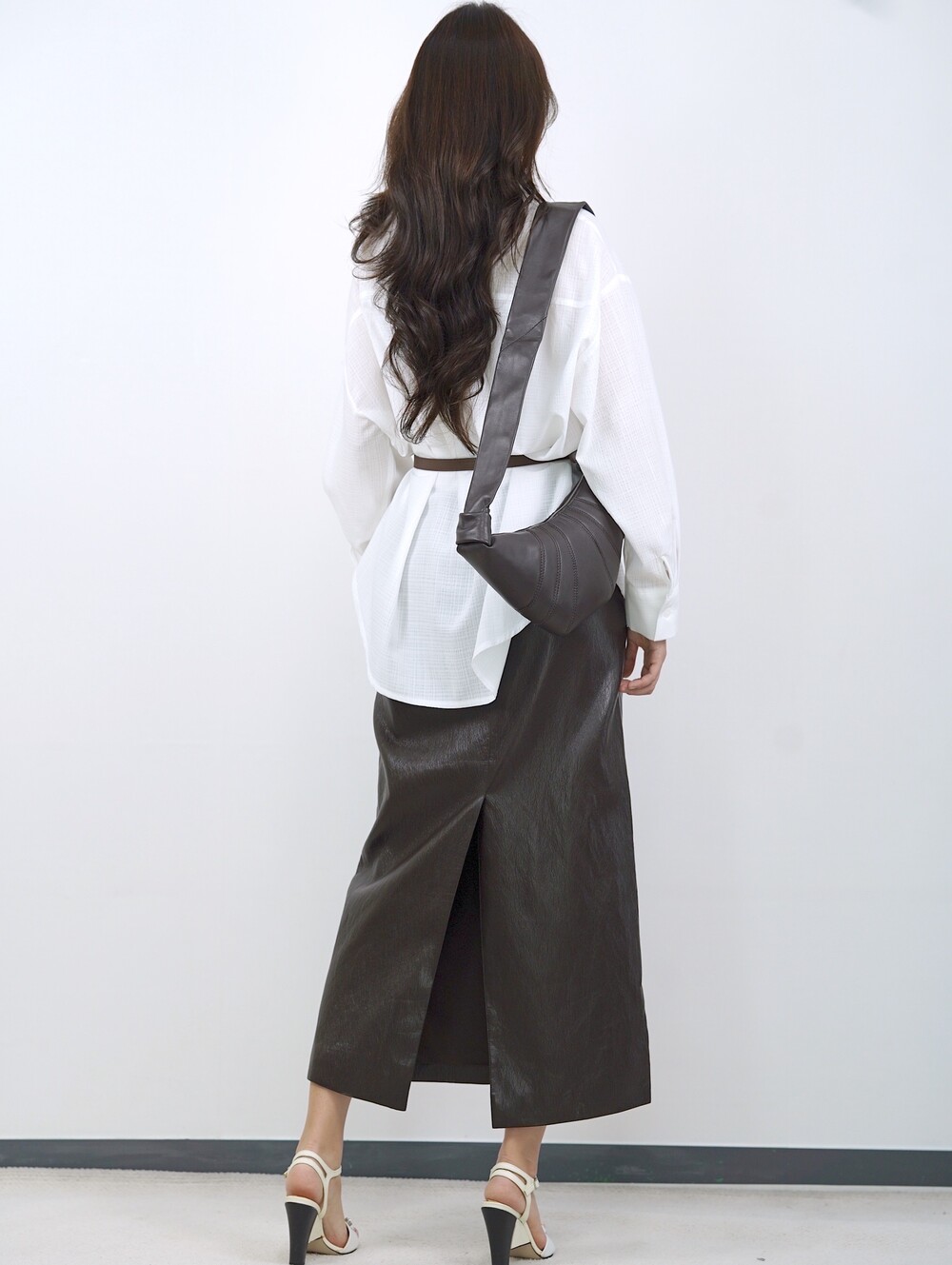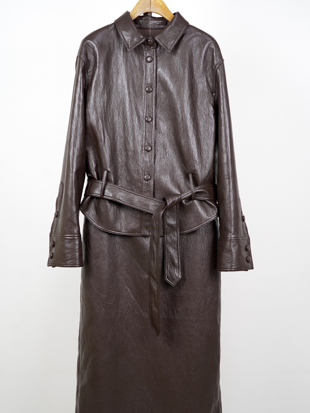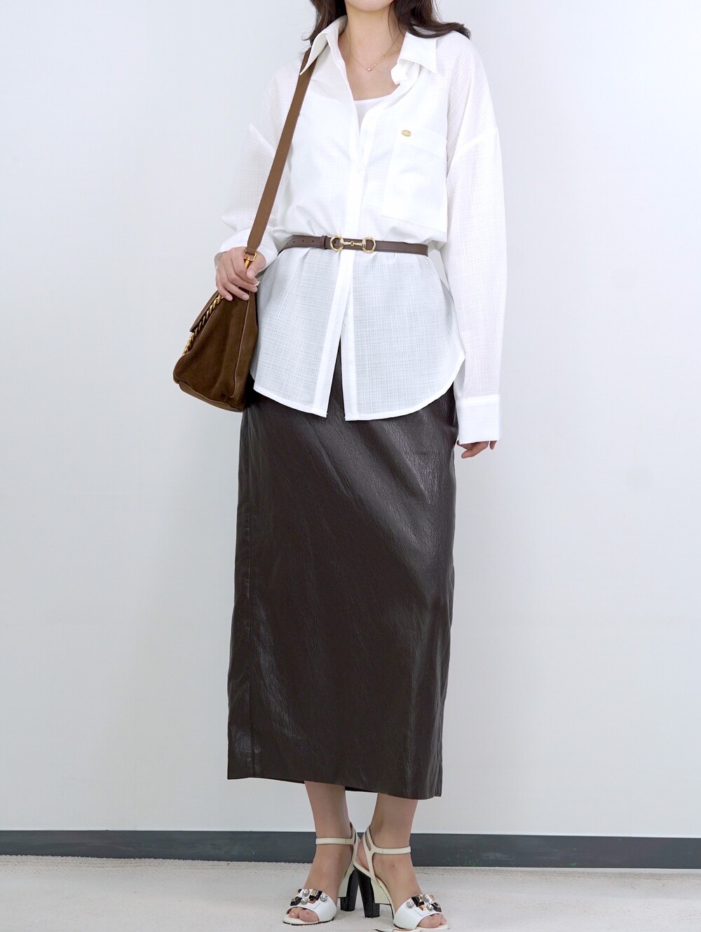 [수입 프리미엄] 맨하튼 에코 레더 셋업 H 롱스커트