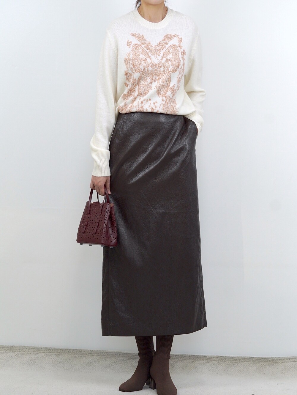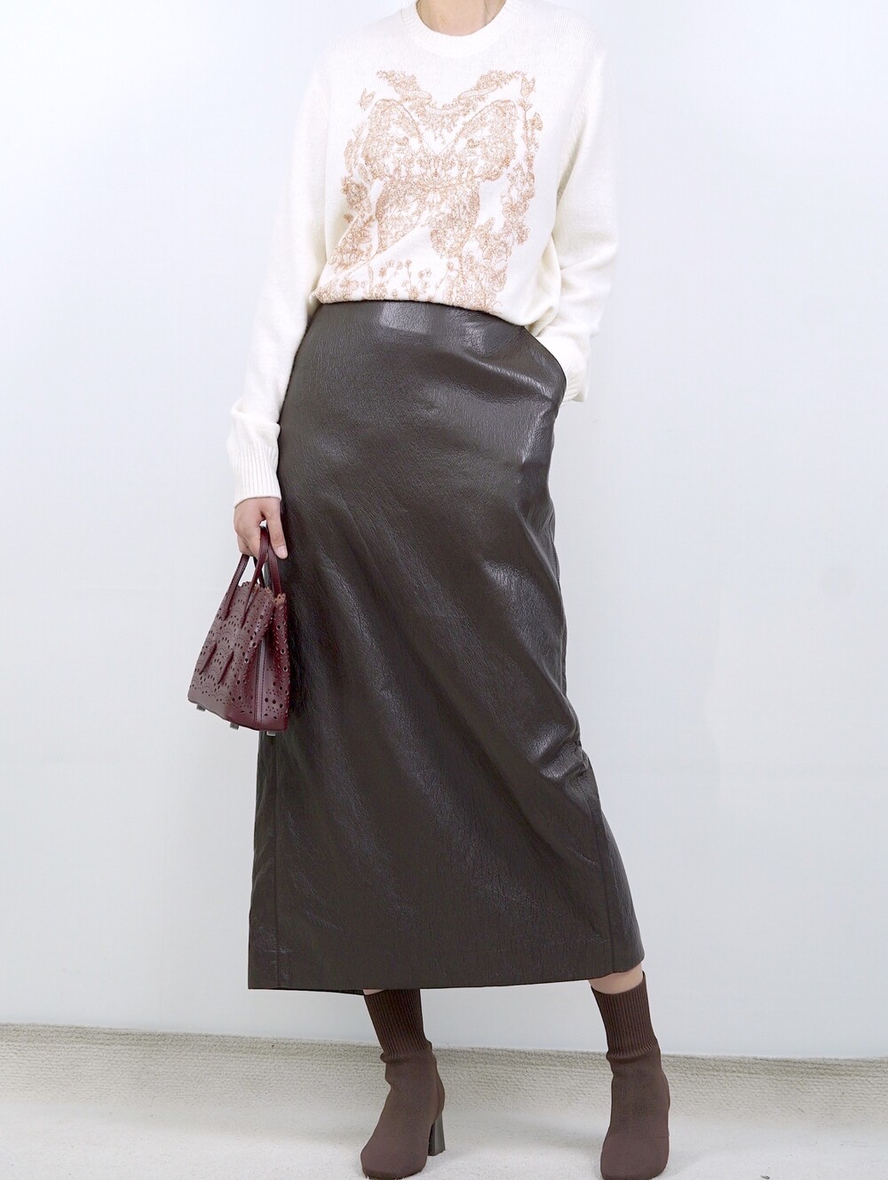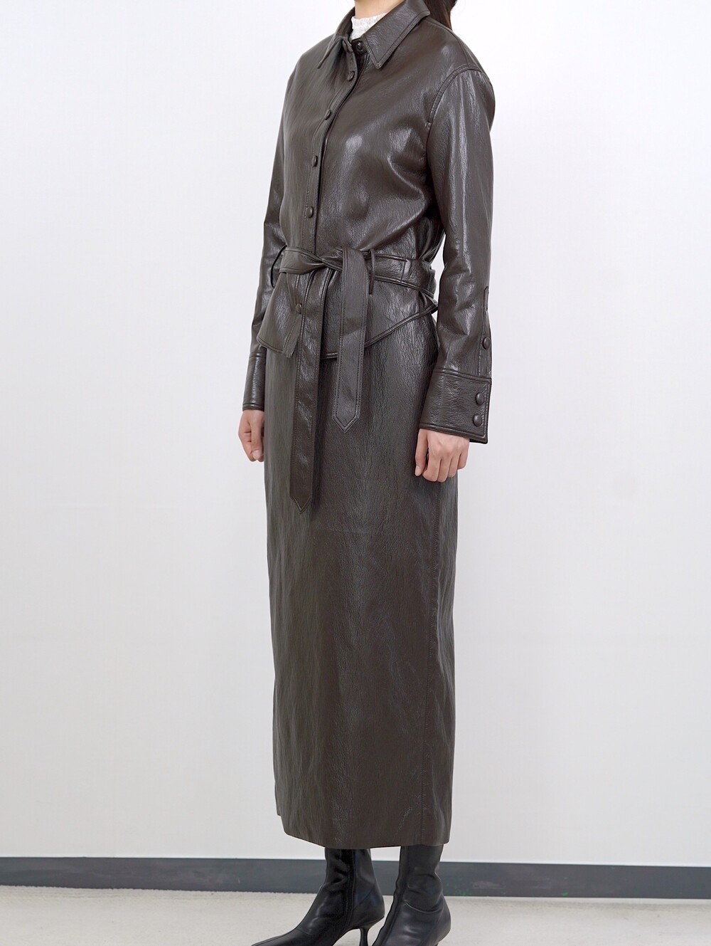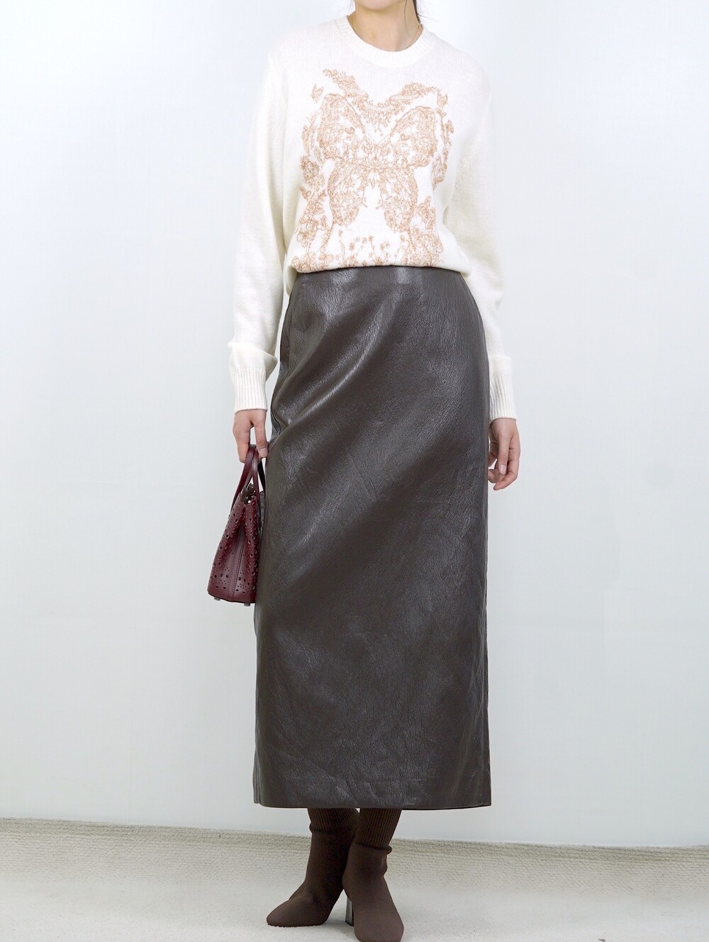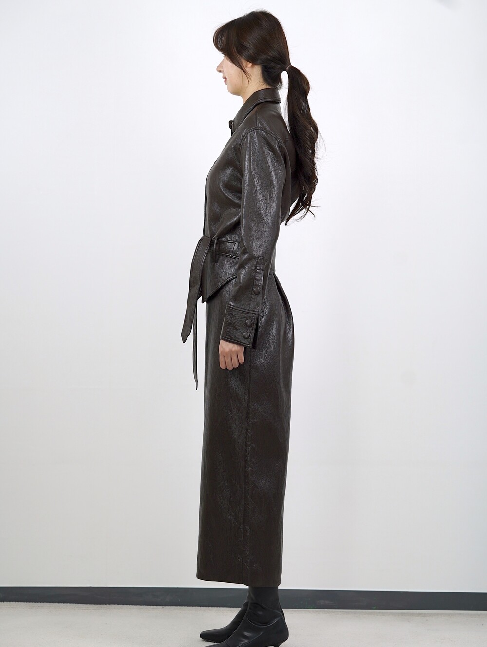 [수입 프리미엄] 맨하튼 에코 레더 셋업 H 롱스커트