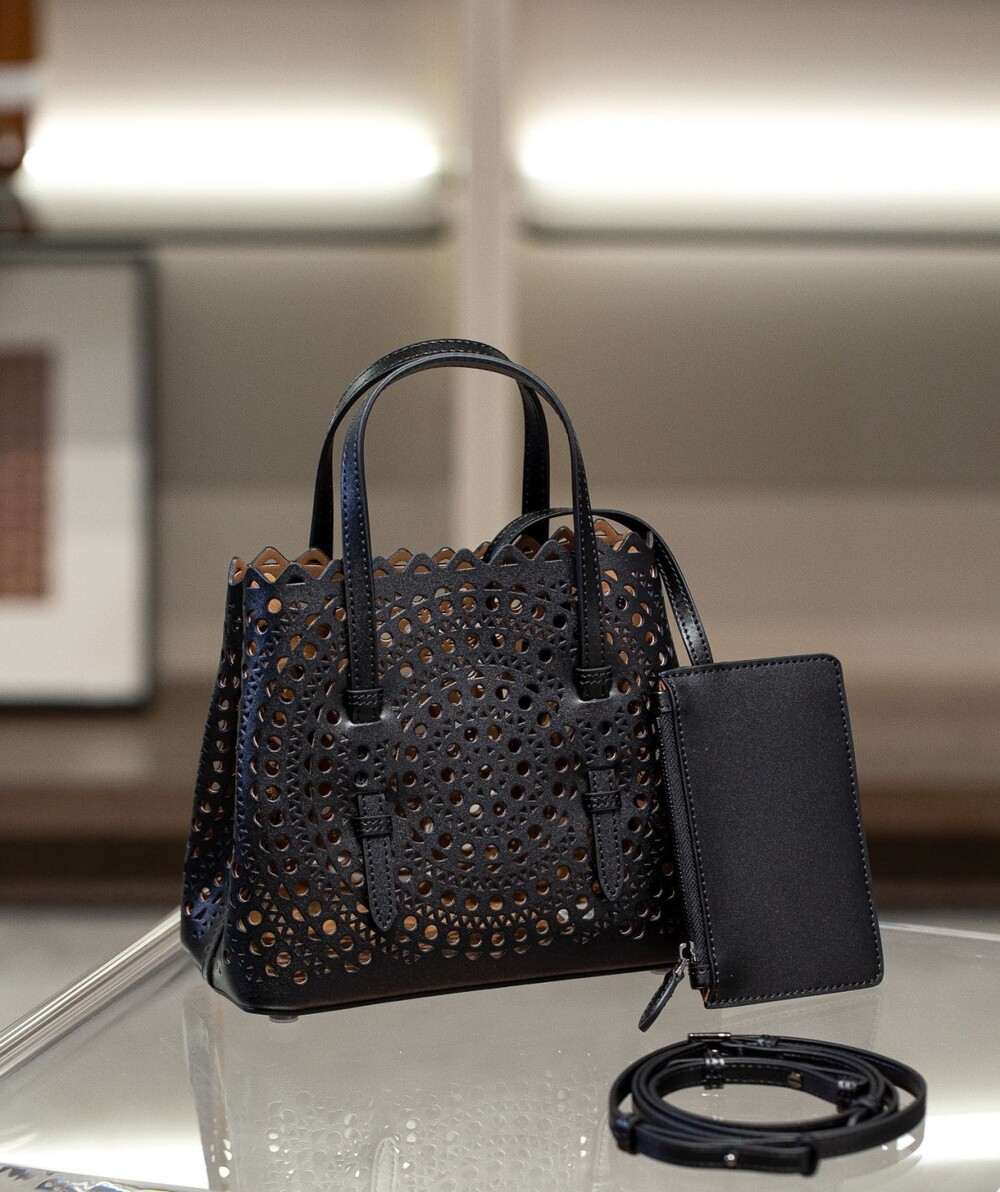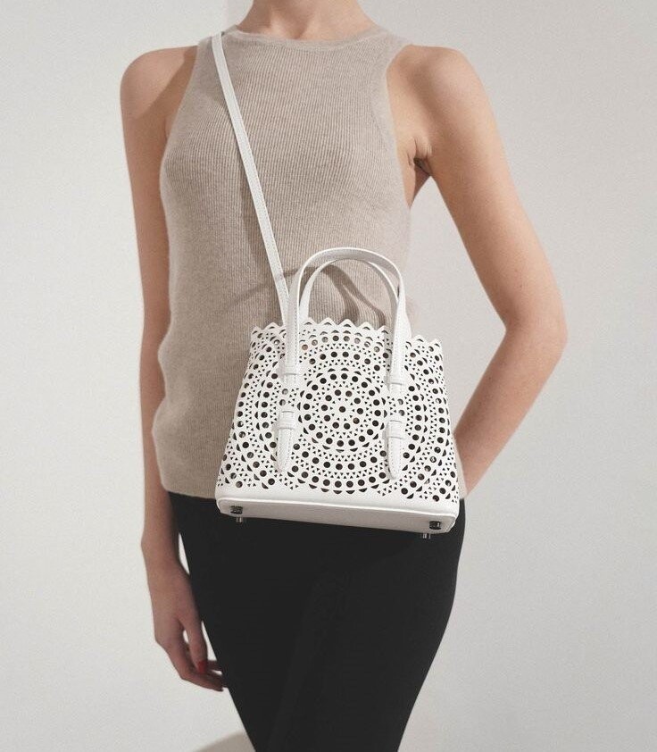 [천연가죽 기획] 프렌치 레이저 펀칭 써클 미니 토트백