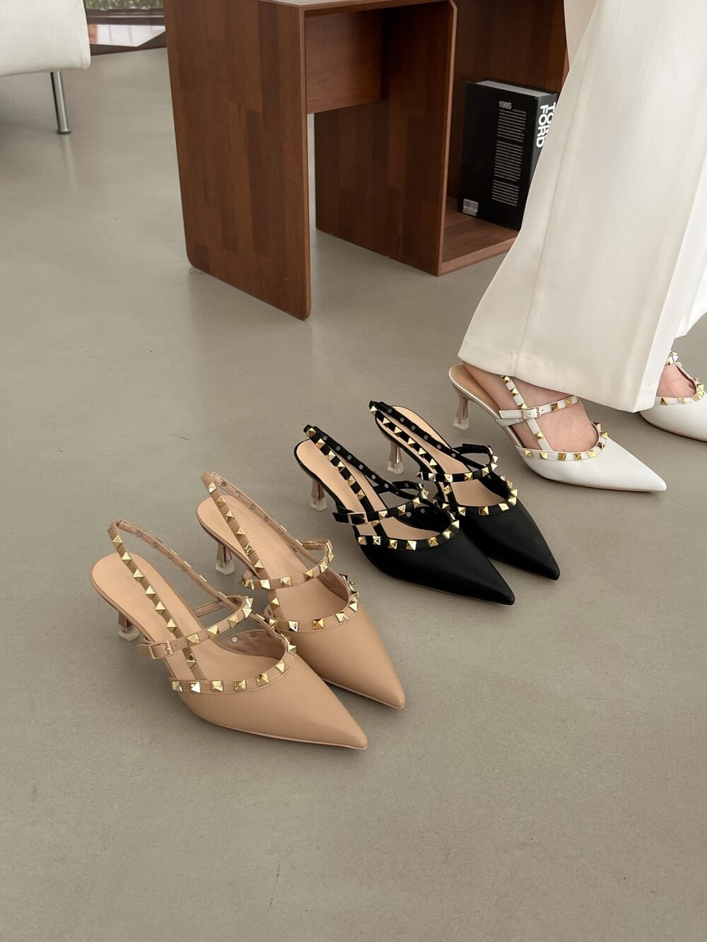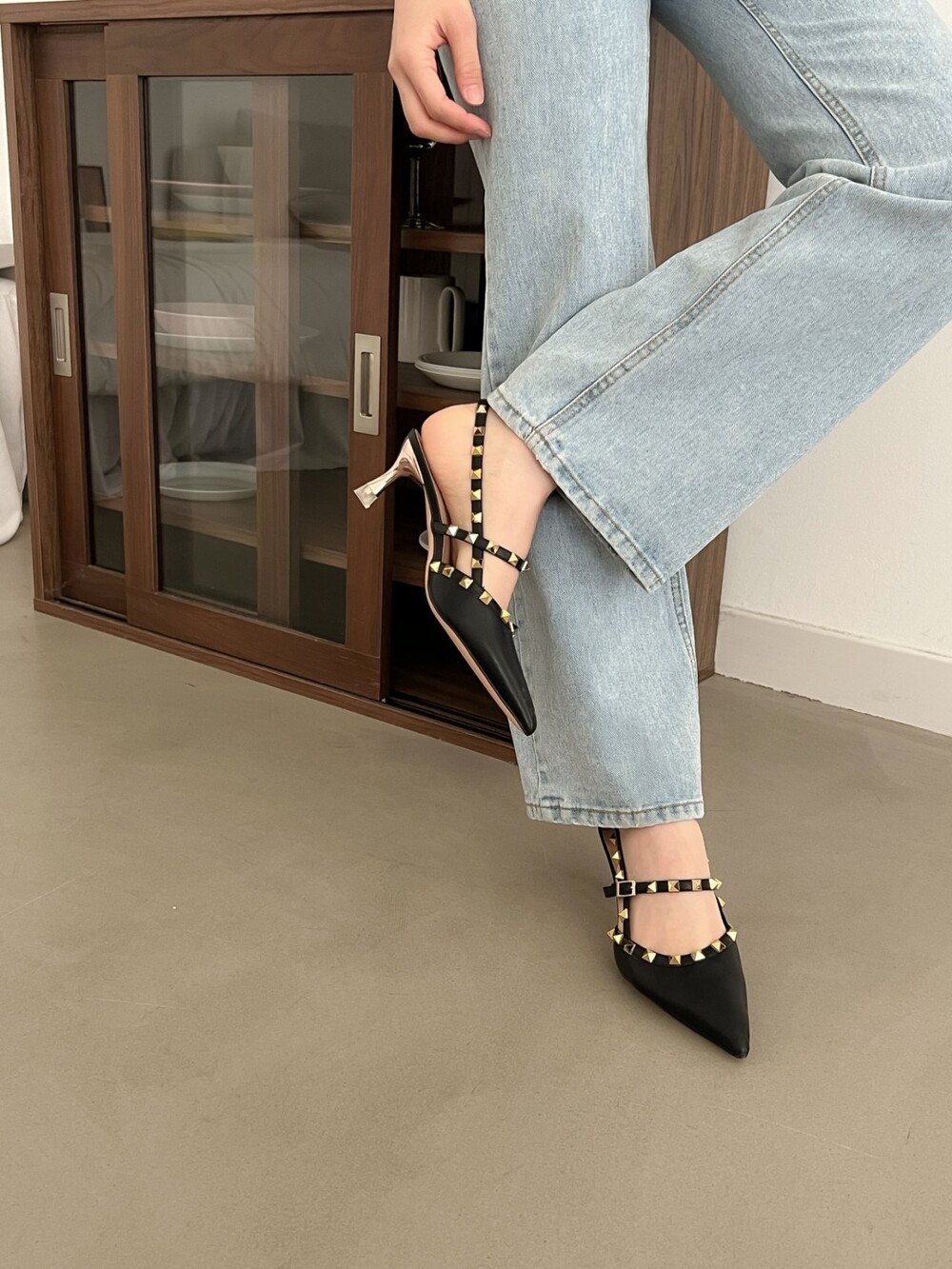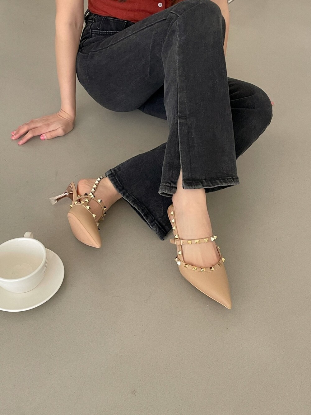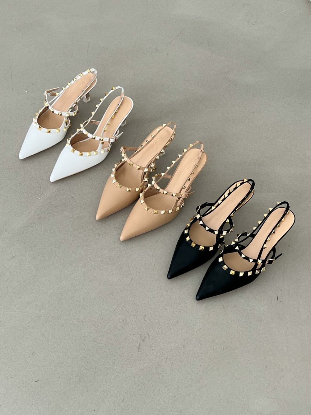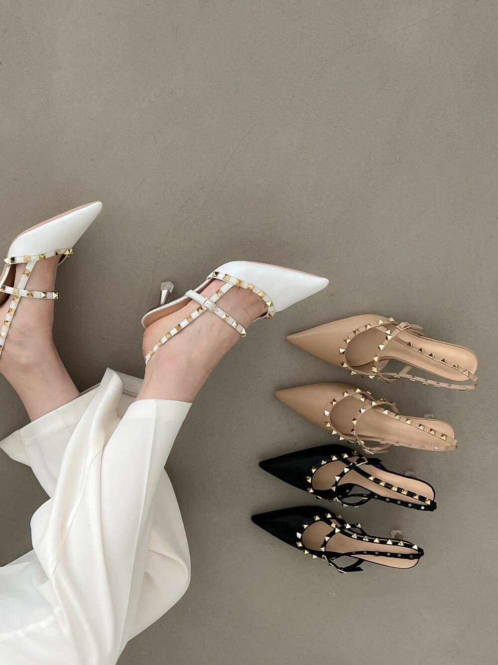 [기획 천연 가죽] 로만 스터드 스트랩 슬링백