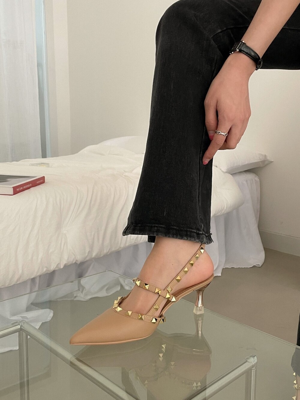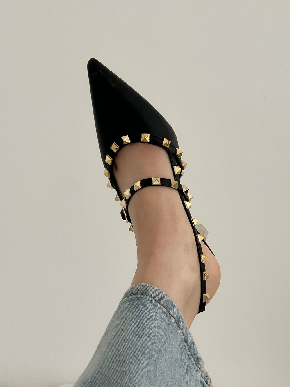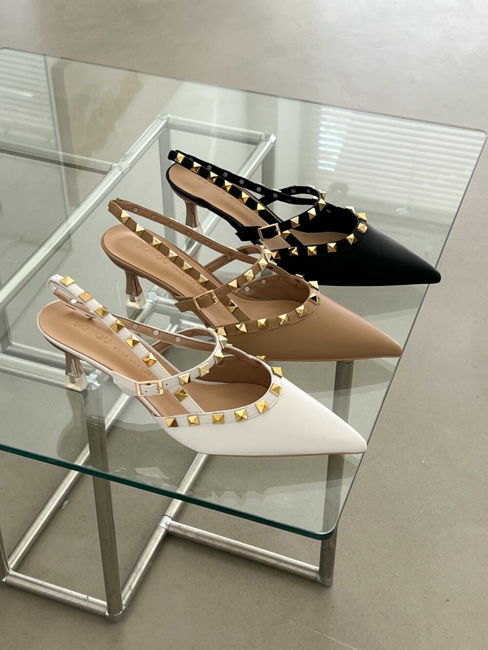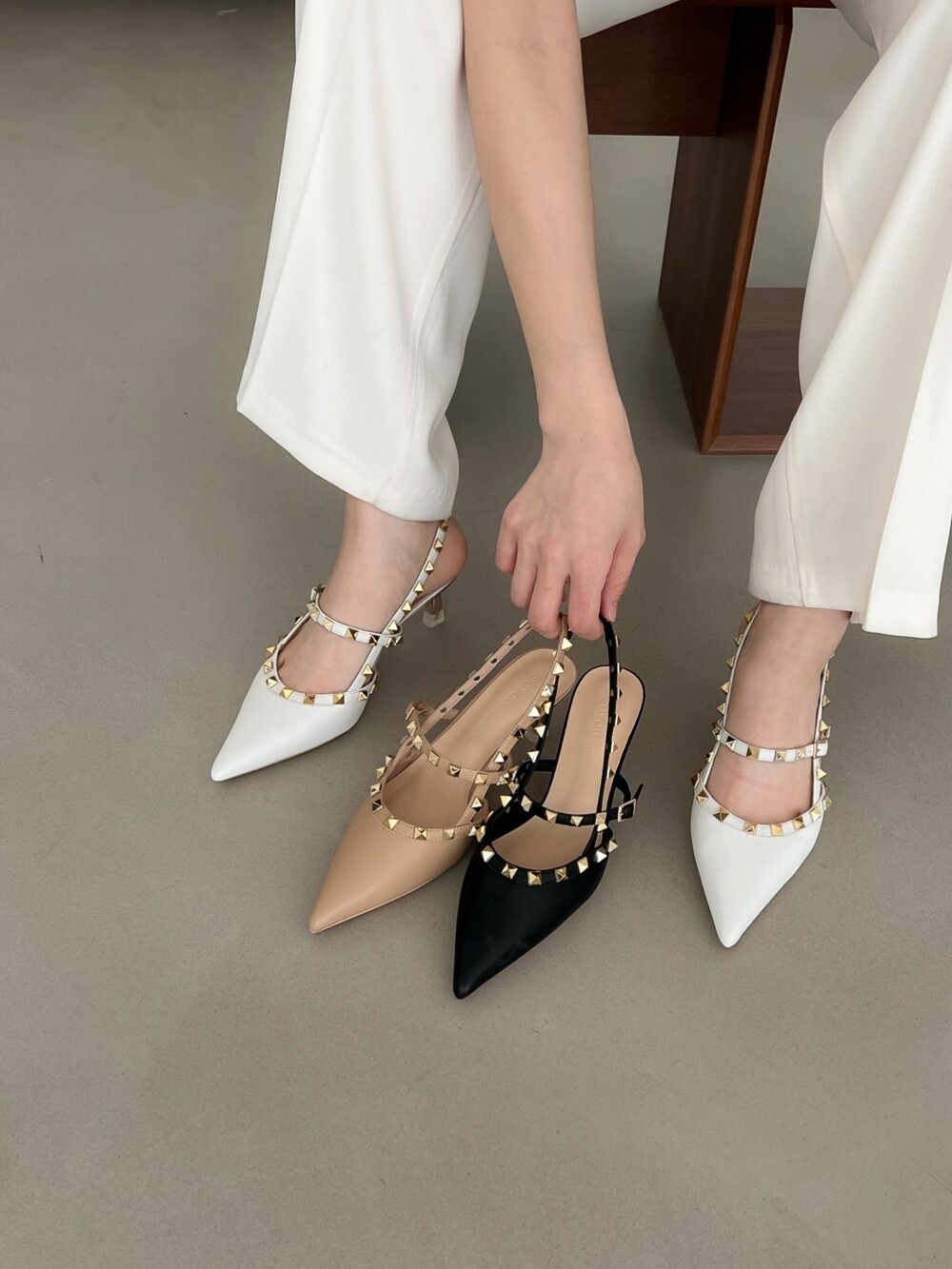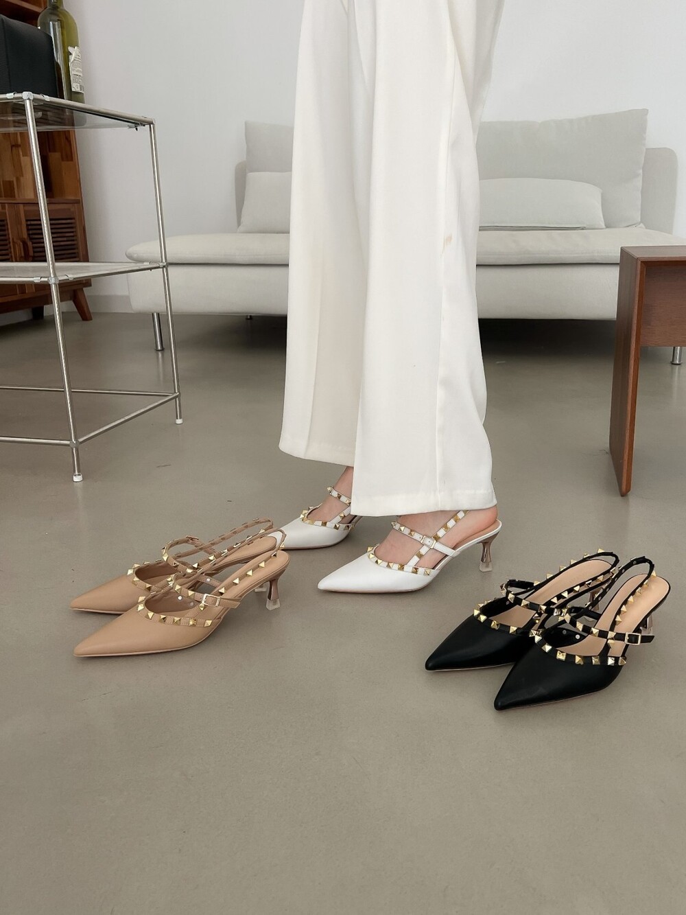 [기획 천연 가죽] 로만 스터드 스트랩 슬링백