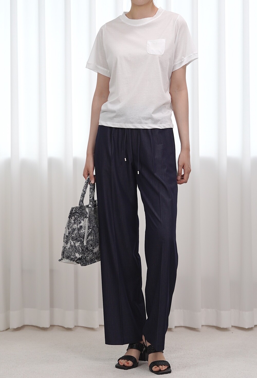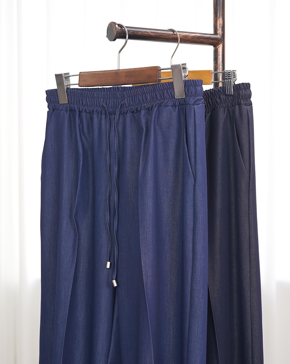 텐셀 혼방 데님 소재의 와이드 팬츠