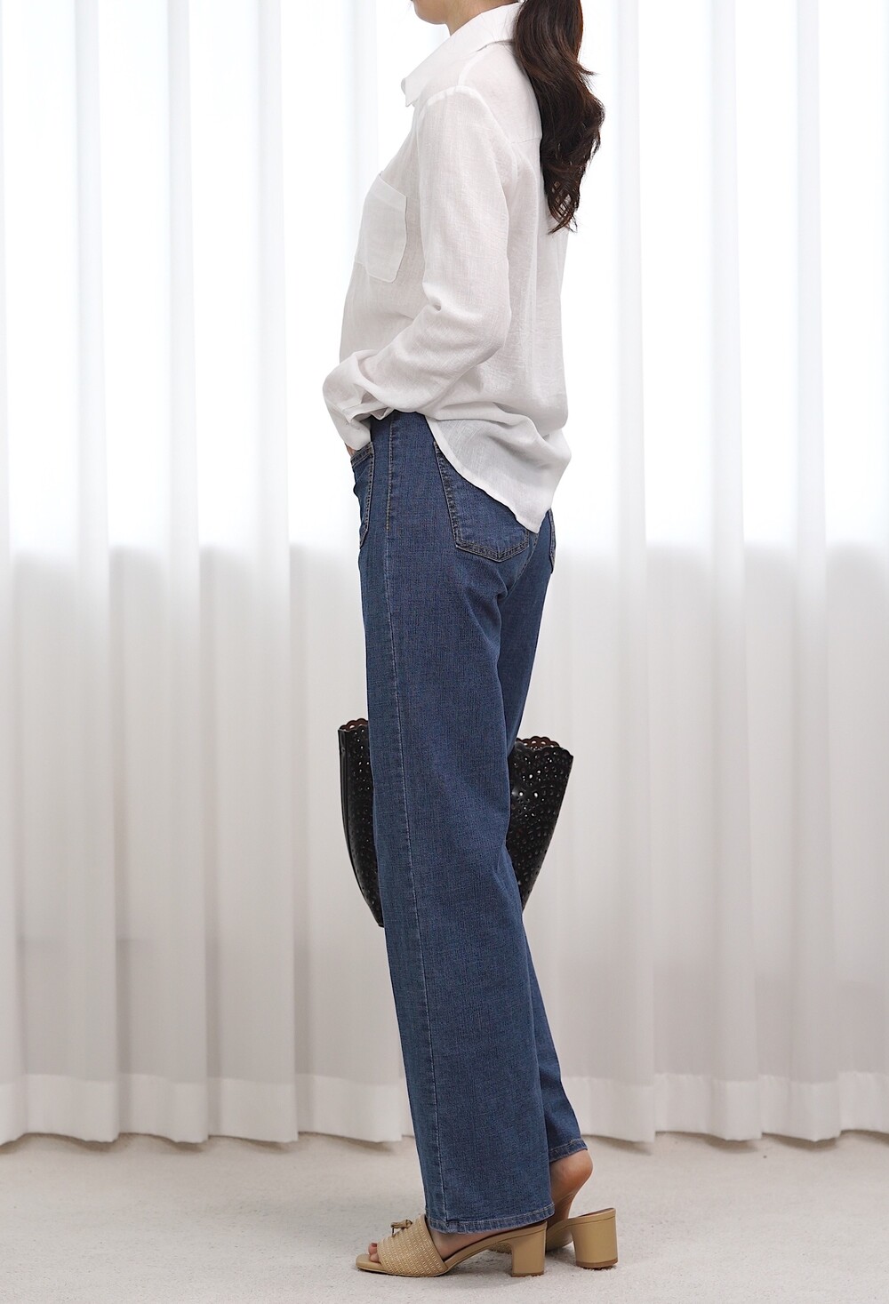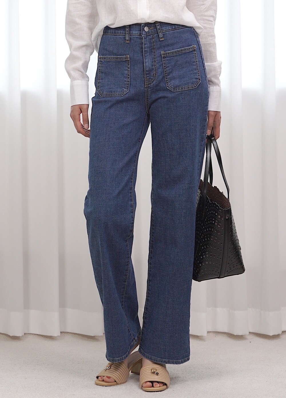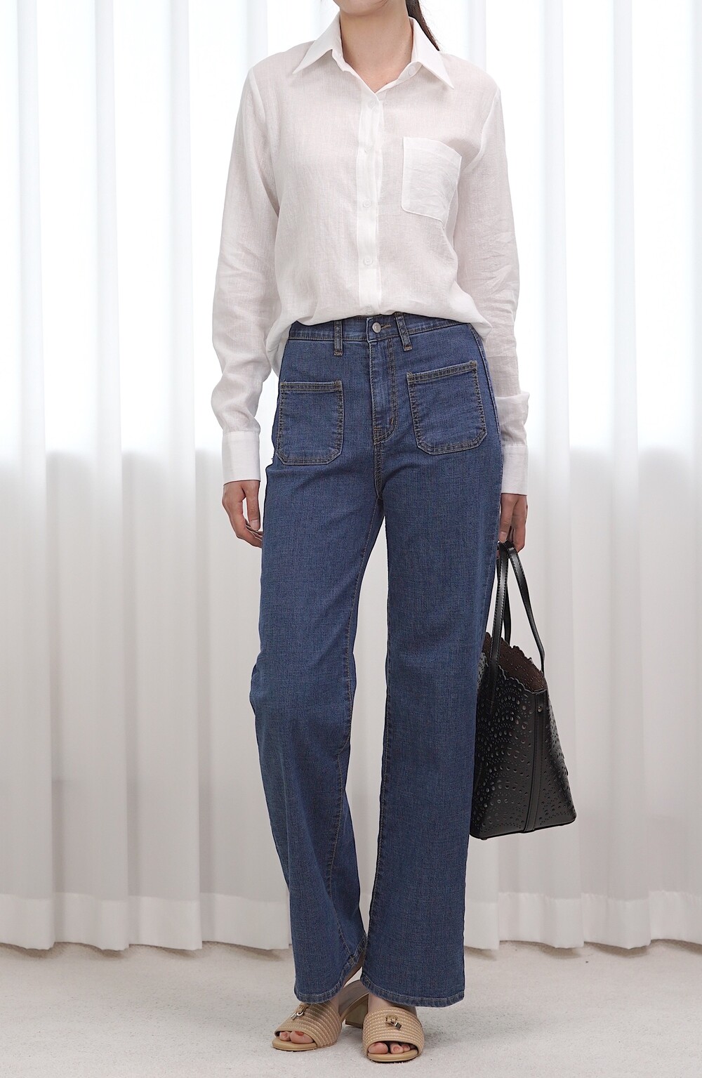 와이드 데님진으로 멋진 스타일을 연출하세요.