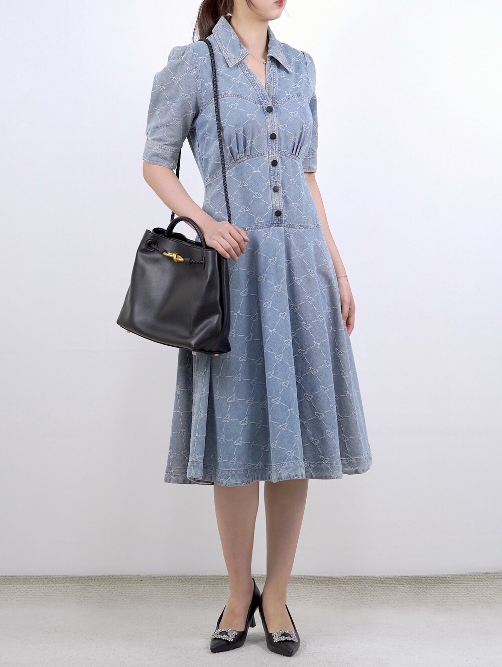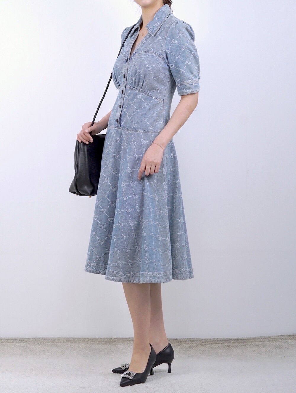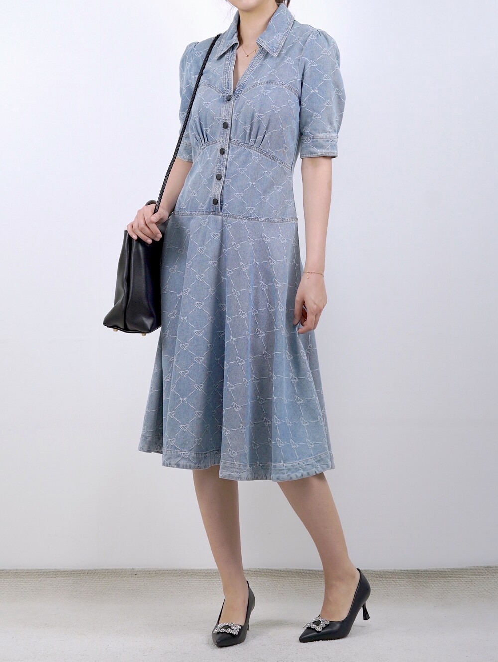 마르세유 하트 데님 원피스