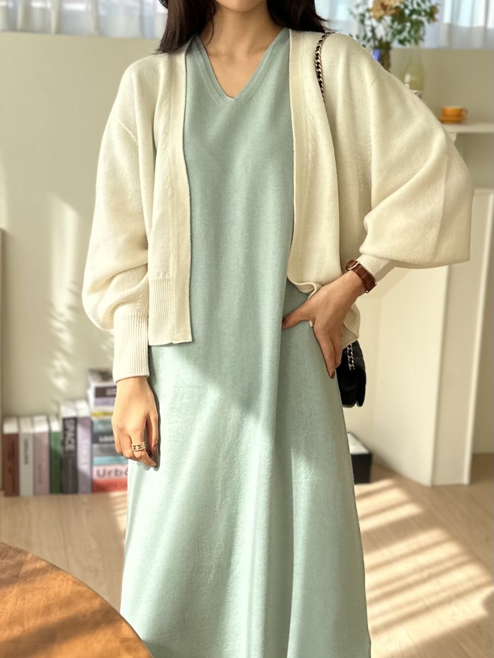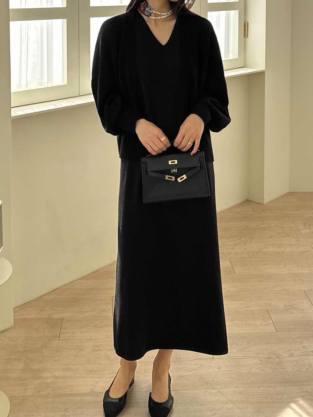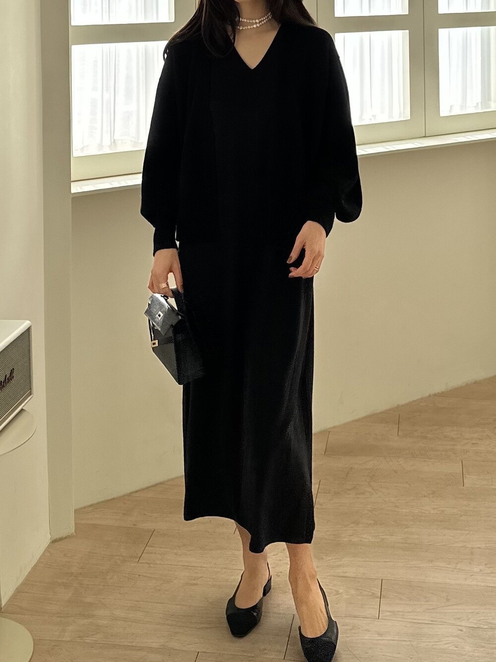 [프리미엄] 버밍엄 브이넥 홀가먼트 니트 드레스