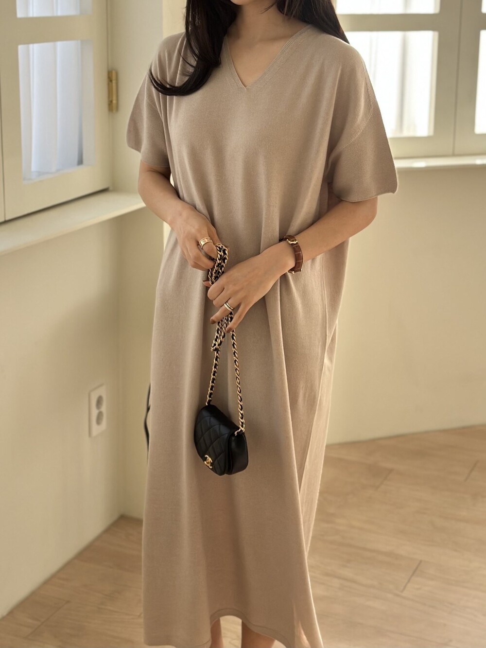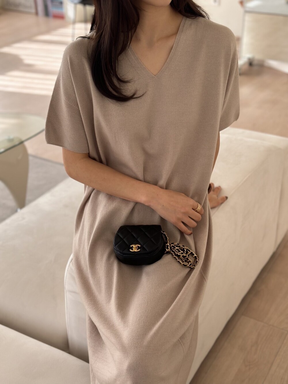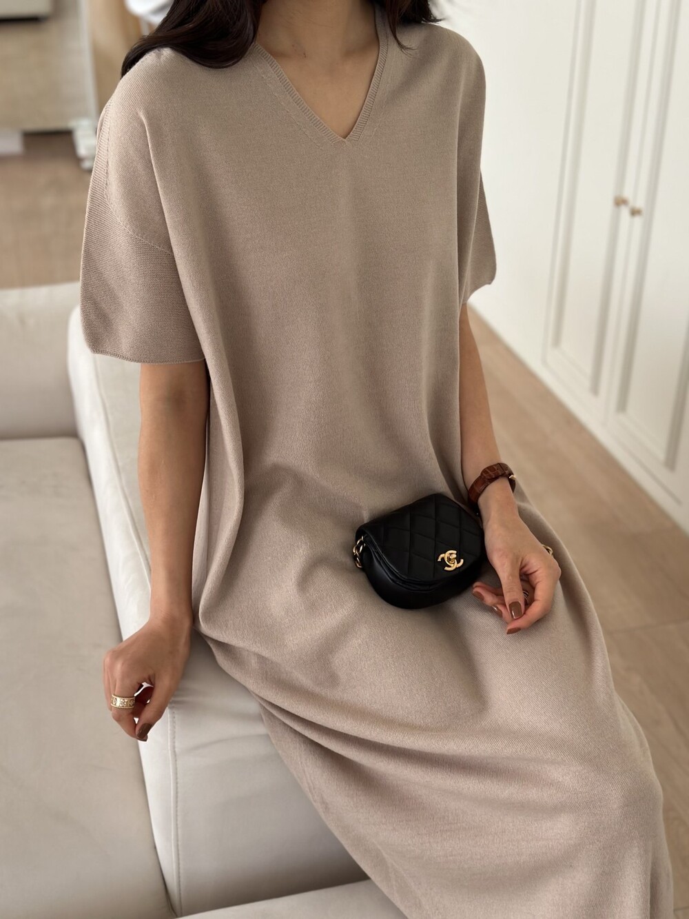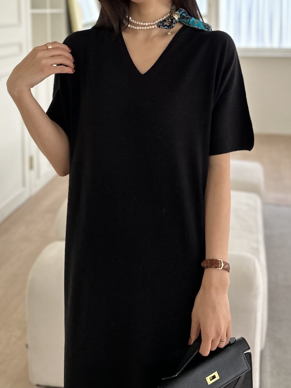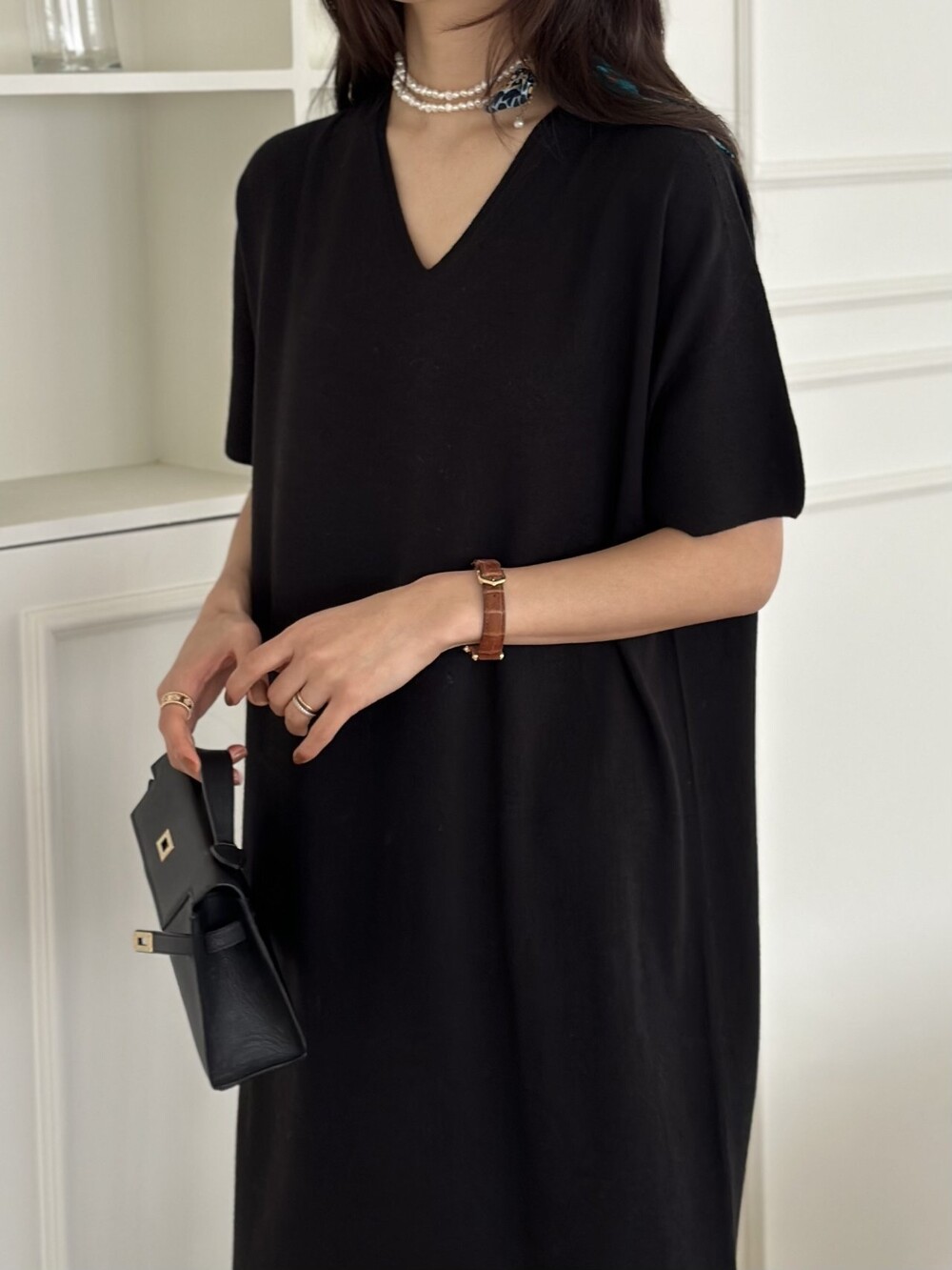 버밍엄 브이넥 홀가먼트 니트 드레스