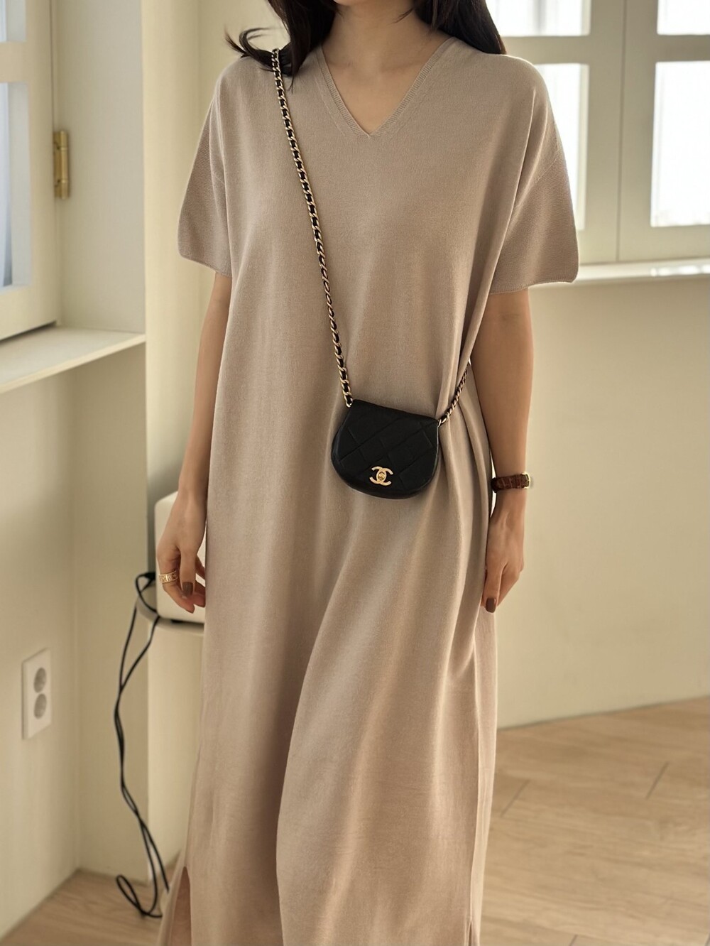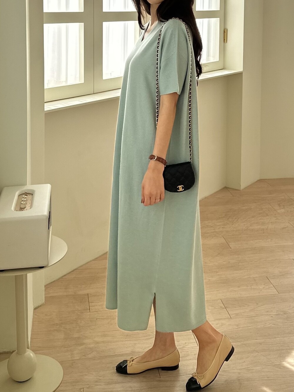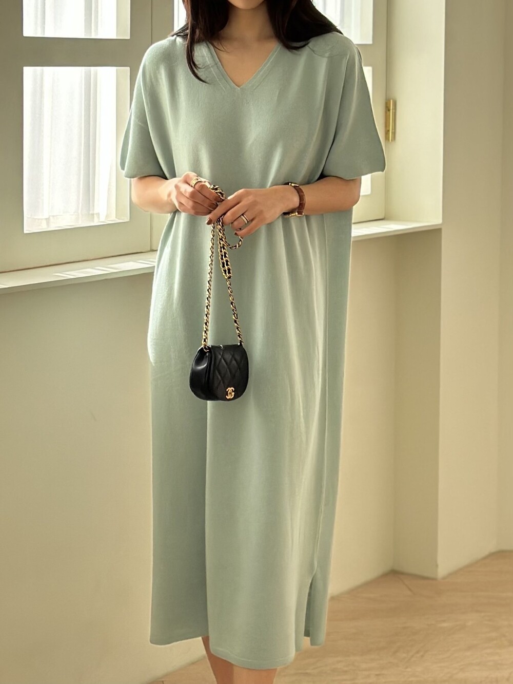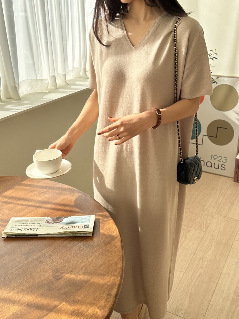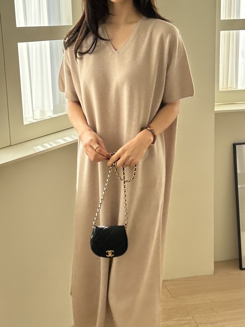 버밍엄 브이넥 홀가먼트 니트 드레스