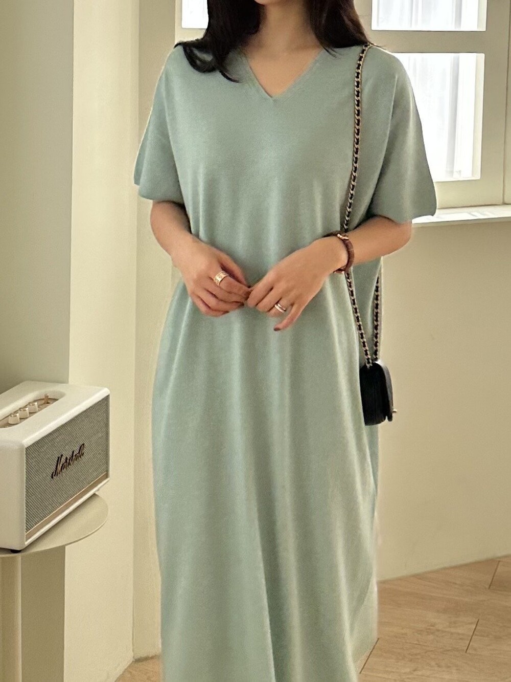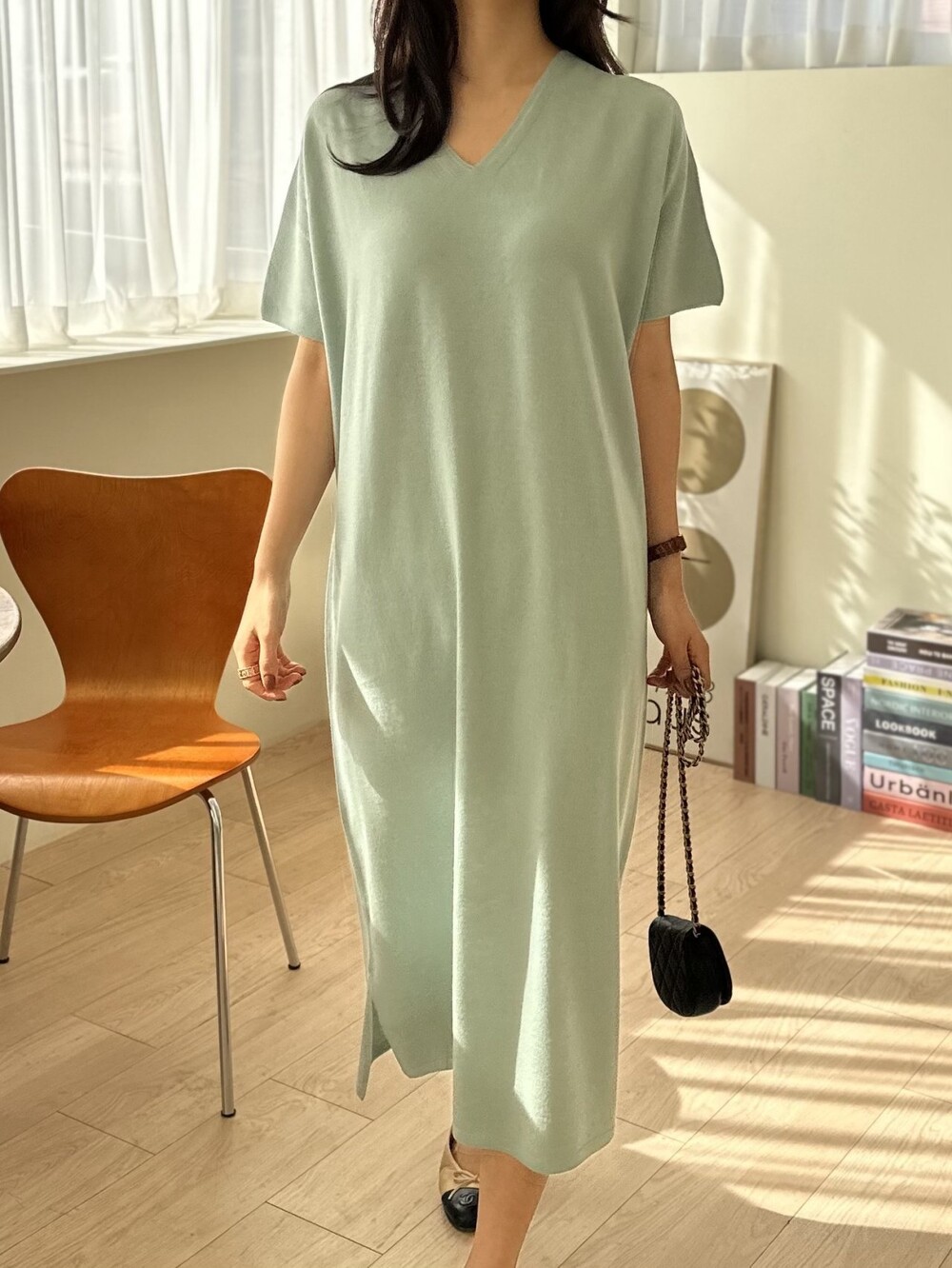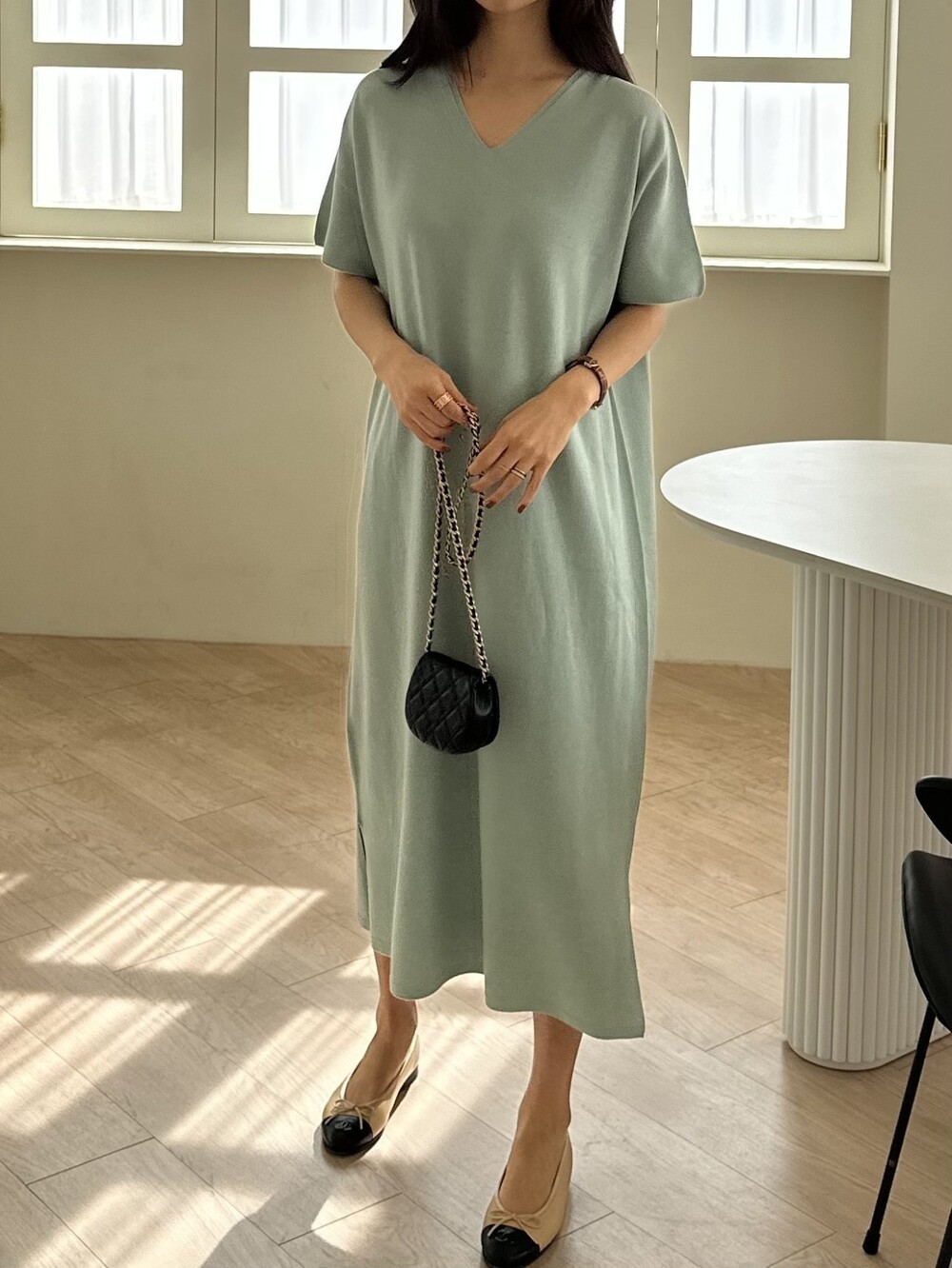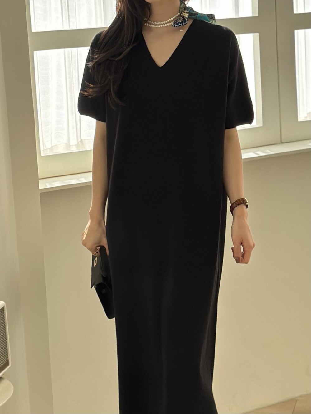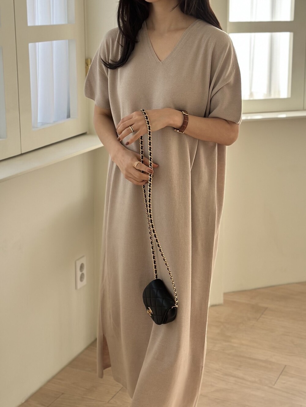 버밍엄 브이넥 홀가먼트 니트 드레스