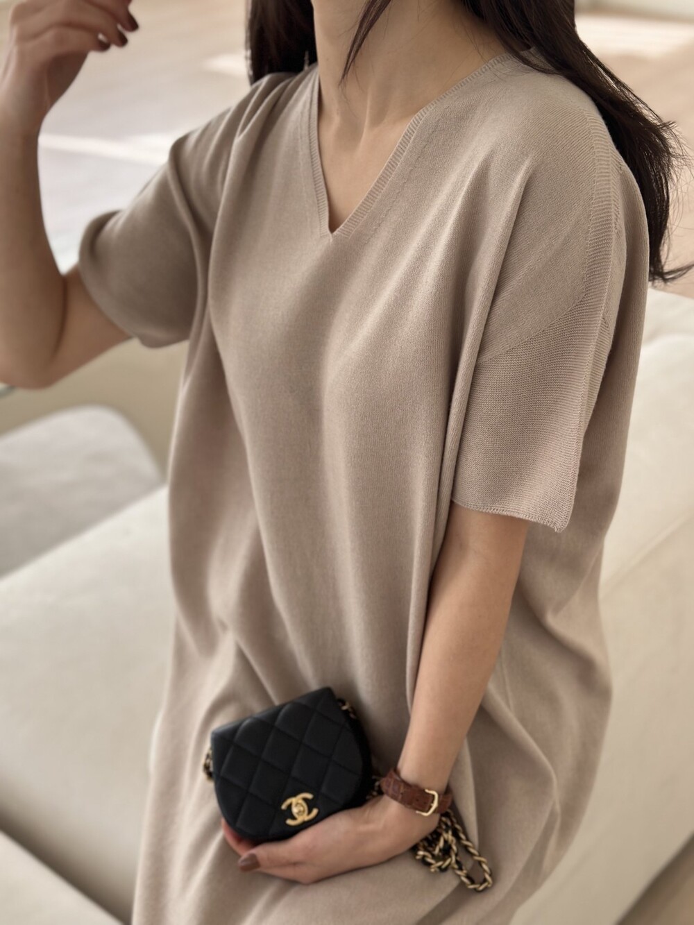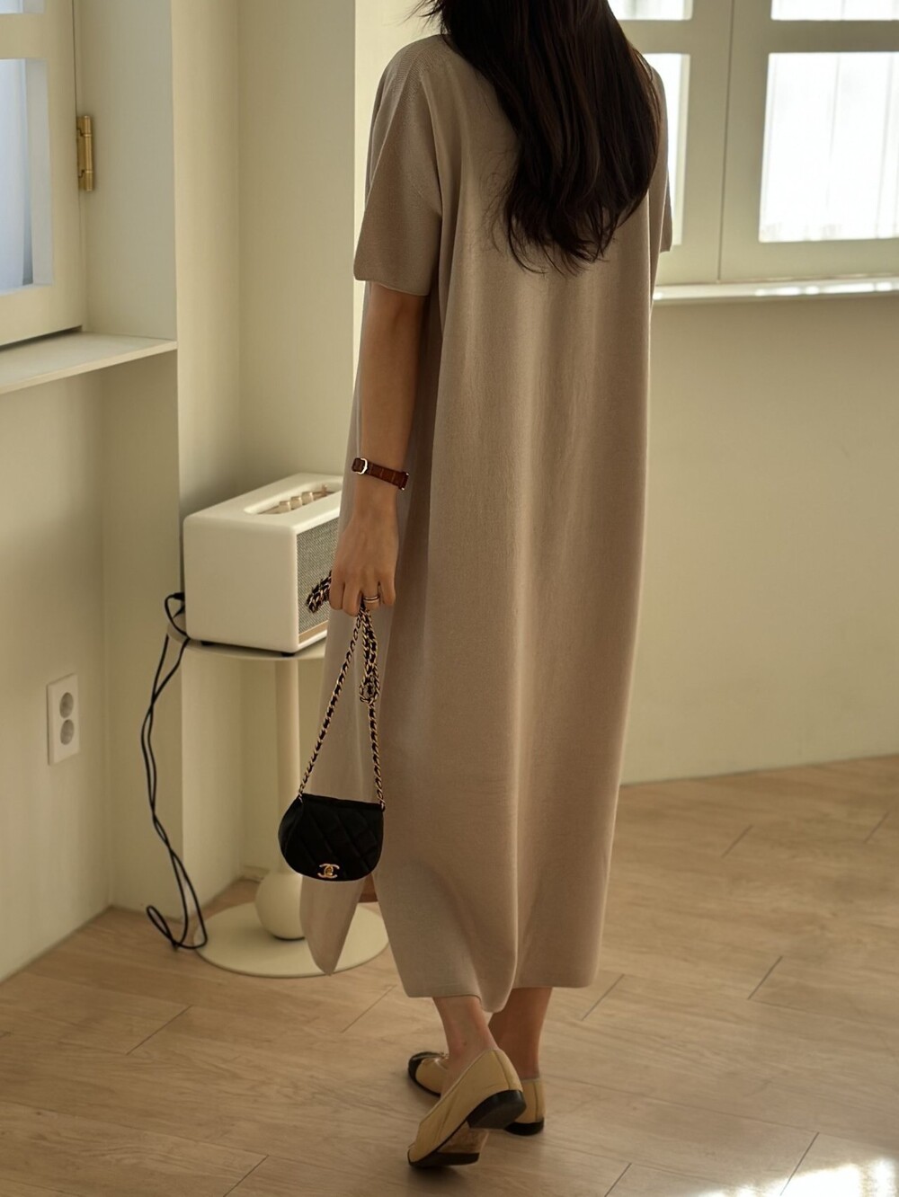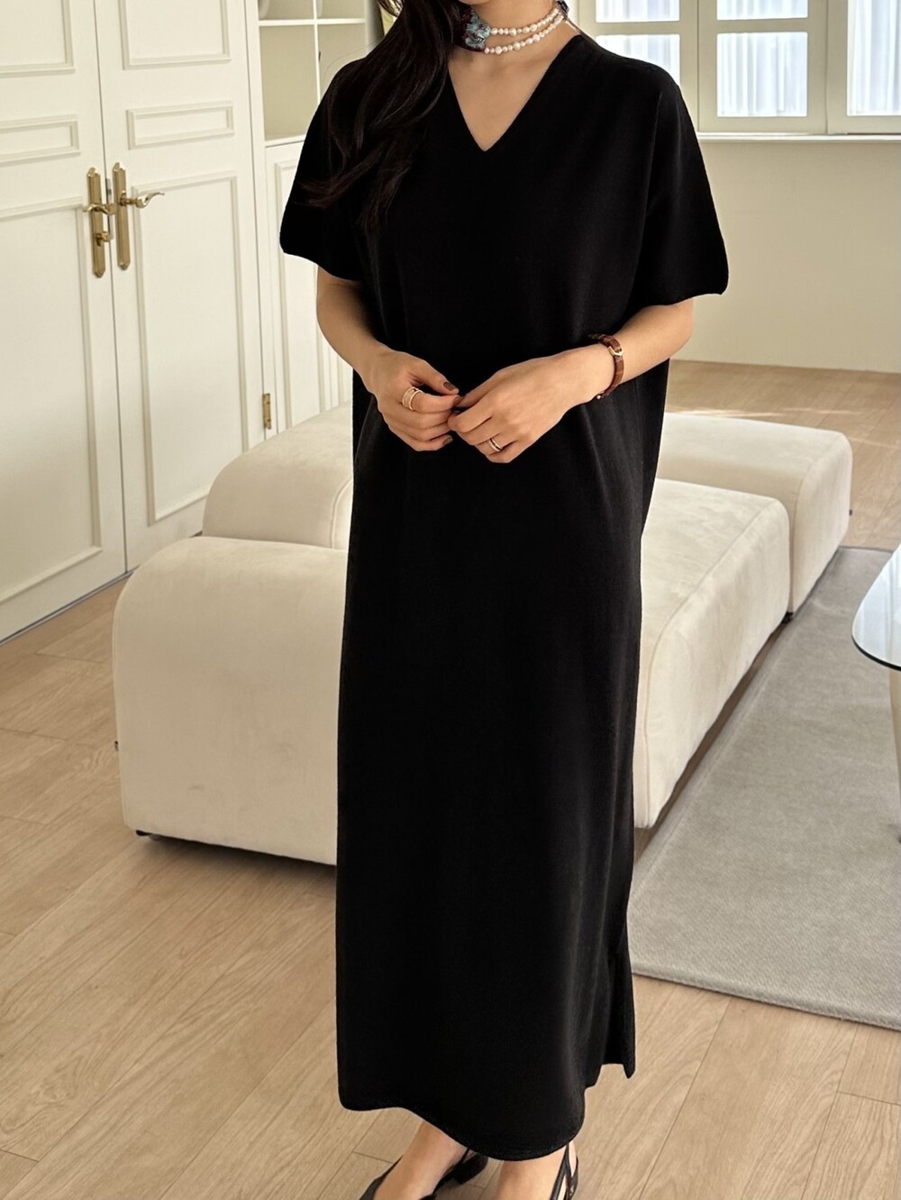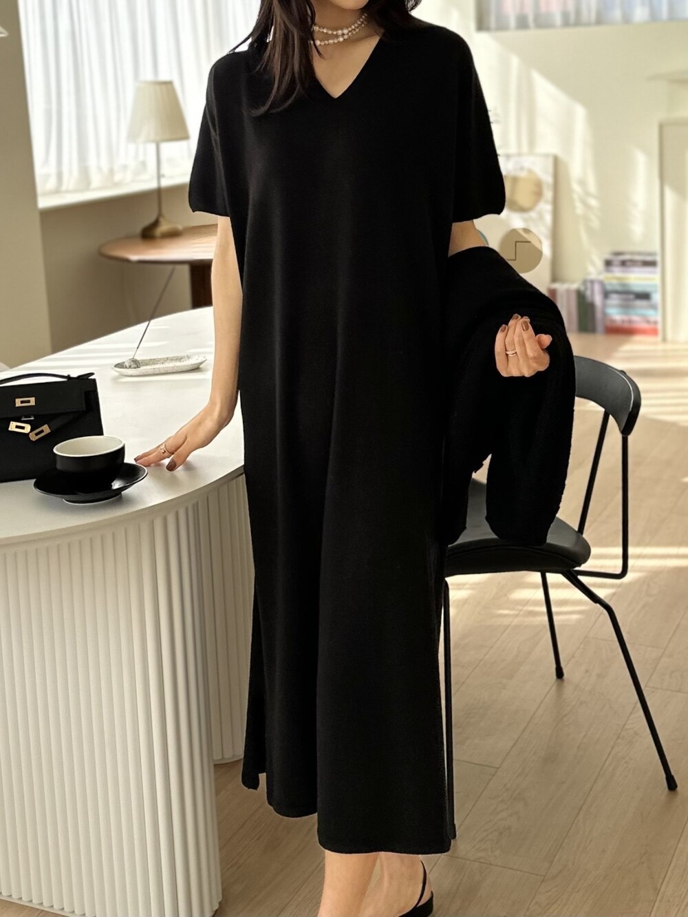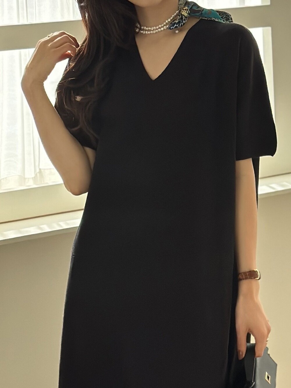 버밍엄 브이넥 홀가먼트 니트 드레스