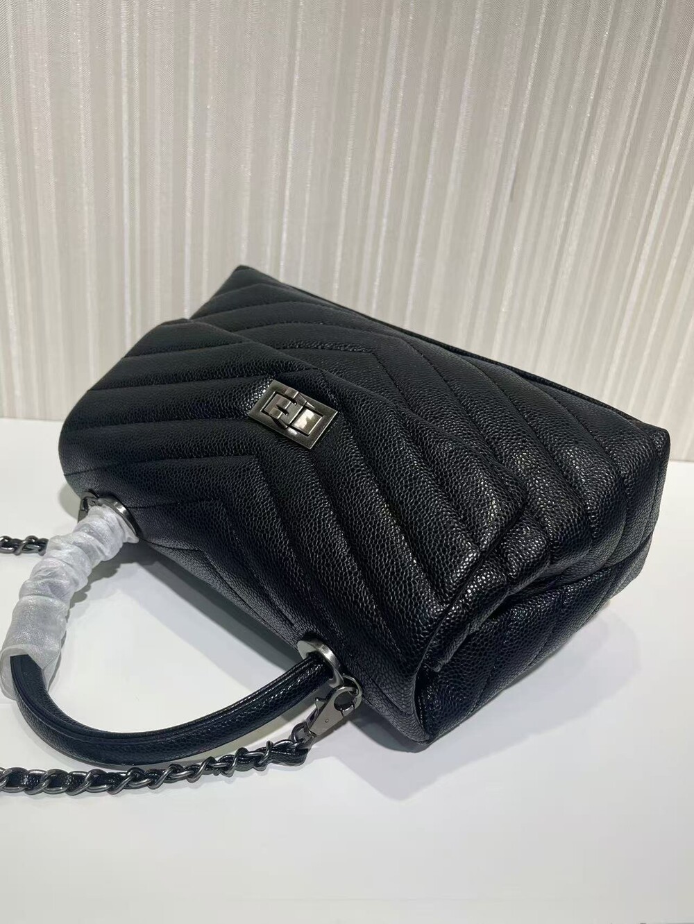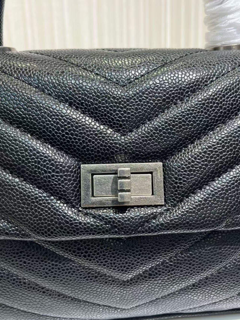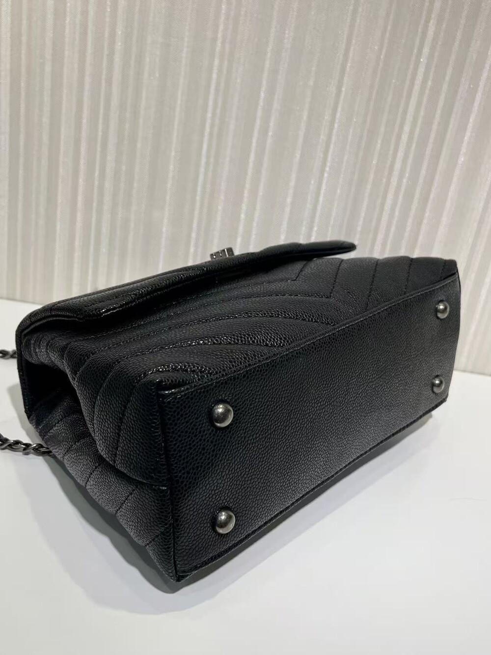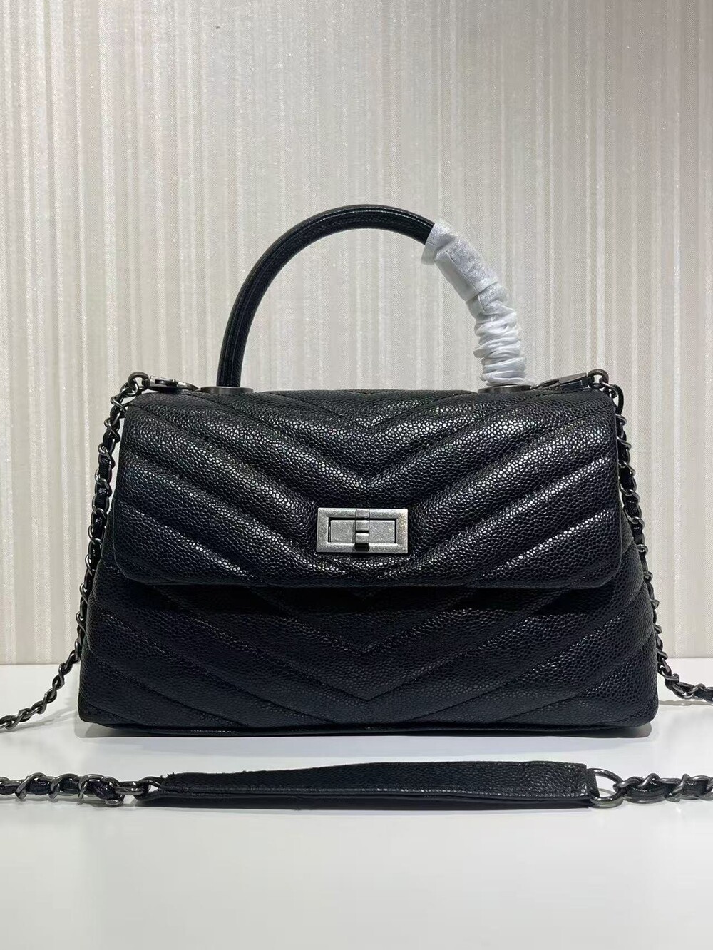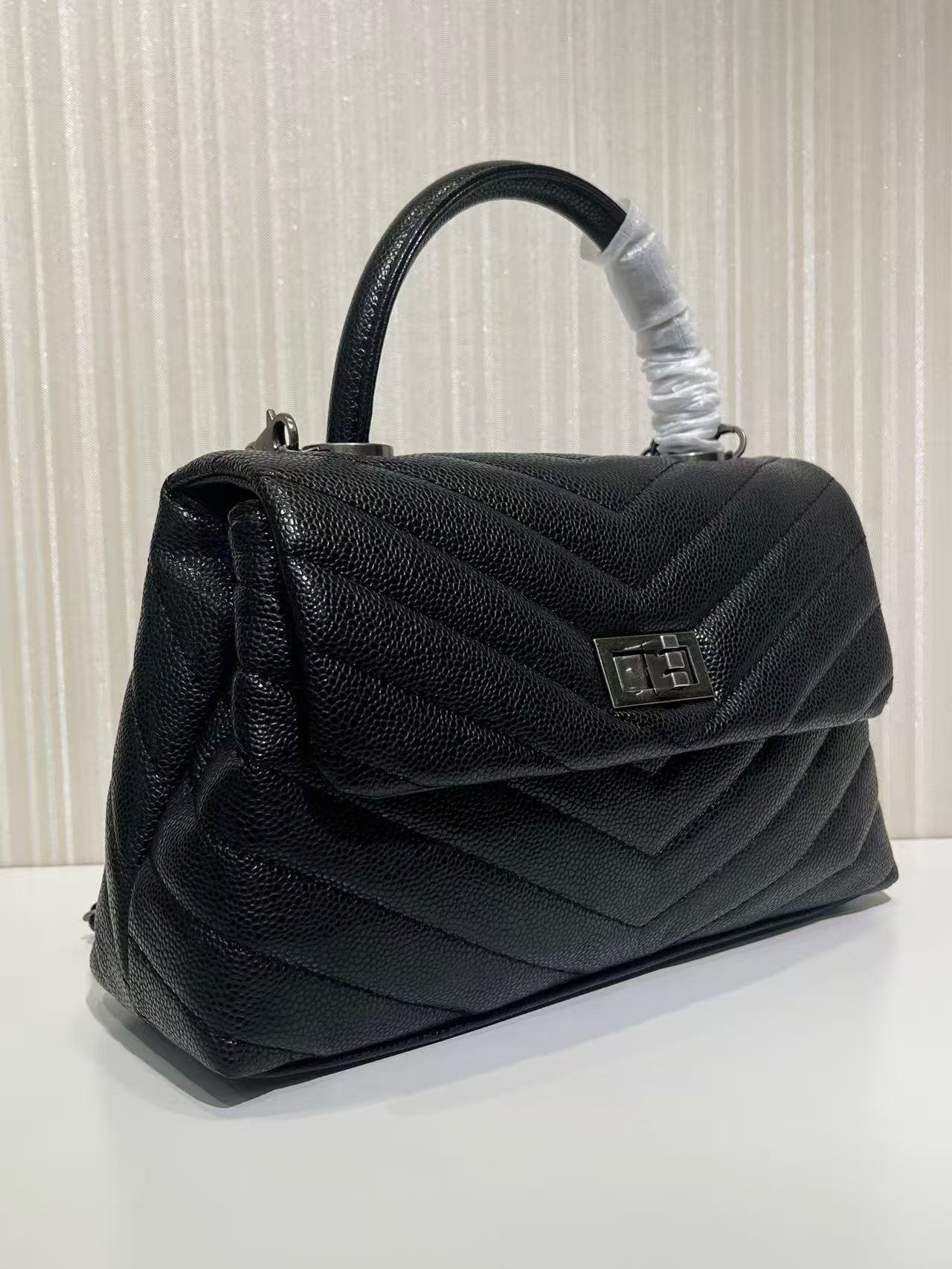 세련된 캐비어 핸들 토트백이에요.