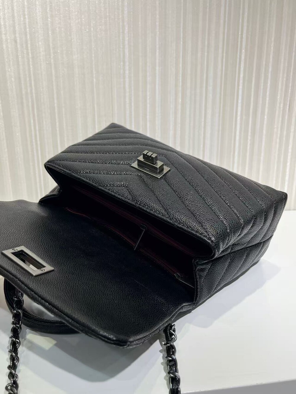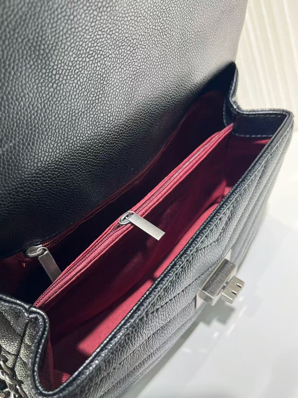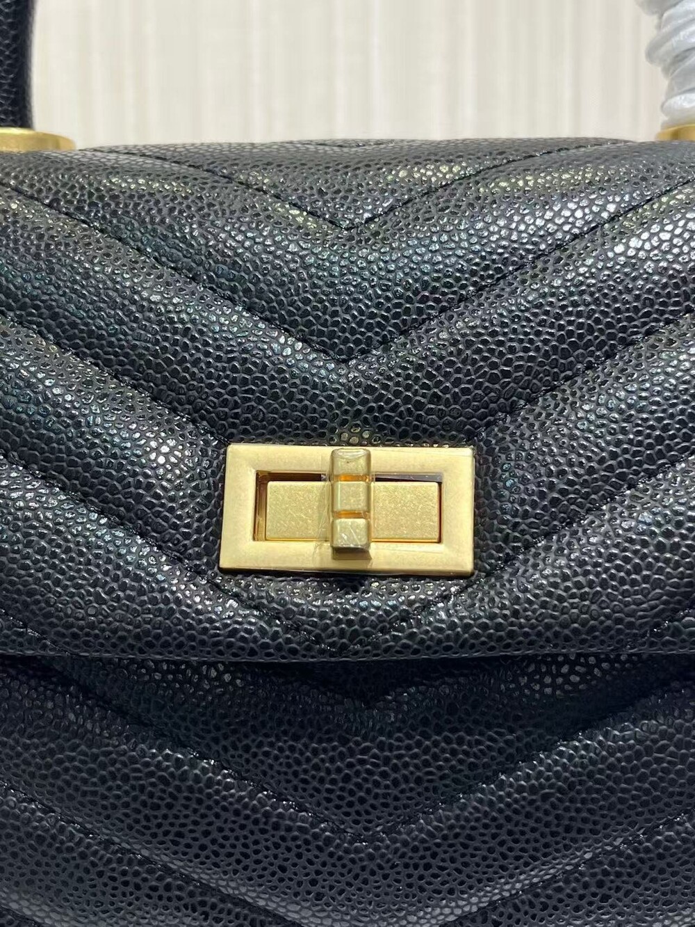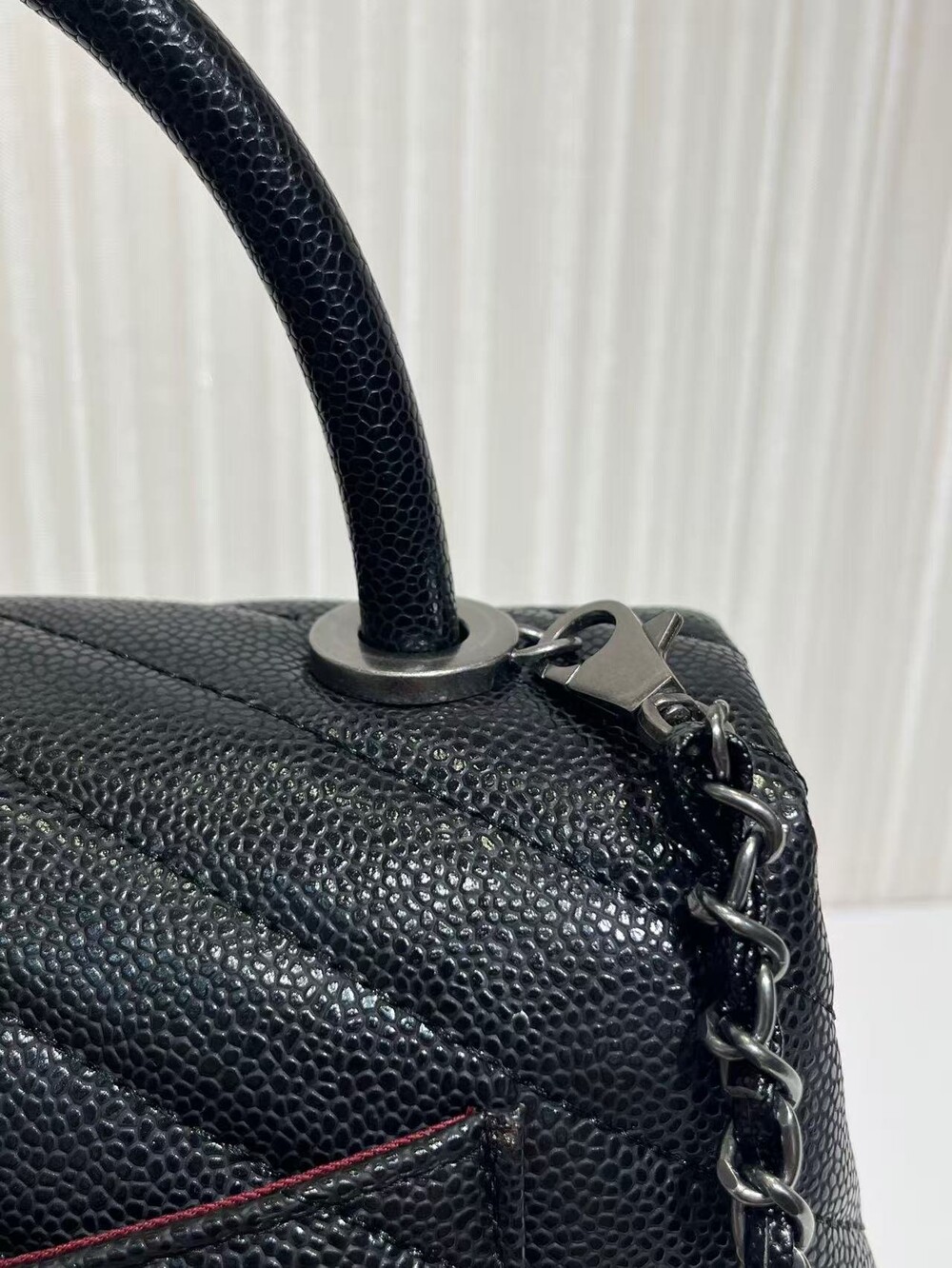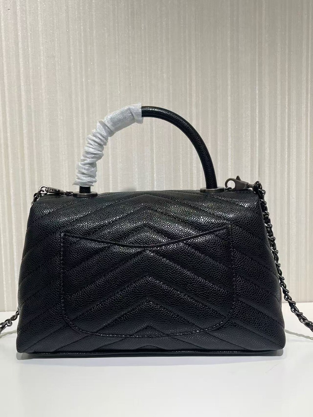 세련된 캐비어 핸들 토트백이에요.