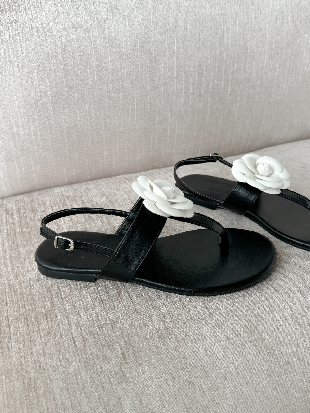 화이트 컬러의 빅 플라워 포인트 디자인의 썸머 샌들
